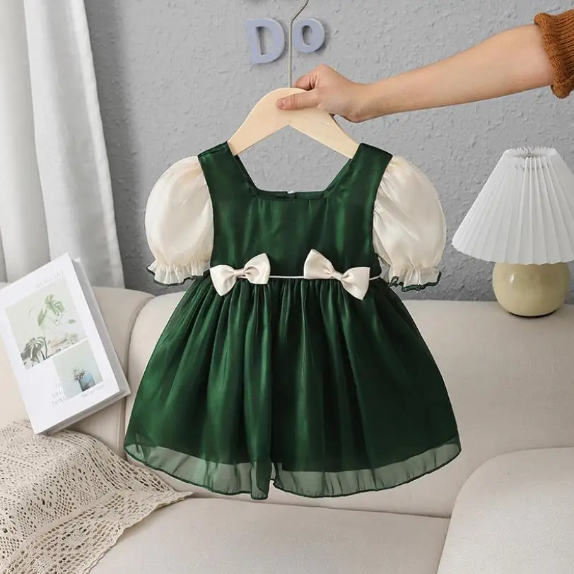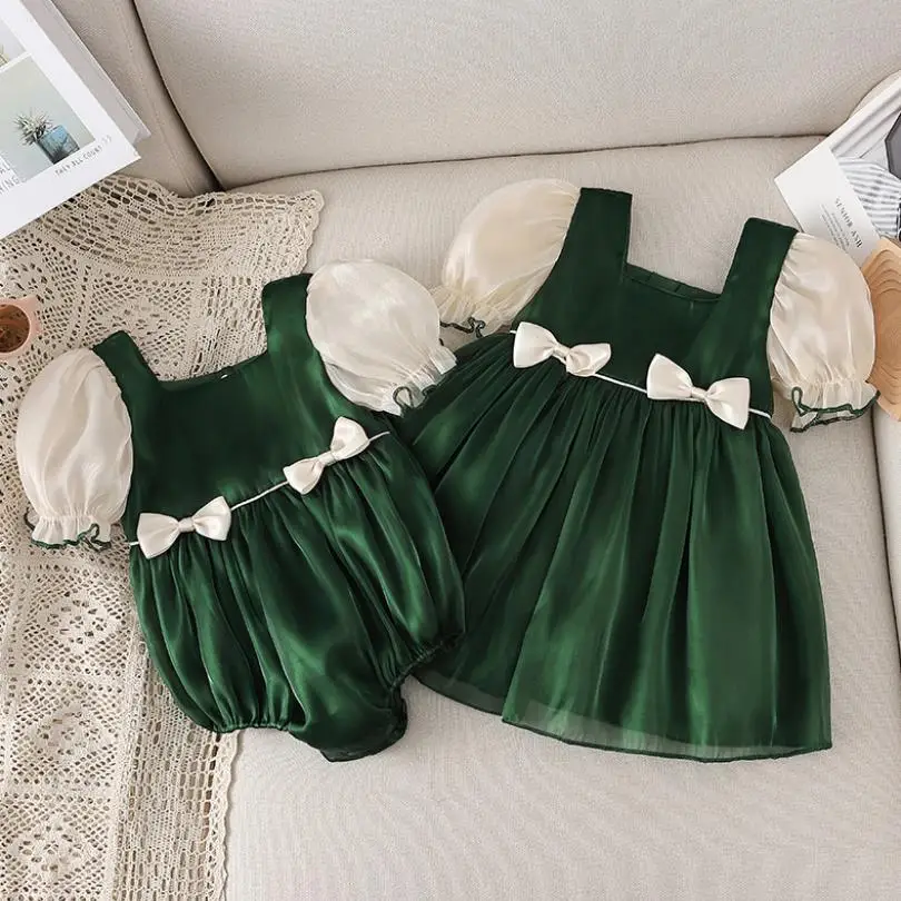 Bow Design and Puff Sleeves Siblings Matching Outfit