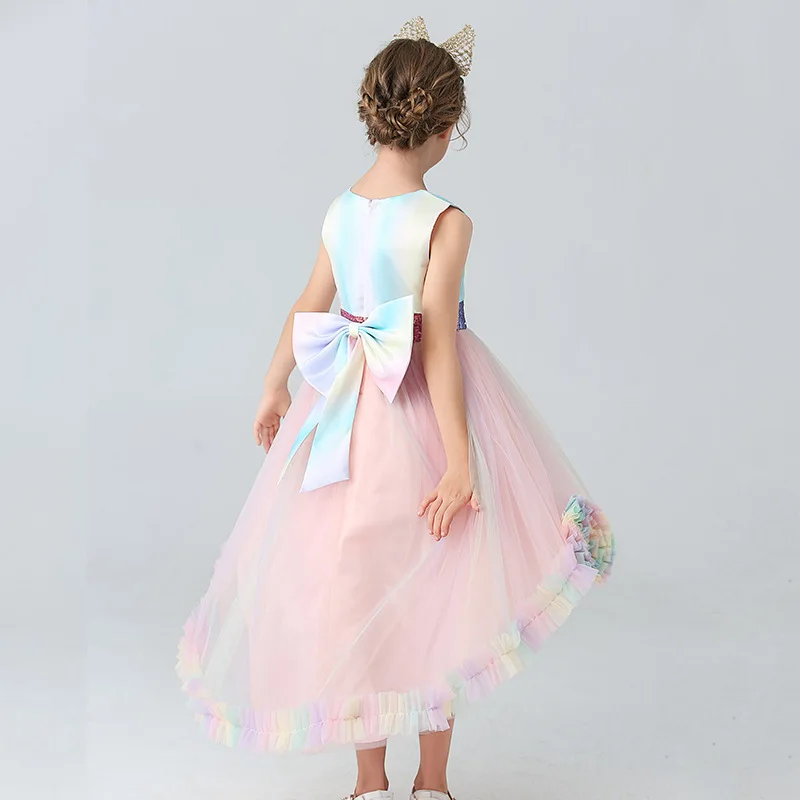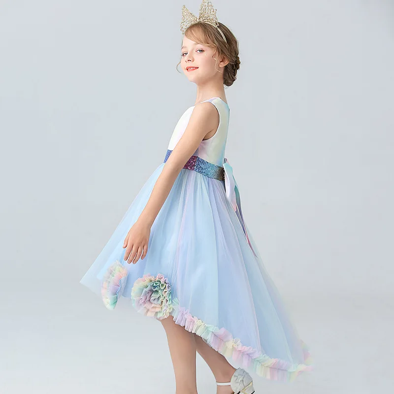 Candy Color Ruffles Long Back Girls Fashion Party Dress