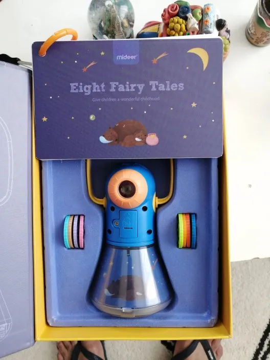 Are you looking for a fun and brain-stimulating toy for your baby? Let’s try our Kids Storybook Torch. This wonderful educational game combines a fairy tale projector, a portable flashlight, and a beautiful storybook, plus a night lamp. Turn off the lights in the bedroom, turn on the projector and you will immerse your child in the fairytale. This game stimulates the child's language expression. Made with safe materials.