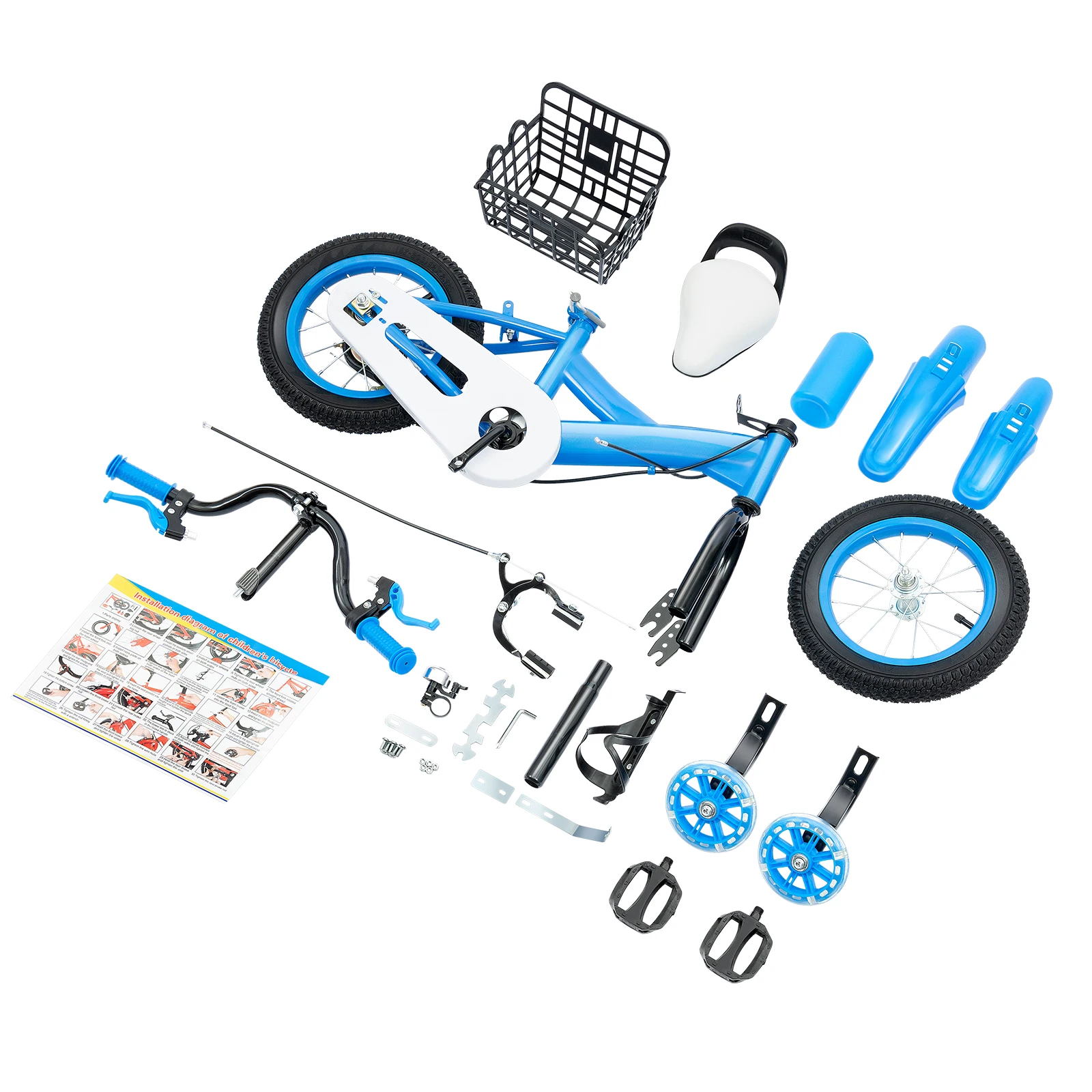 12 Inch Bicycle Boys Girls Kids Bike Unisex Applicable Height 85-105cm for 2-4 Years Old with Safety Training Wheel and A Basket