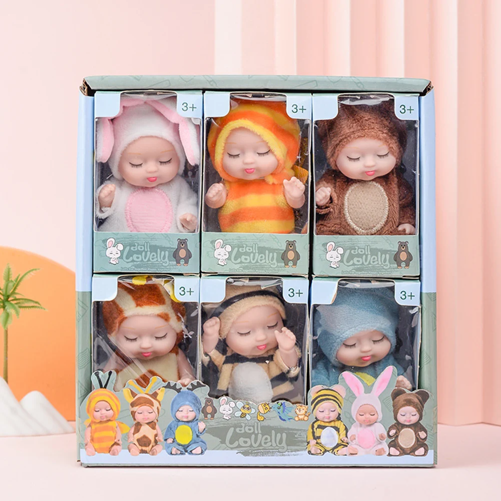 Mini Reborn Baby Doll Set (6 Pcs), 11 cm Lifelike Realistic Sleeping Baby Dolls in Cute Animal Outfits, Movable Joints, Perfect Gift for Kids Ages 3+