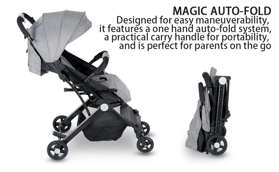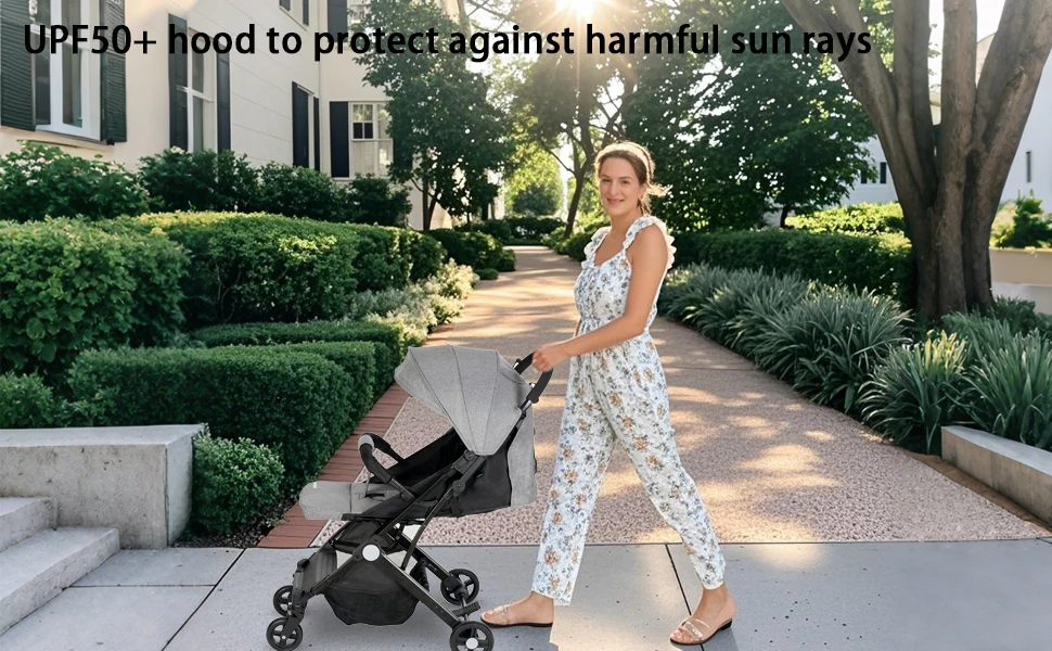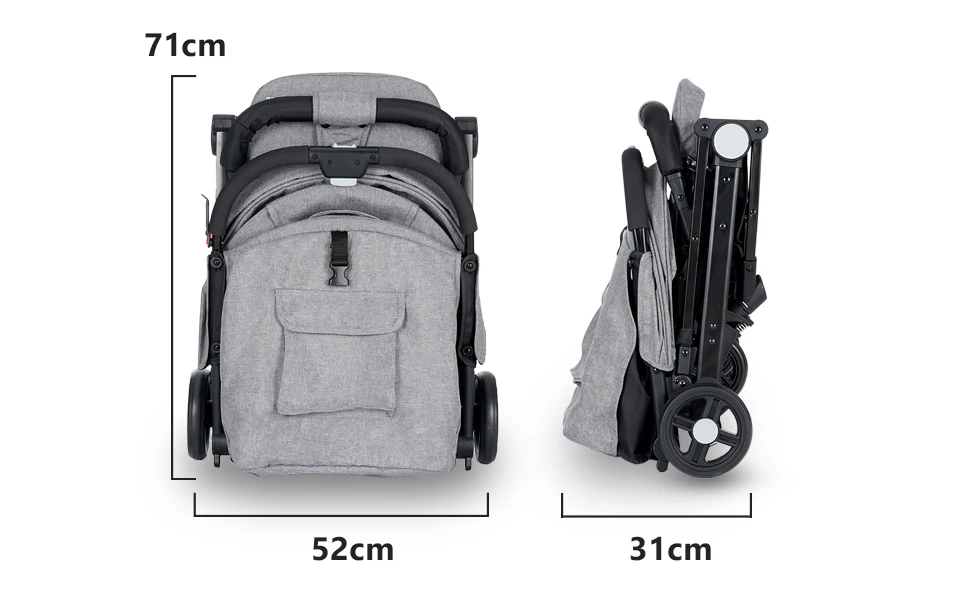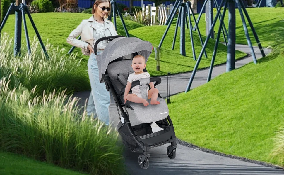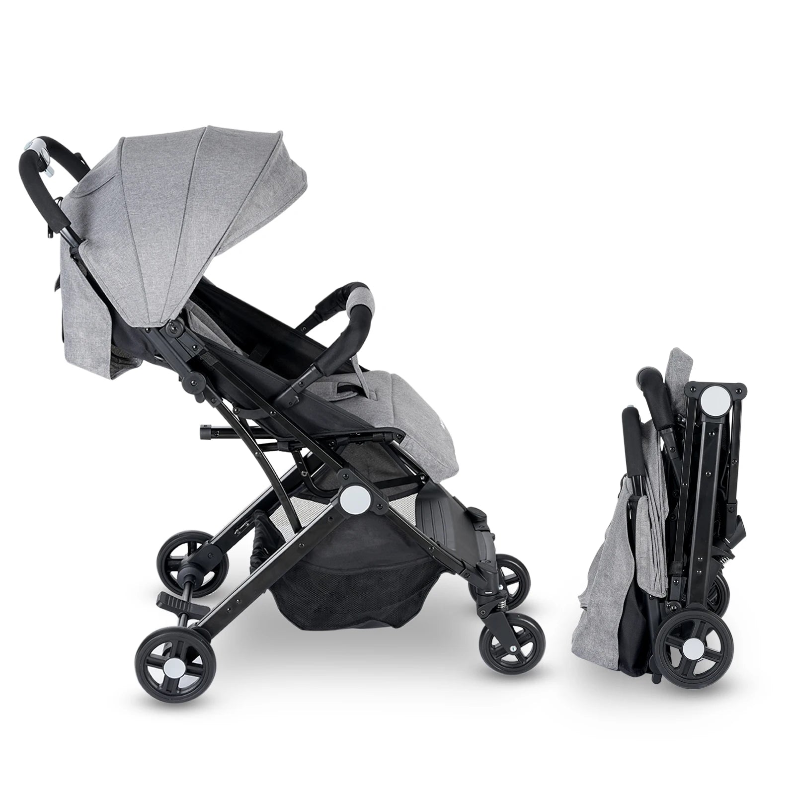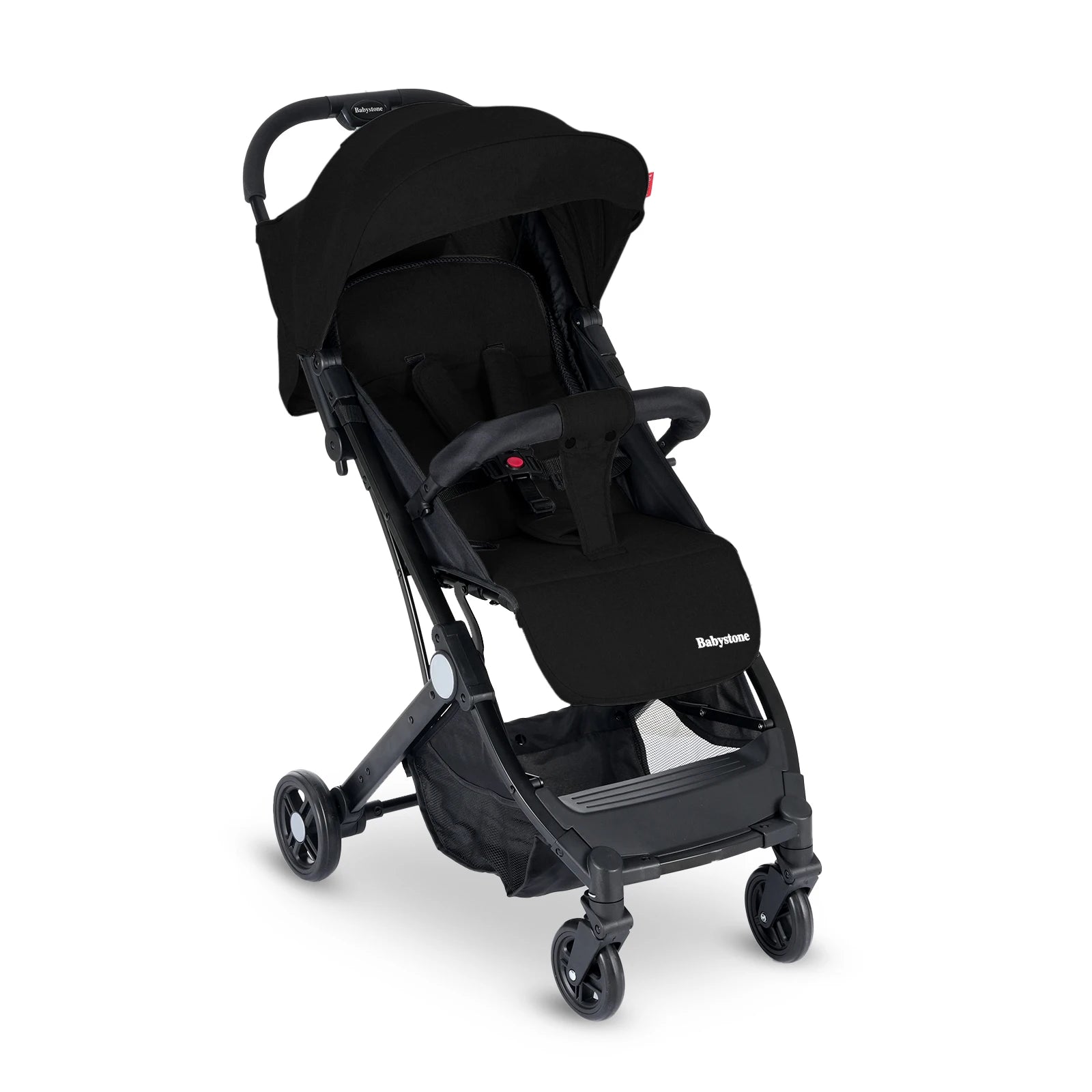 Lightweight Travel Pram and Compact Baby Stroller, One-Hand Foldable Buggy with 5-Point Harness, Designed for Airplane Cabin Suitability (Black)