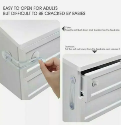 Ensure your home is safe and secure for your curious toddler! These flexible safety strap locks are the perfect solution for child-proofing cabinets, drawers, refrigerators, and toilets. They are specifically designed for adult convenience while remaining extremely difficult for babies to bypass.