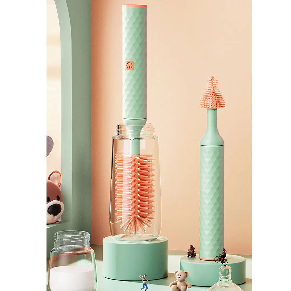 Complete 3-Piece Set: The set includes a main electric handle and multiple silicone brush heads (likely a Bottle Brush, Teat/Nipple Brush, and possibly a straw cleaner or smaller detail brush) to ensure thorough cleaning of bottle bodies, nipples, and hard-to-reach corners.