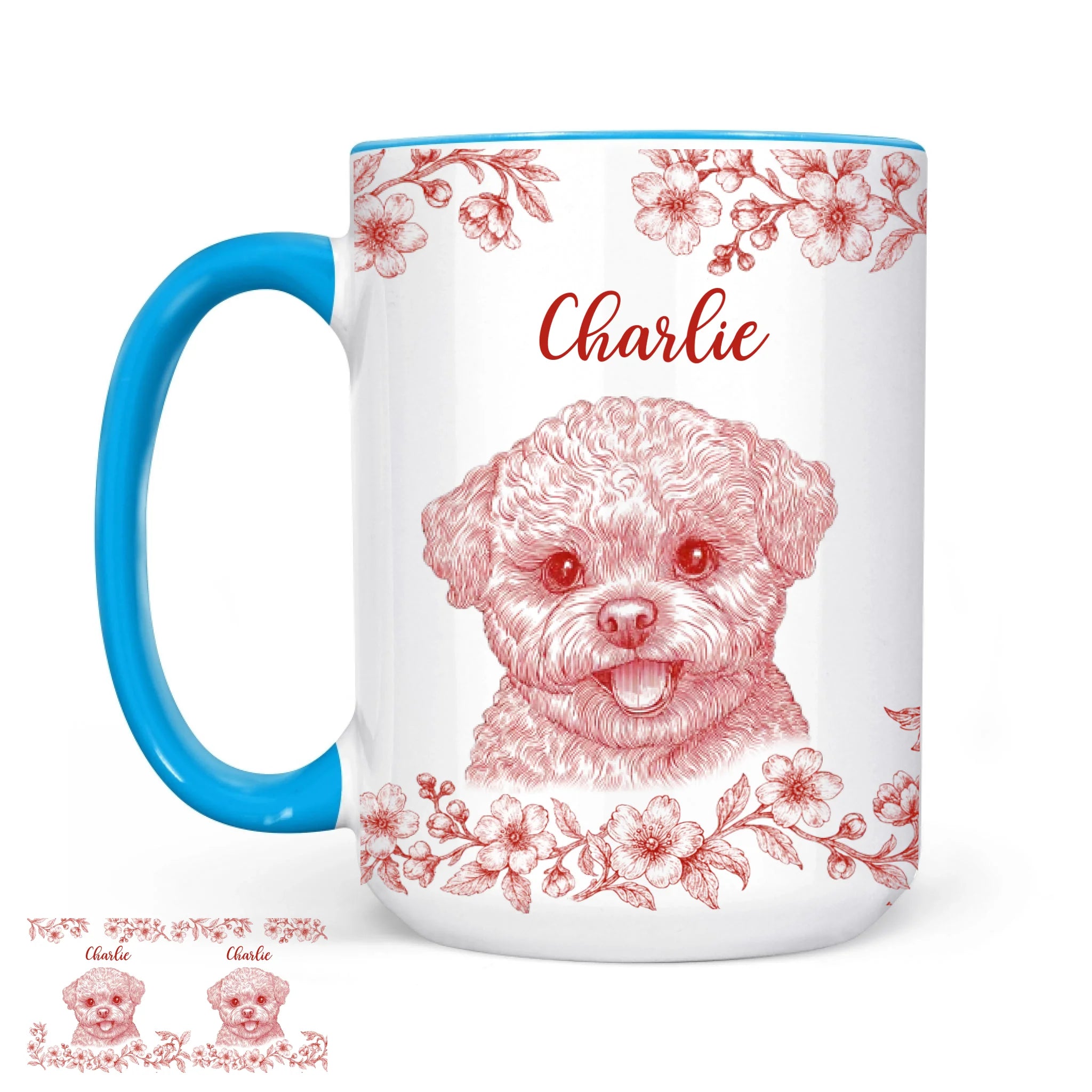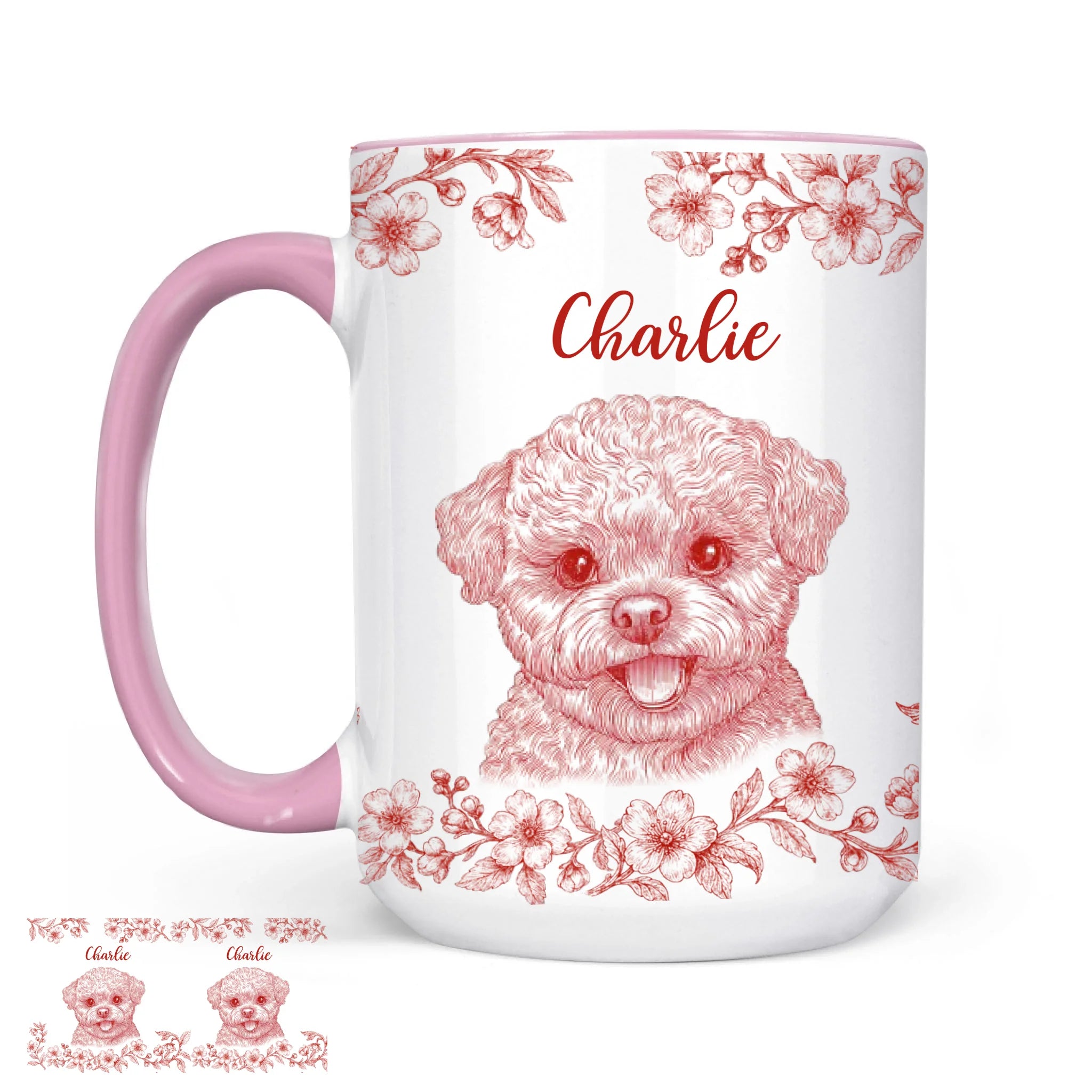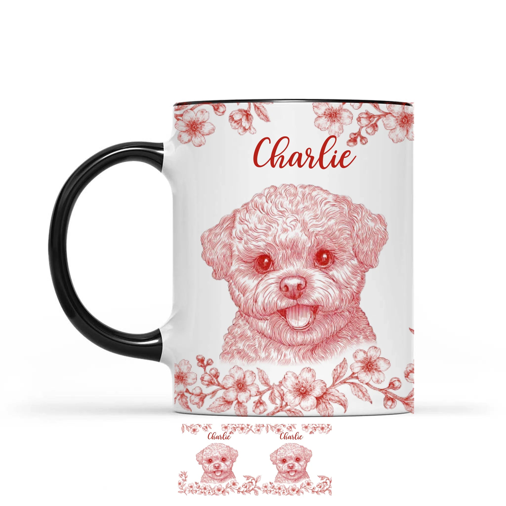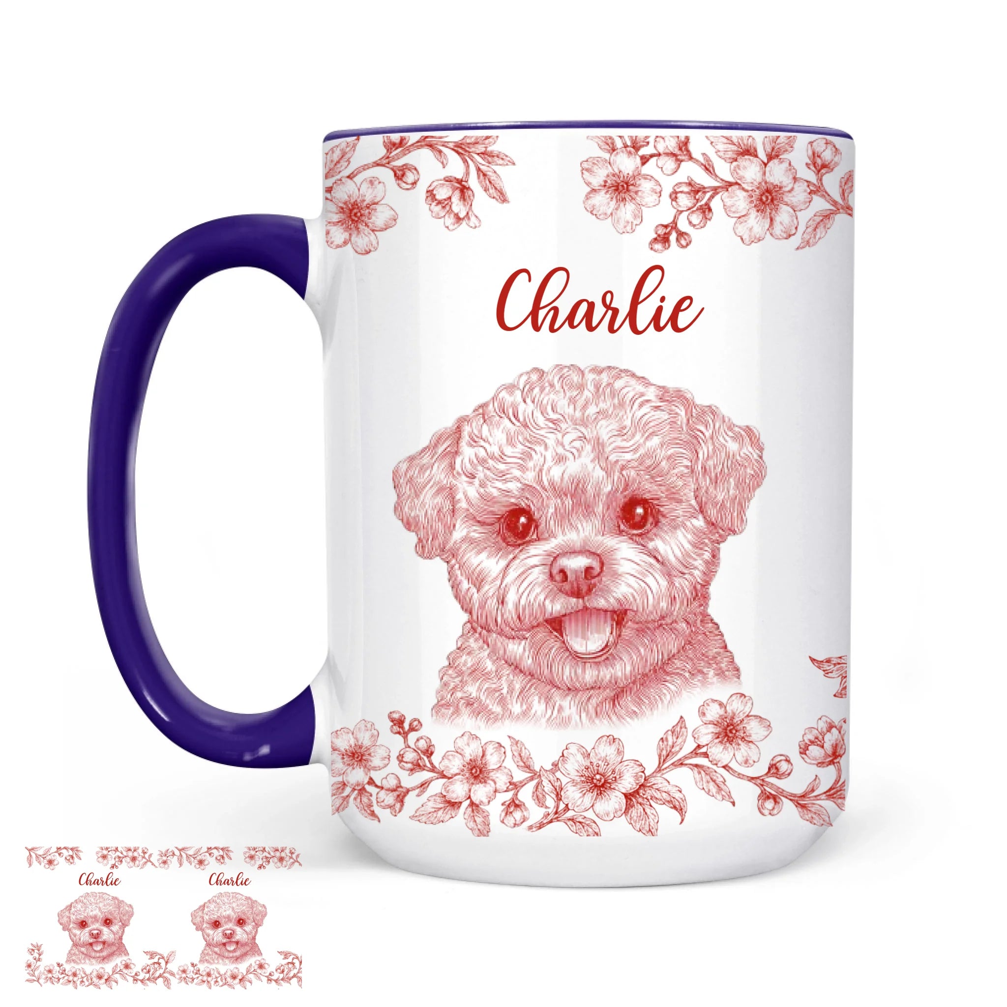 Personalized “Toile De Jouy Pet Portrait Mug” – Custom Pet Name & Photo Ceramic Mug | Accent Edge-to-Edge Two-Tone Mug | Full-Wrap Artwork, Microwave & Dishwasher Safe | Perfect Gift for Pet Lovers