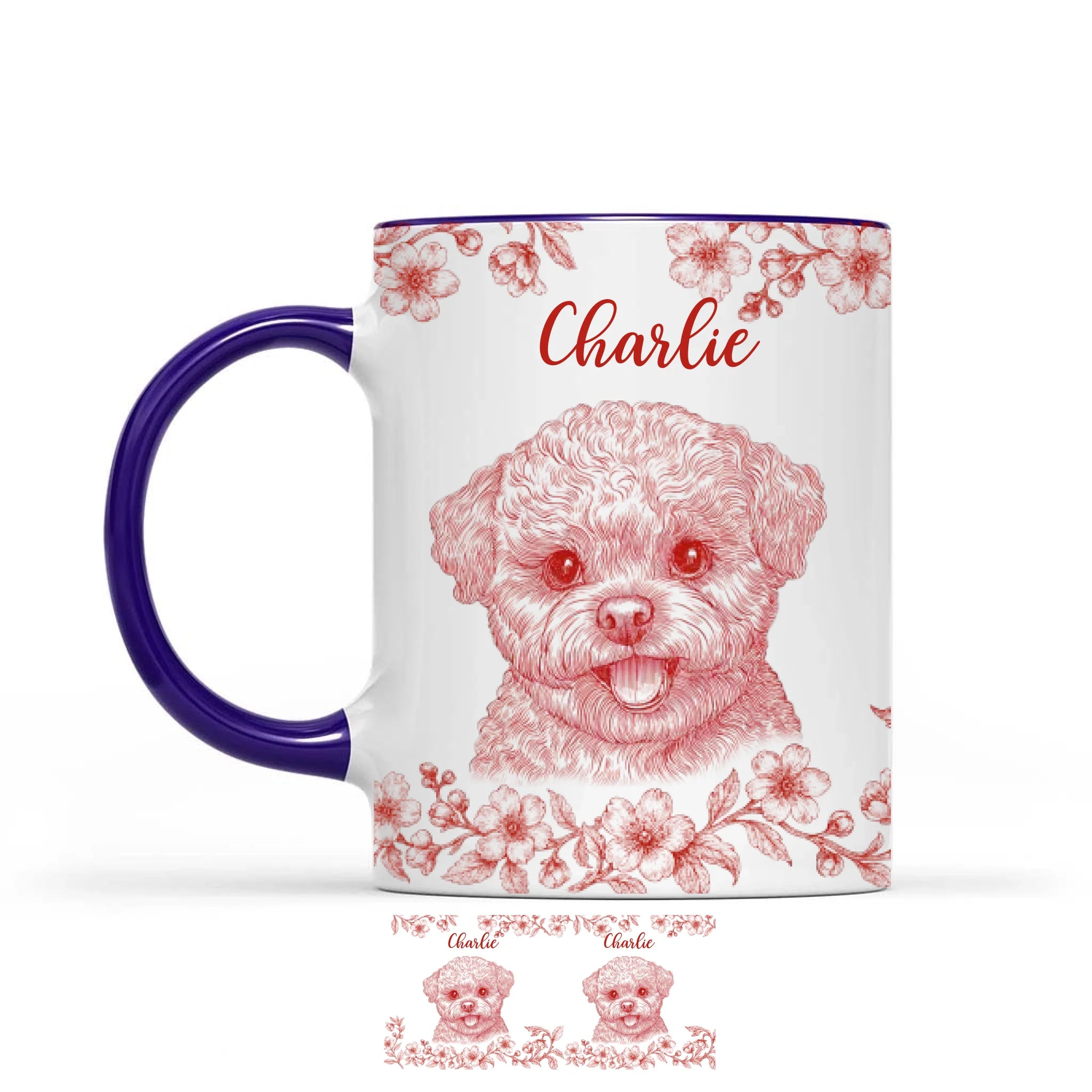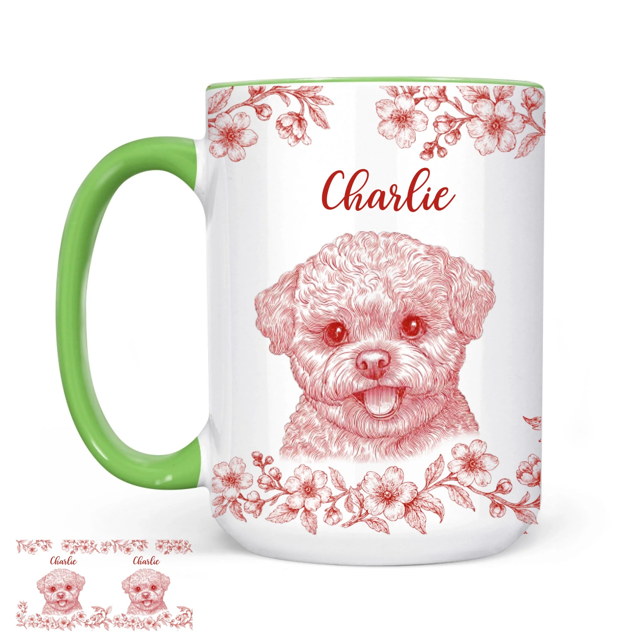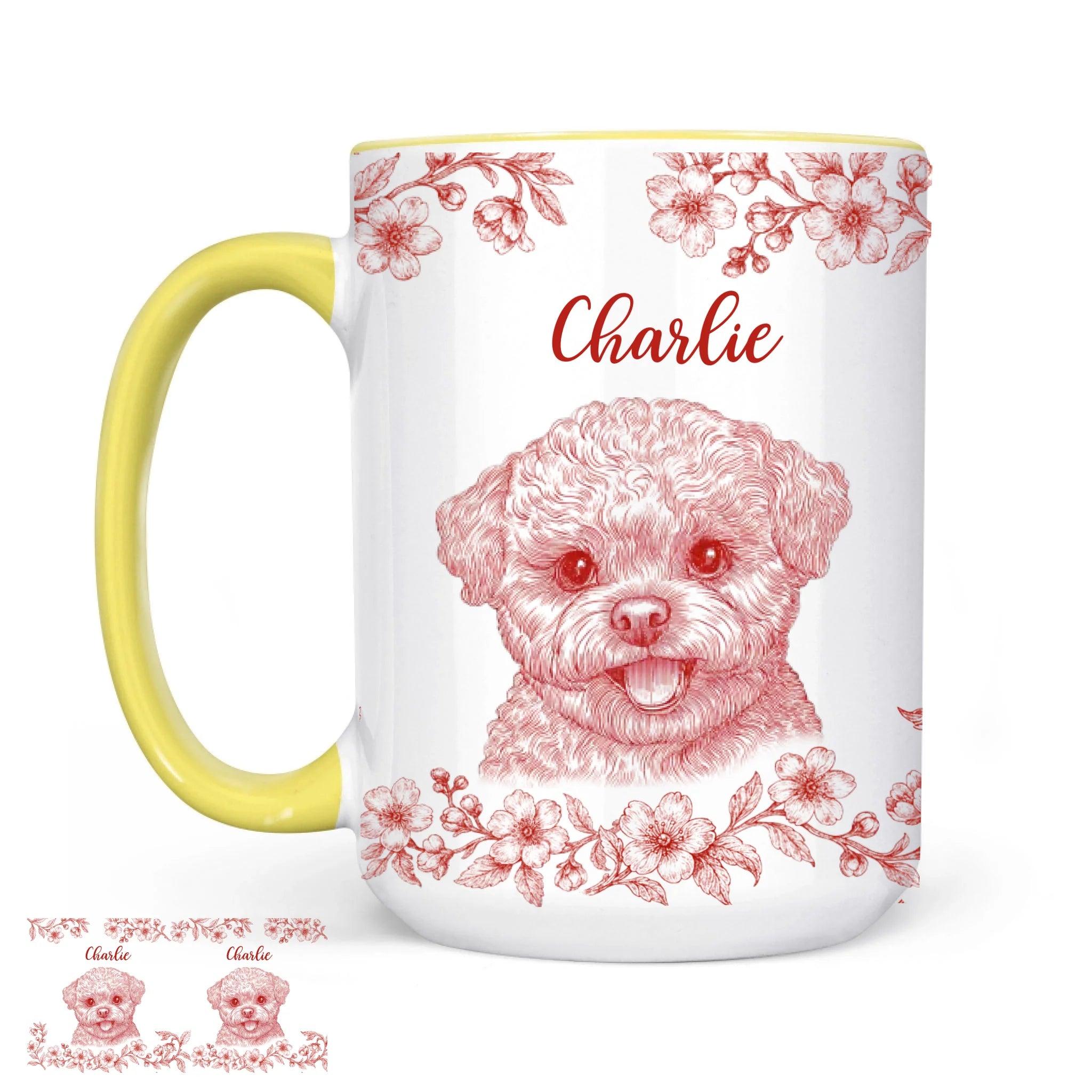Personalized “Toile De Jouy Pet Portrait Mug” – Custom Pet Name & Photo Ceramic Mug | Accent Edge-to-Edge Two-Tone Mug | Full-Wrap Artwork, Microwave & Dishwasher Safe | Perfect Gift for Pet Lovers