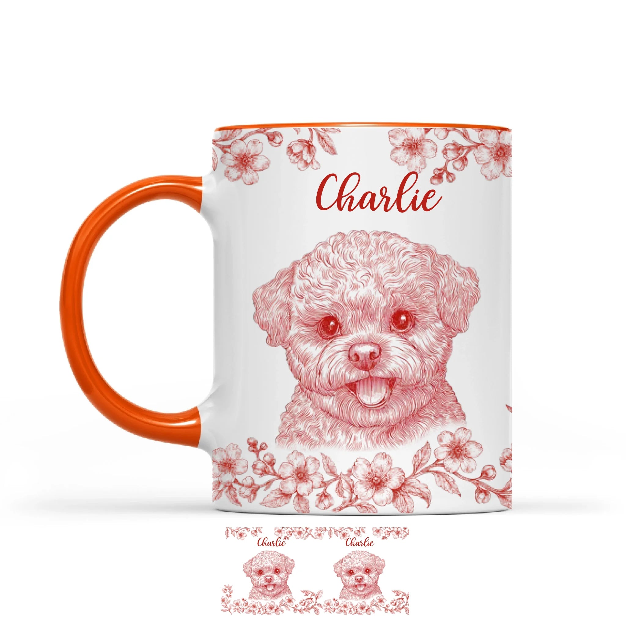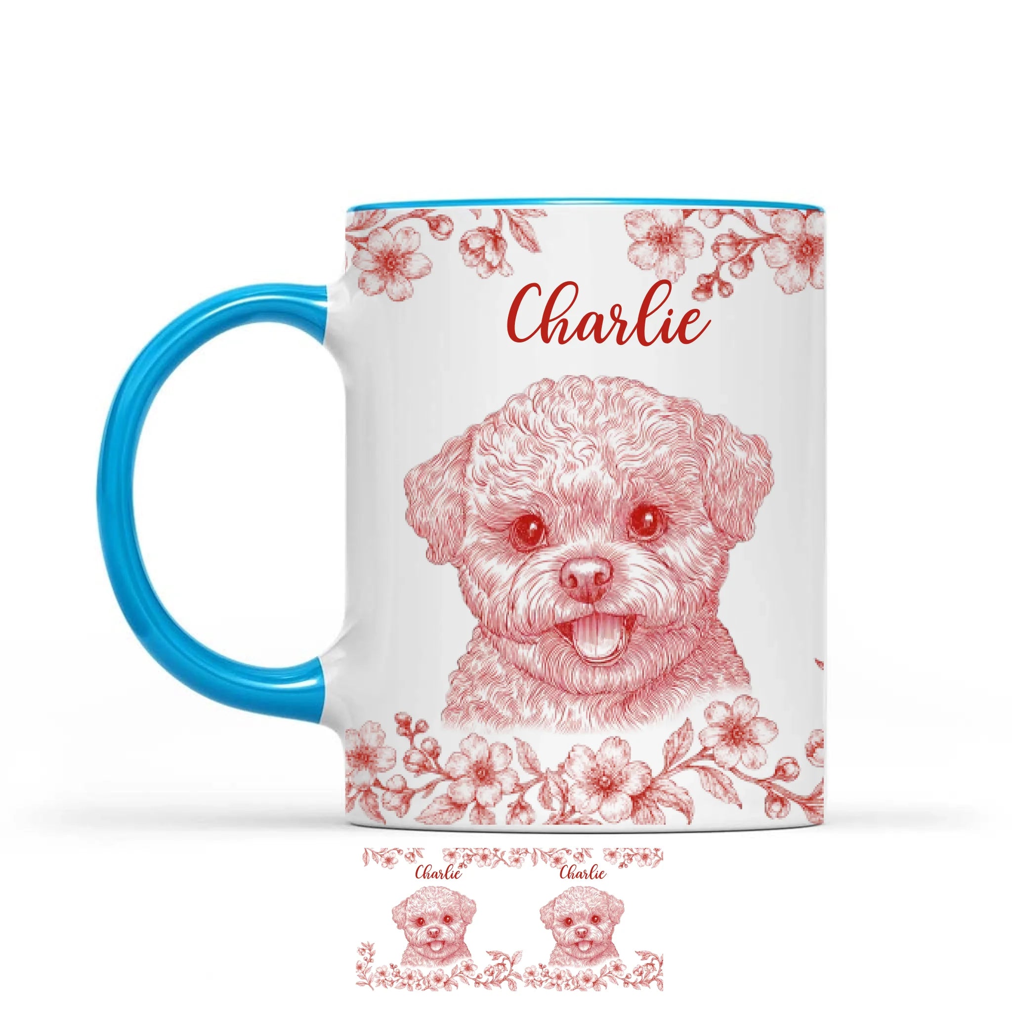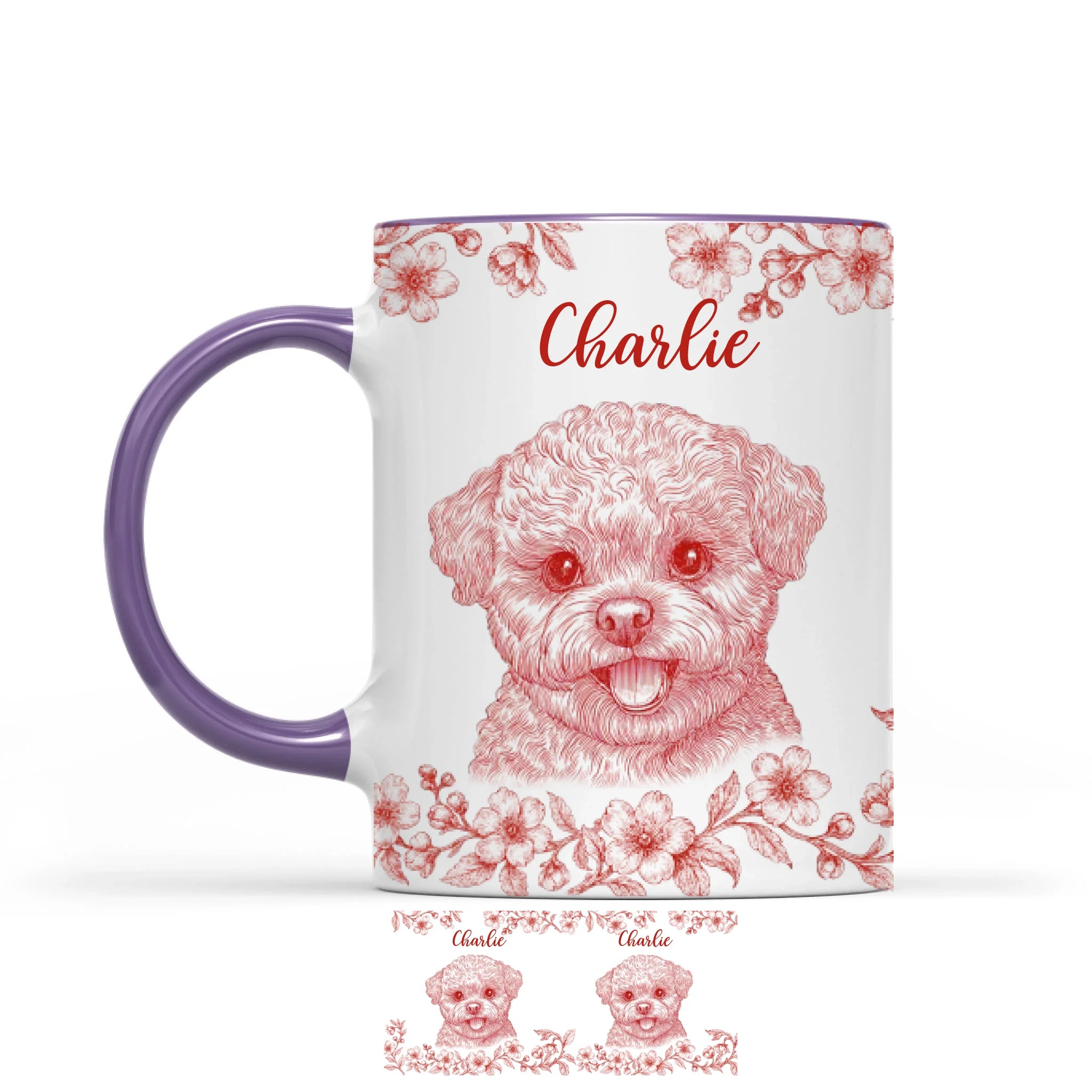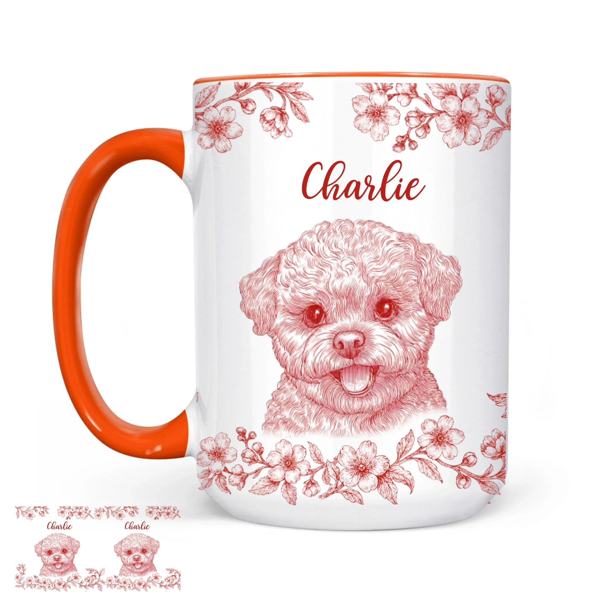 Personalized “Toile De Jouy Pet Portrait Mug” – Custom Pet Name & Photo Ceramic Mug | Accent Edge-to-Edge Two-Tone Mug | Full-Wrap Artwork, Microwave & Dishwasher Safe | Perfect Gift for Pet Lovers
