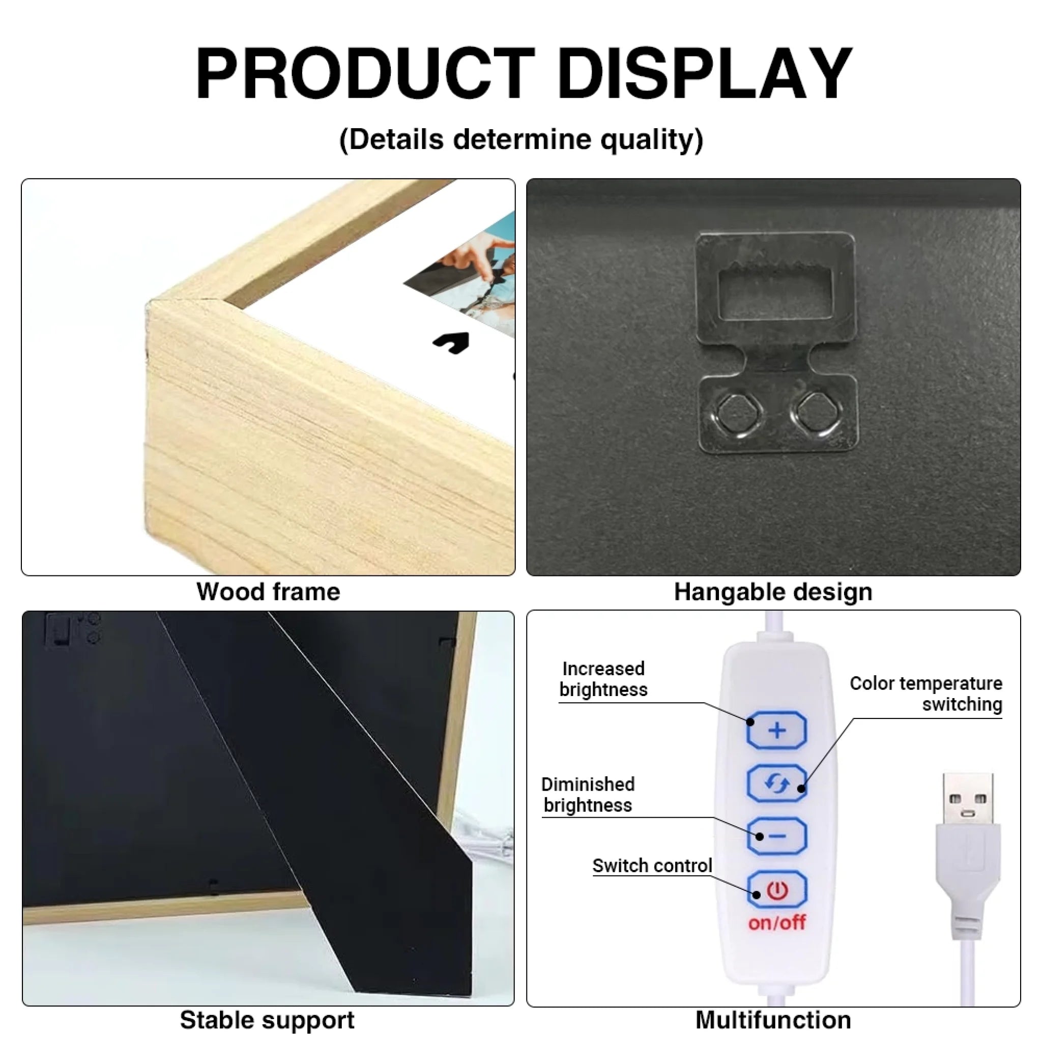 When turned off: it remains a stylish wooden frame showcasing your personalized design.
