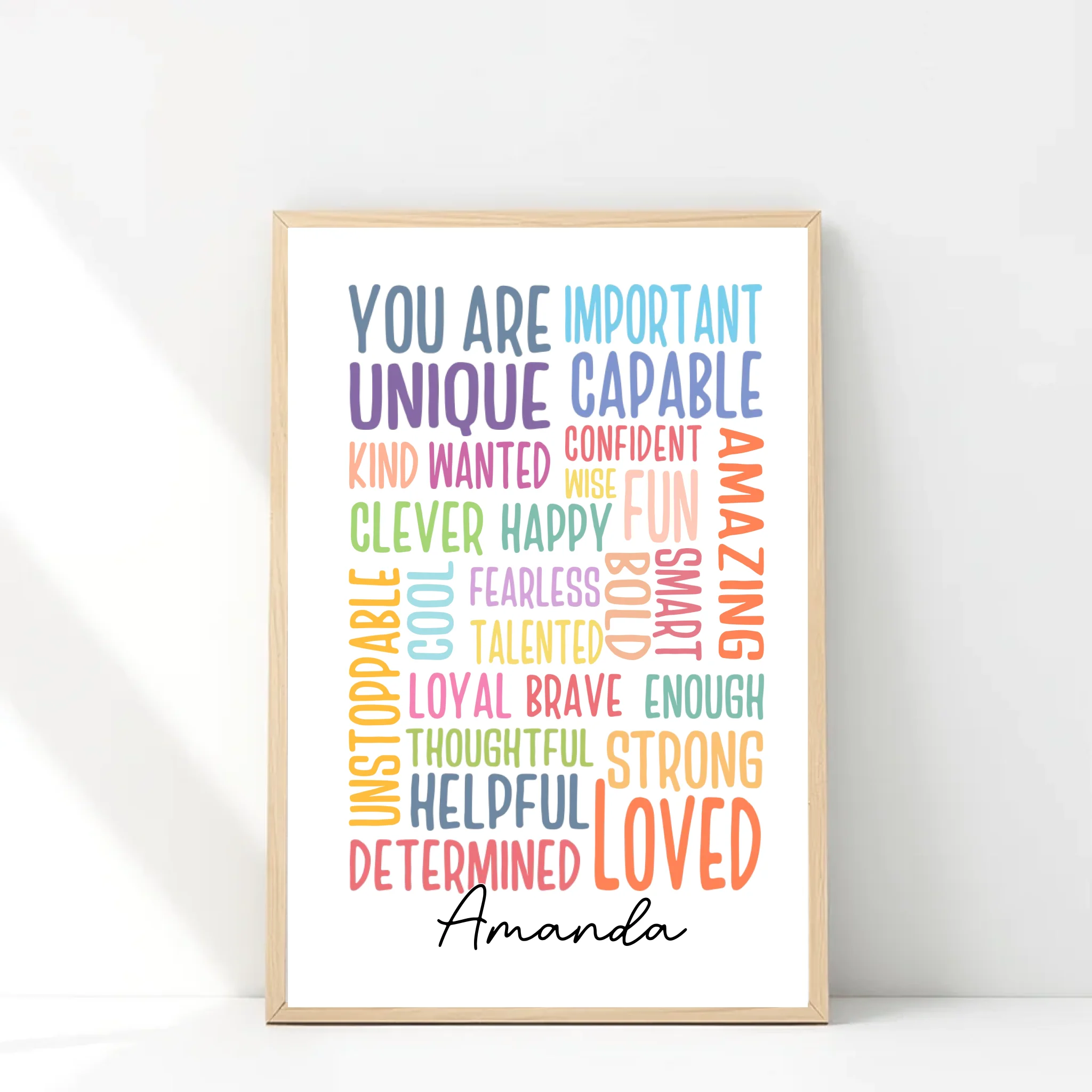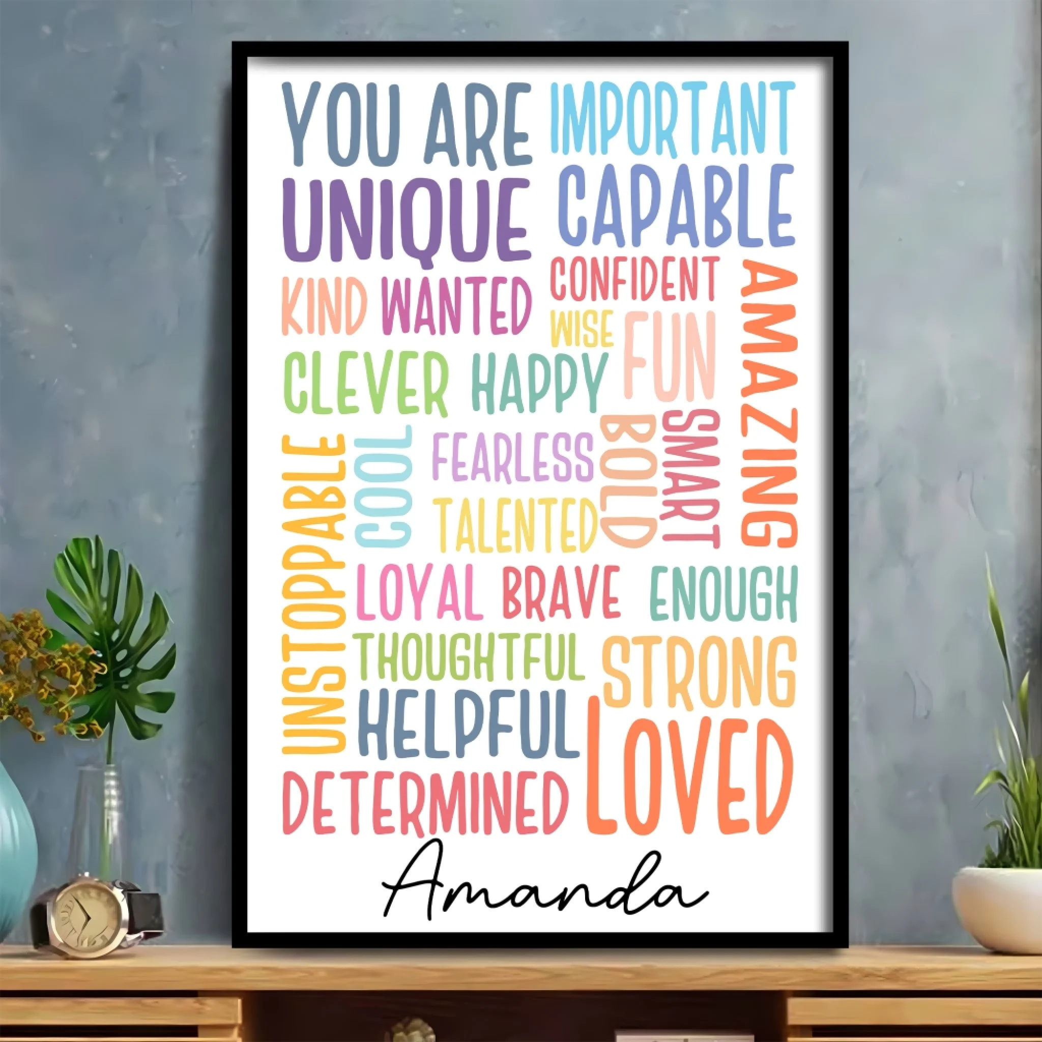 Personalized Motivational Poster – “You Are Important” Wall Art, Custom Name Print, Positive Affirmations Décor, Unframed