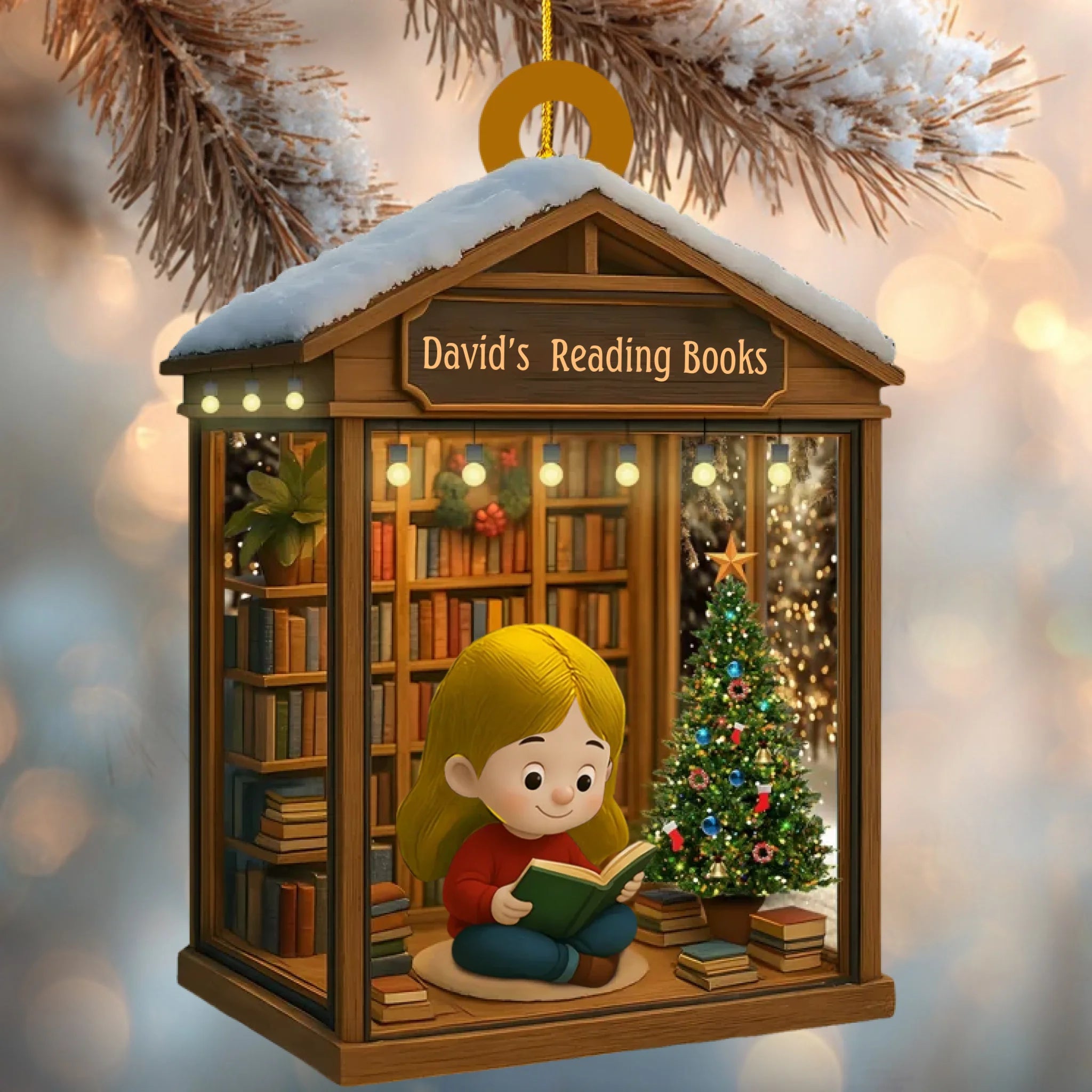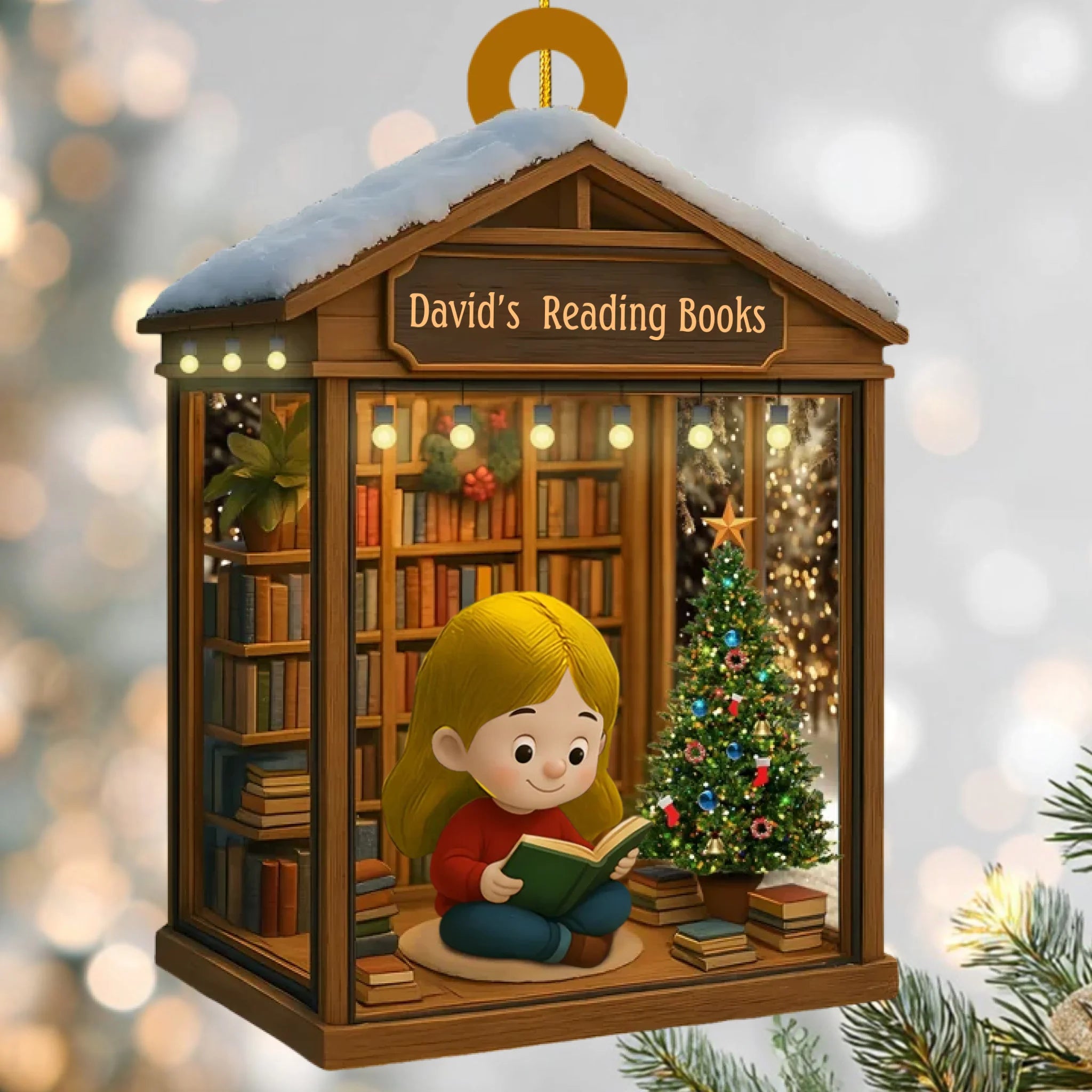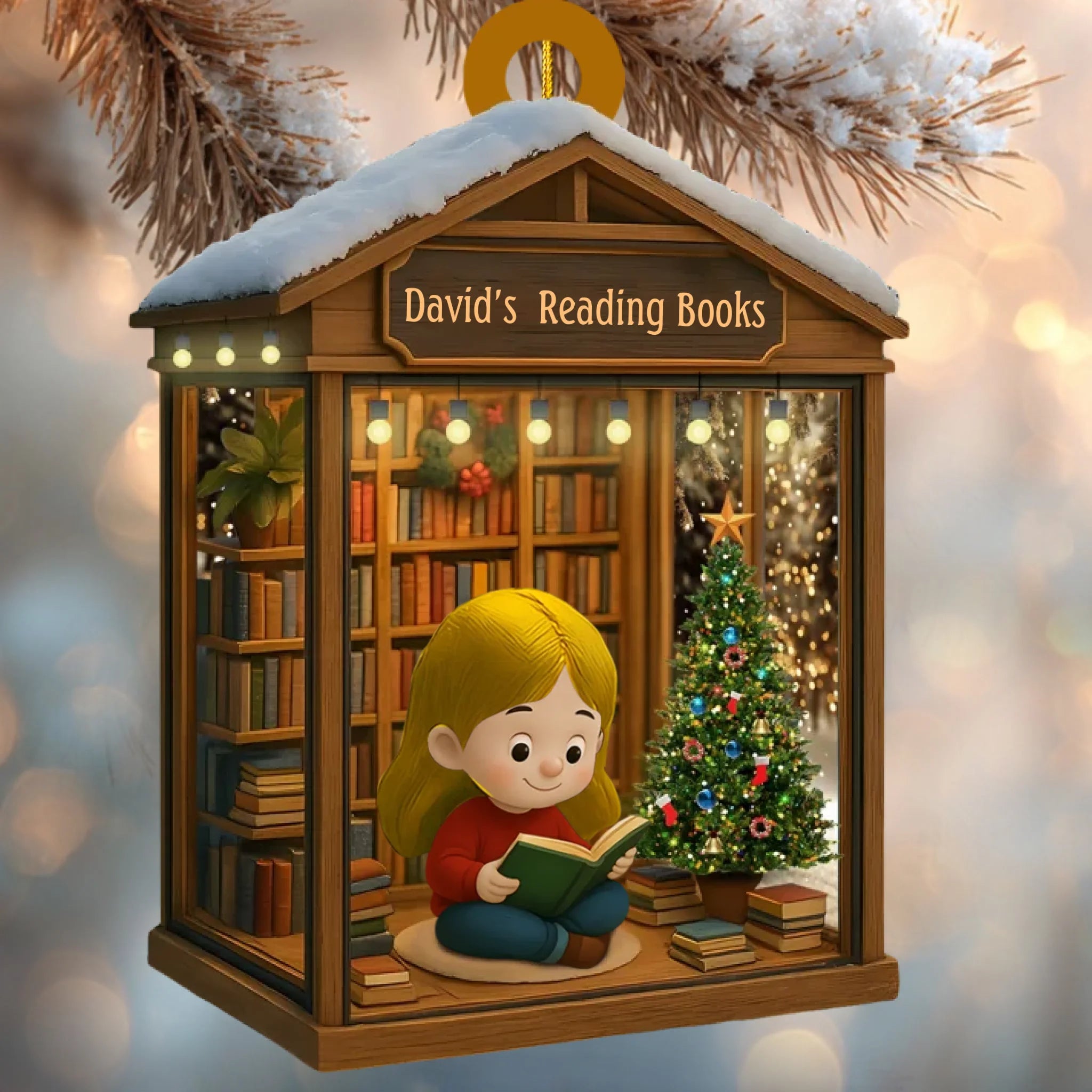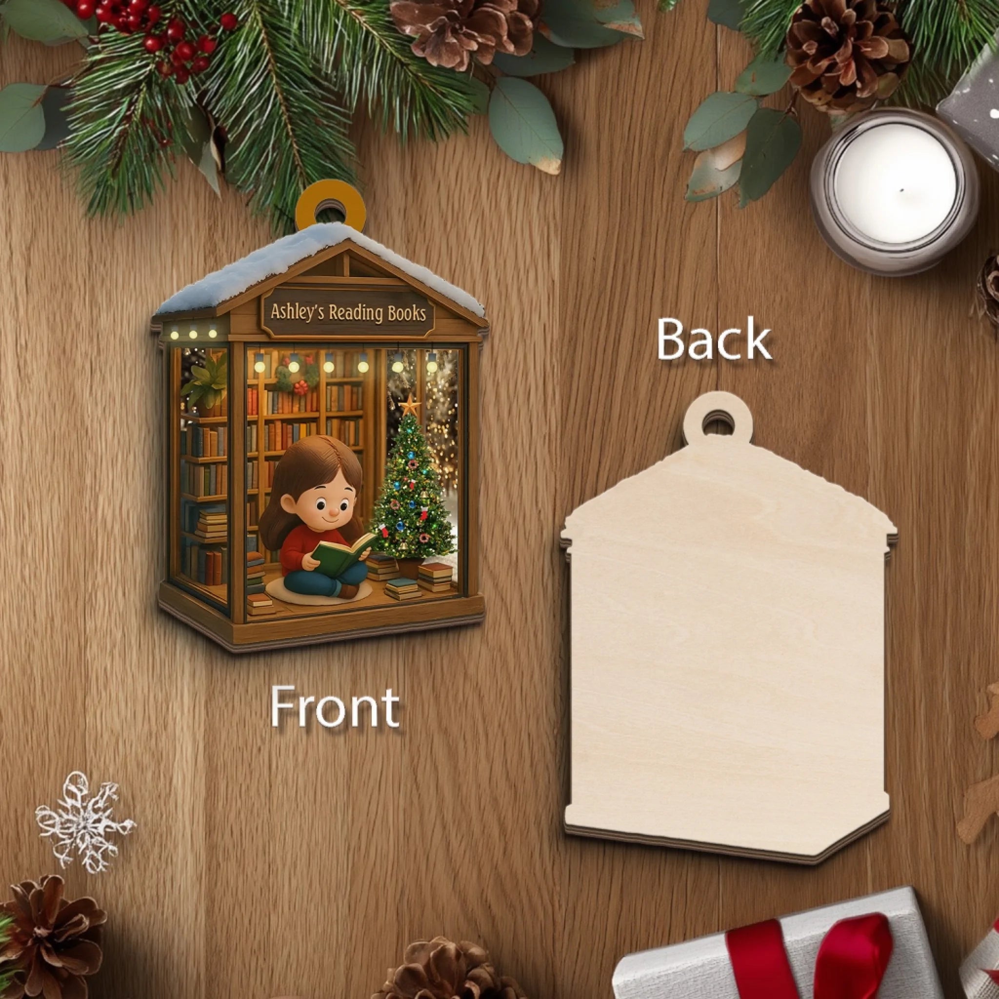 Personalized Reading Books Ornament – Custom Name & Character, Wooden Christmas Decoration