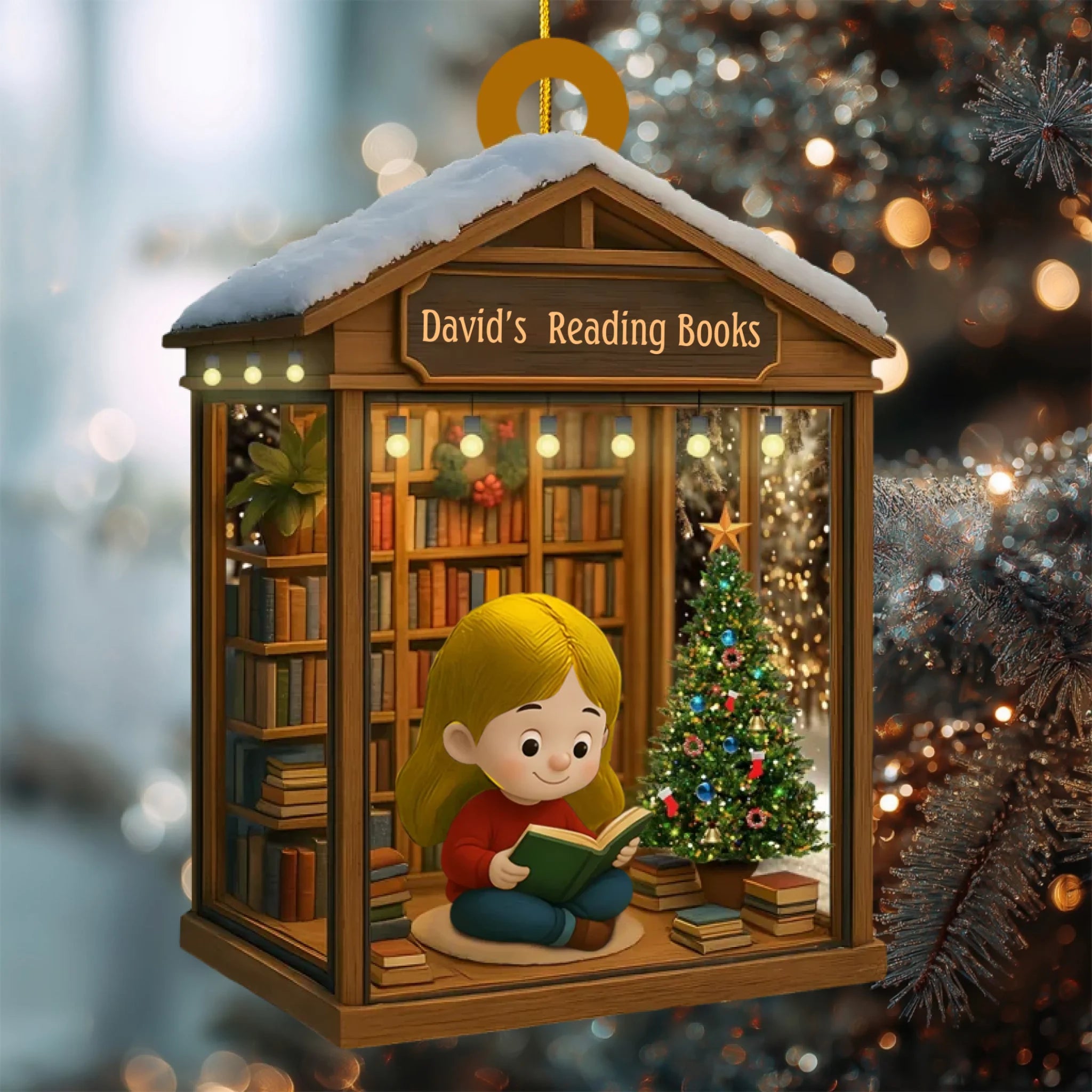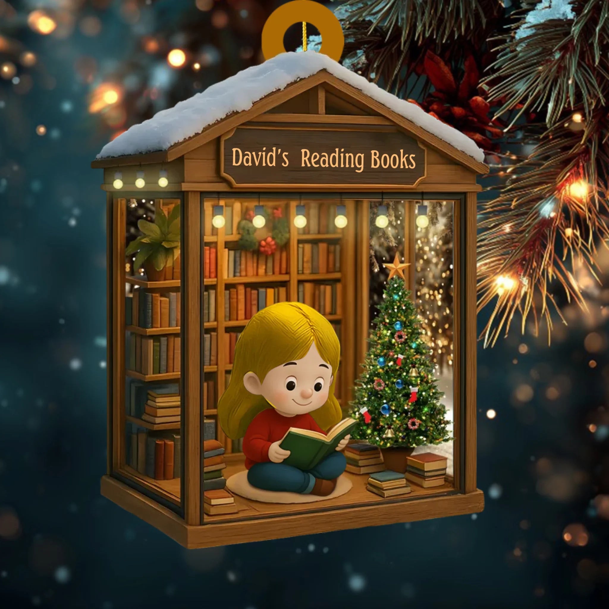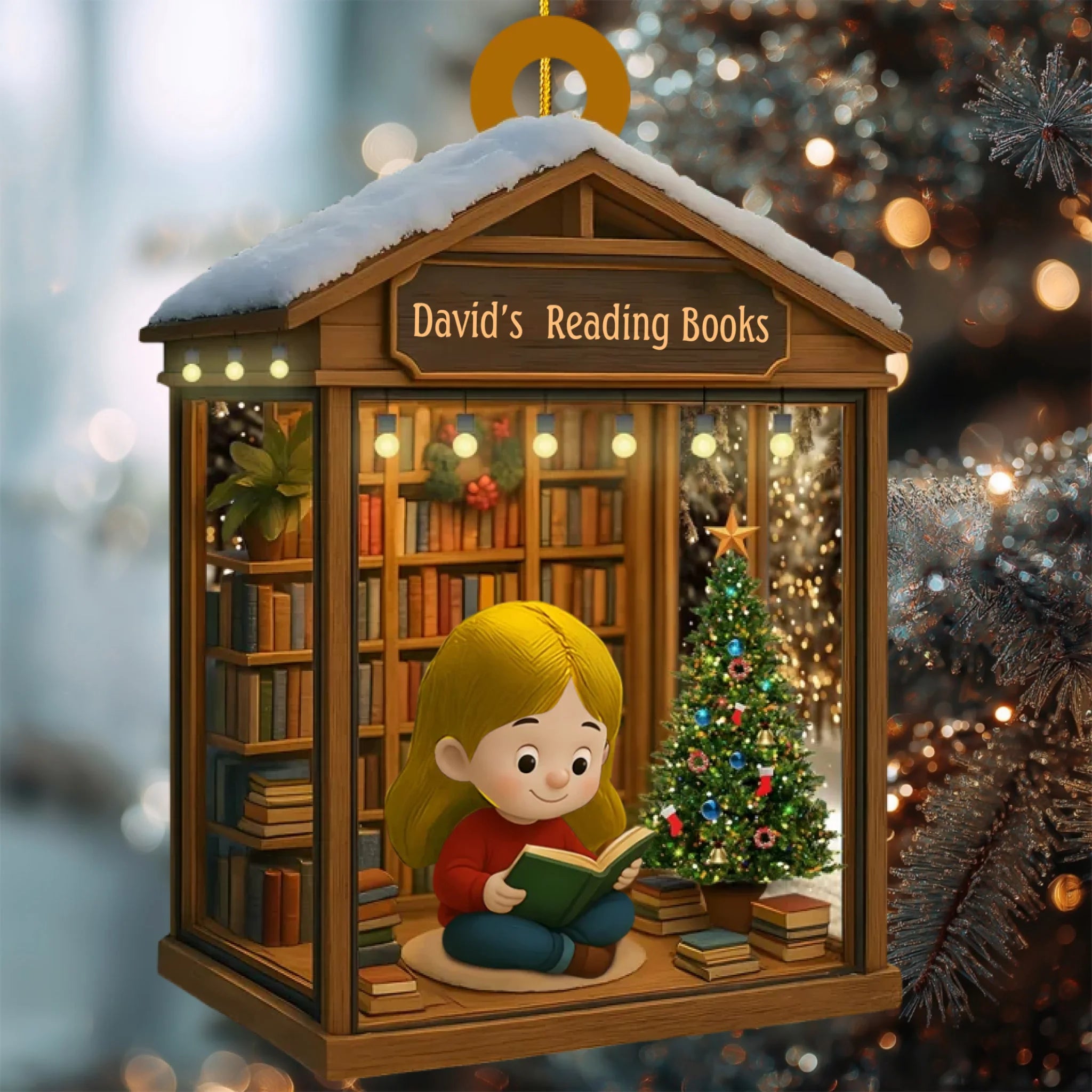 Personalized Reading Books Ornament – Custom Name & Character, Wooden Christmas Decoration