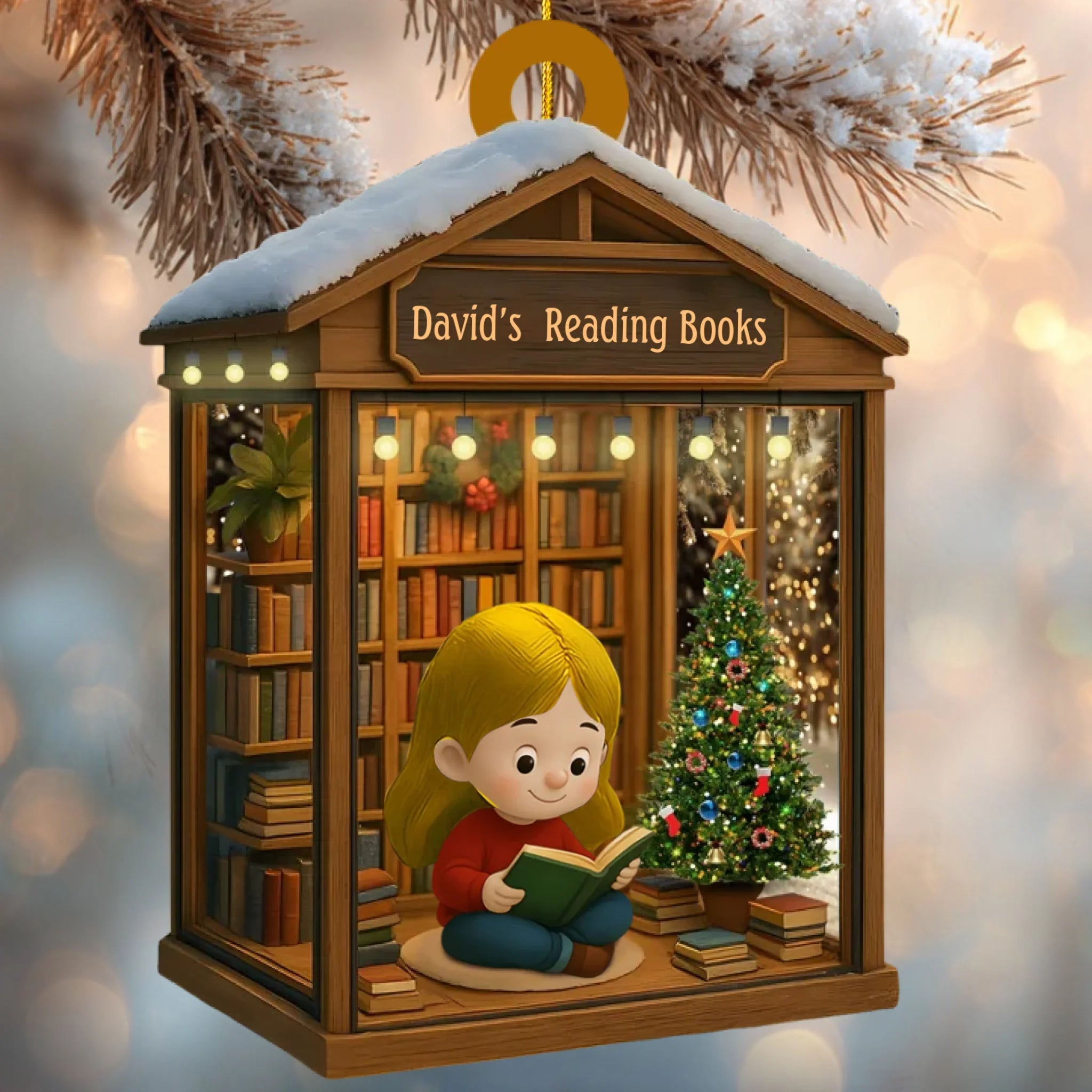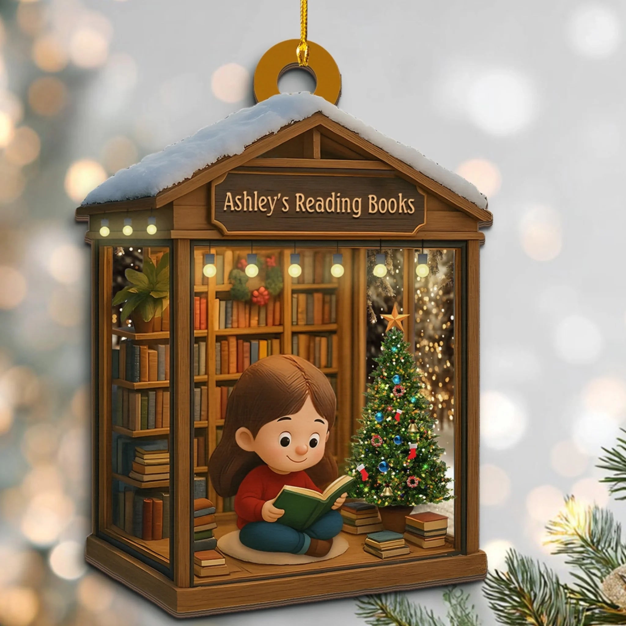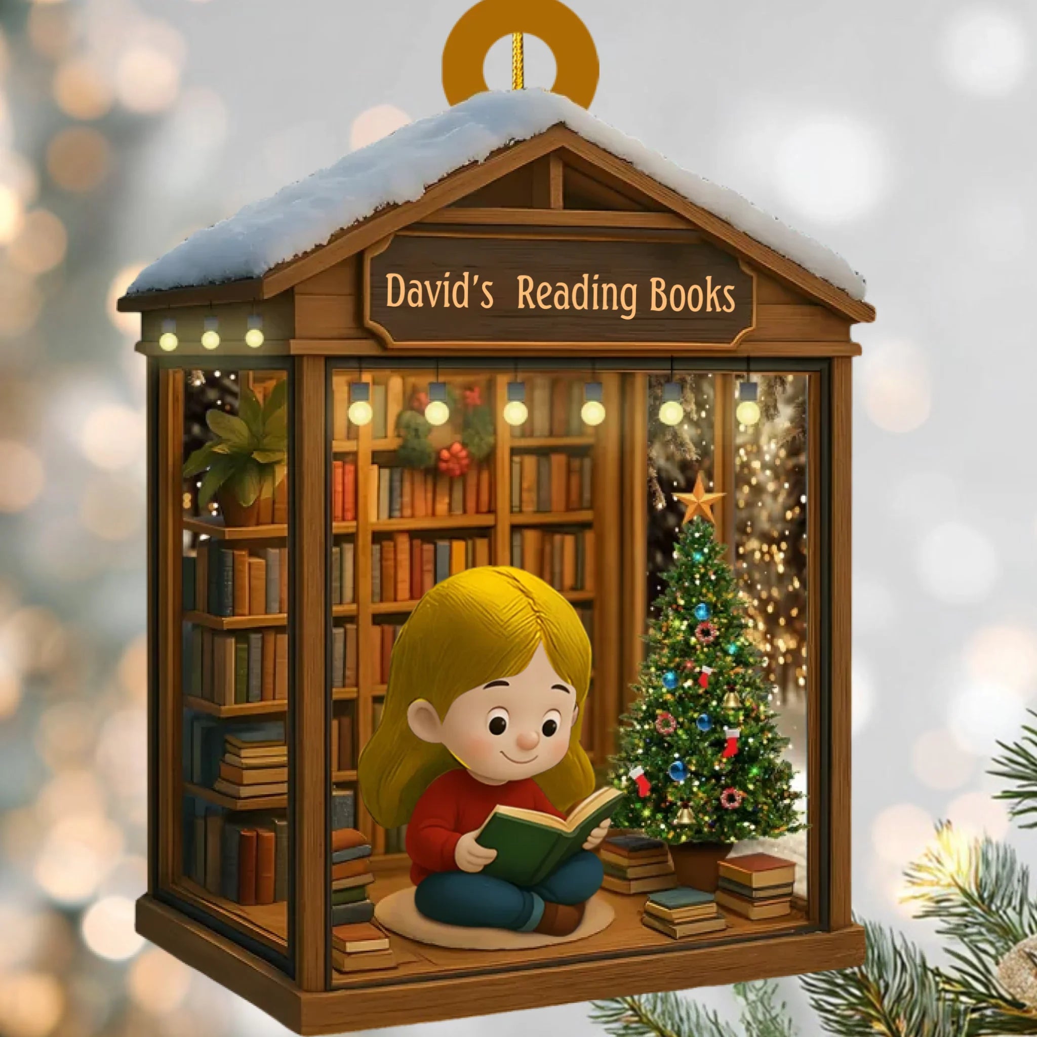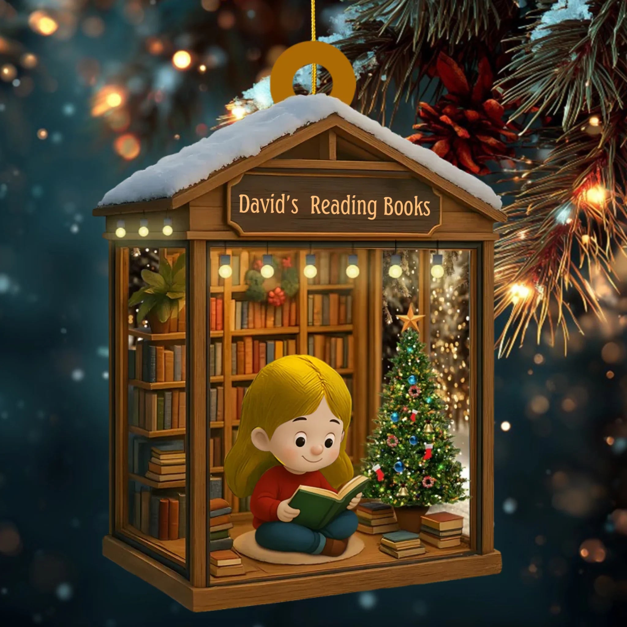 Personalized Reading Books Ornament – Custom Name & Character, Wooden Christmas Decoration