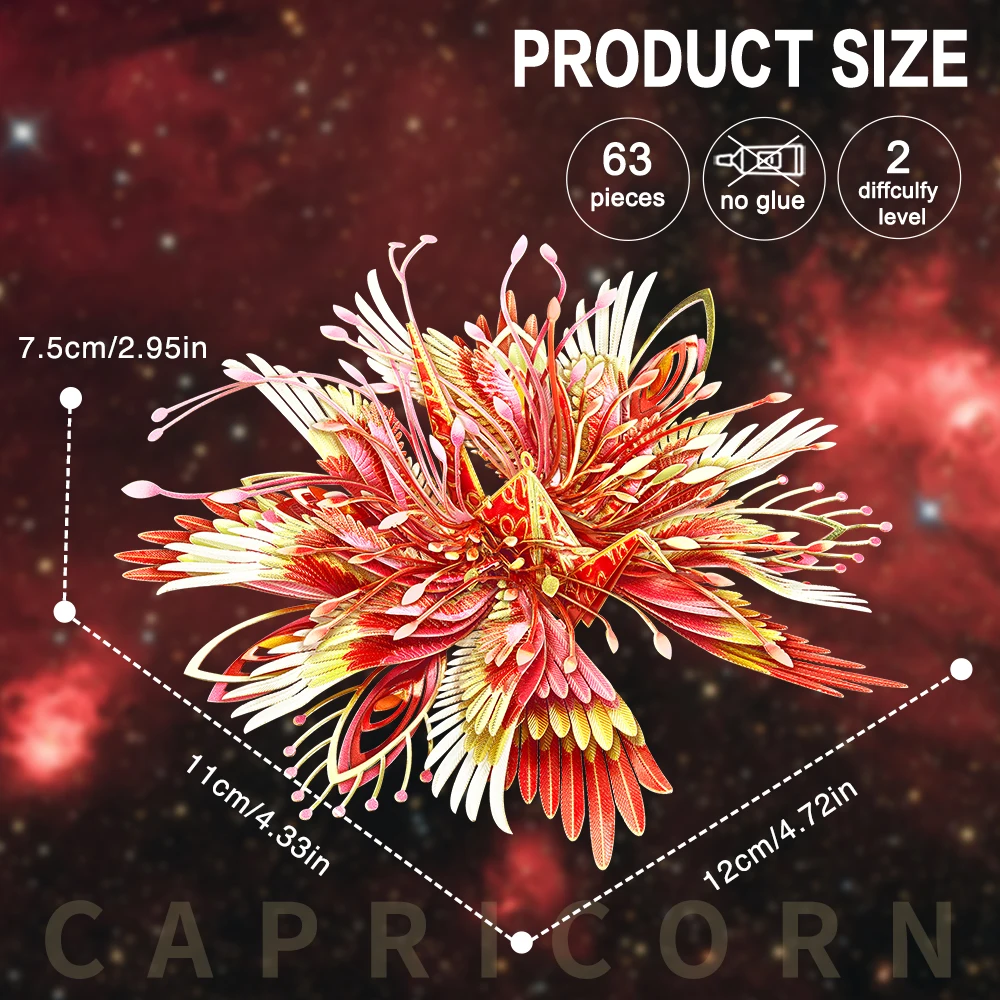 The 3D Capricornus metal assembly model emulates the colors of the zodiac Capricornus very sharply. It is the tenth astrological sign in the Zodiac, originating in the constellation Capricorn and located between the 270th and 300th degrees of celestial longitude. In astrology, Capricorn is considered the Earth sign, the introverted sign, and one of the 4 Rulers.