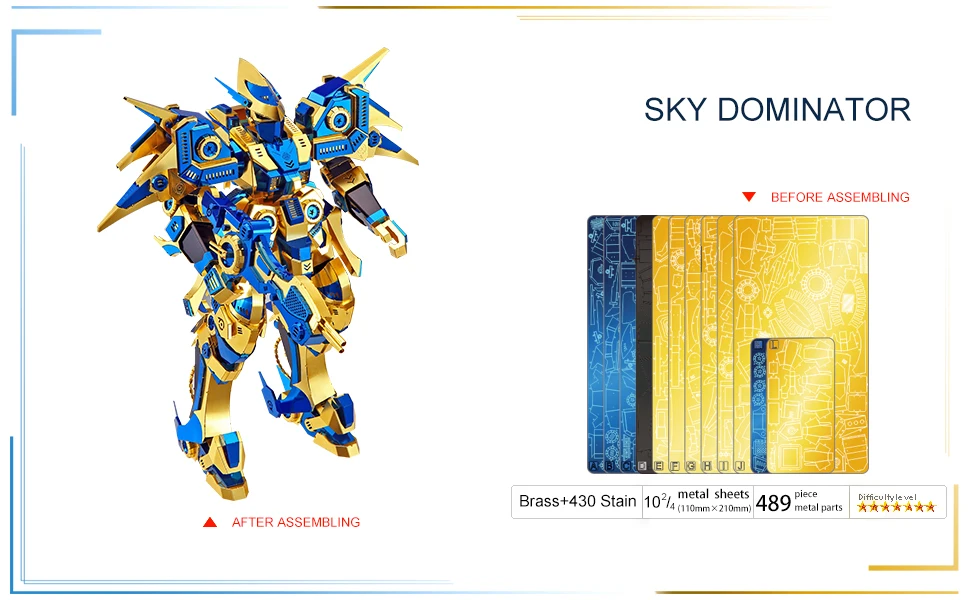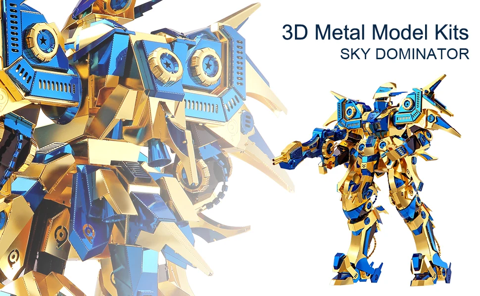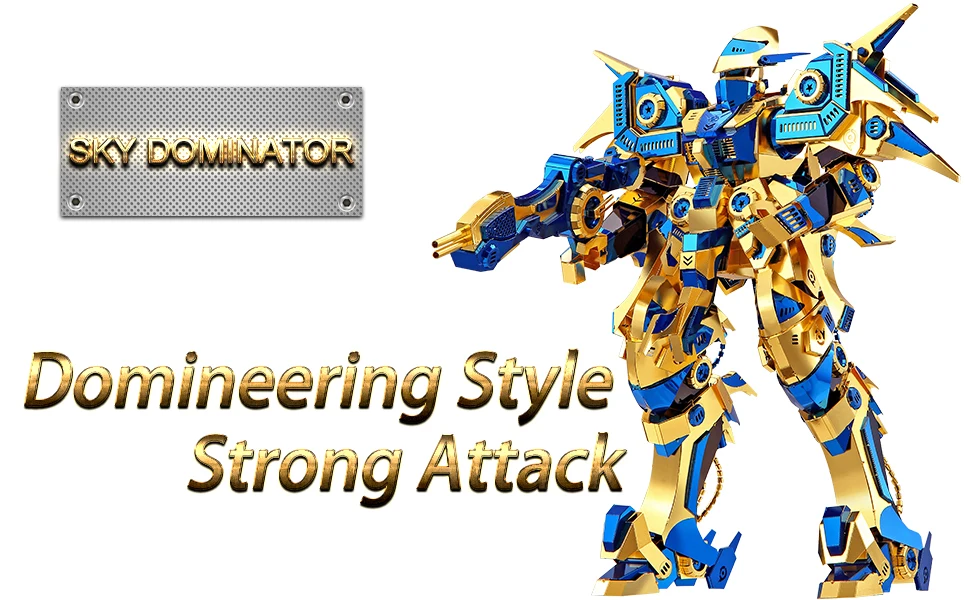 The Sky Dominator 3D Assemble Metal Model simulates a large stainless steel robot in many colors. You should own this model in your robot collection. Hope you have fun assembling it.