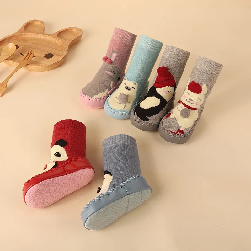 Lindos calcetines de piso de animales de dibujos animados: suela antideslizante de invierno para bebé