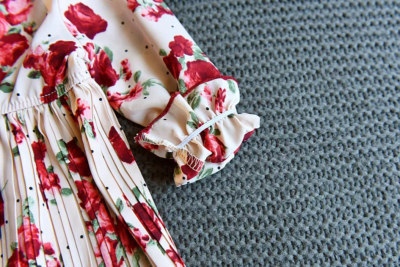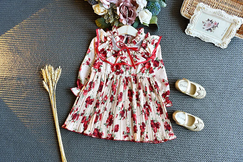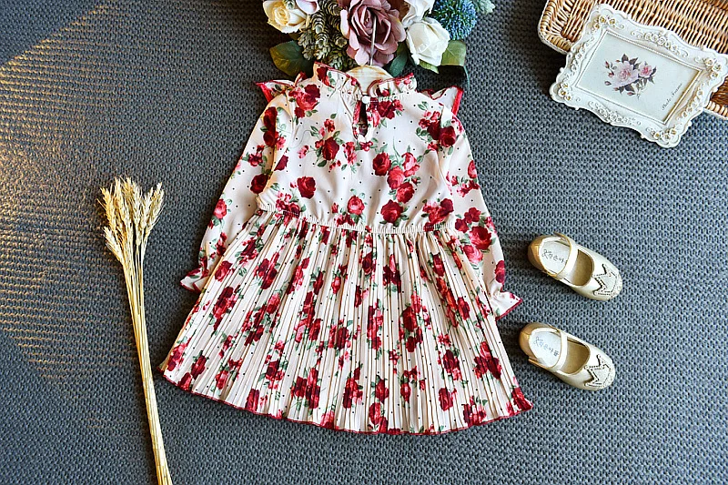 Vestido para niñas con diseño floral, cuello de tortuga y espalda marinera