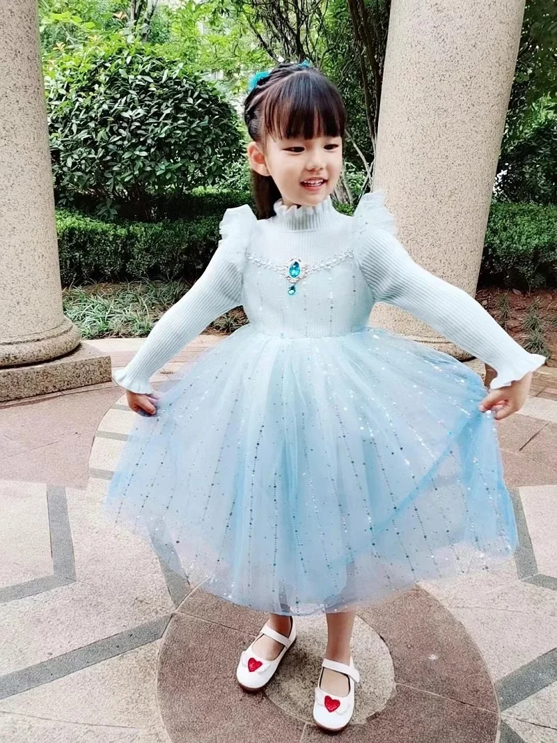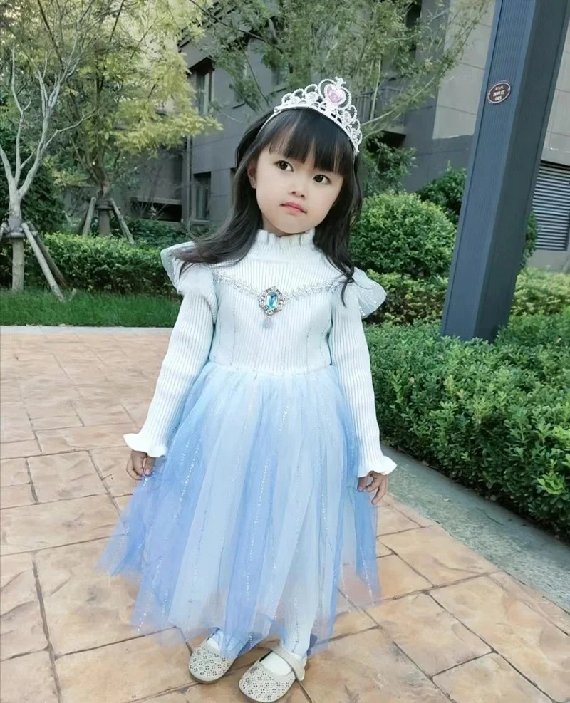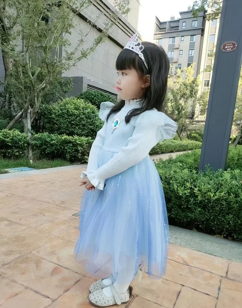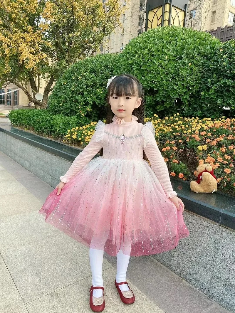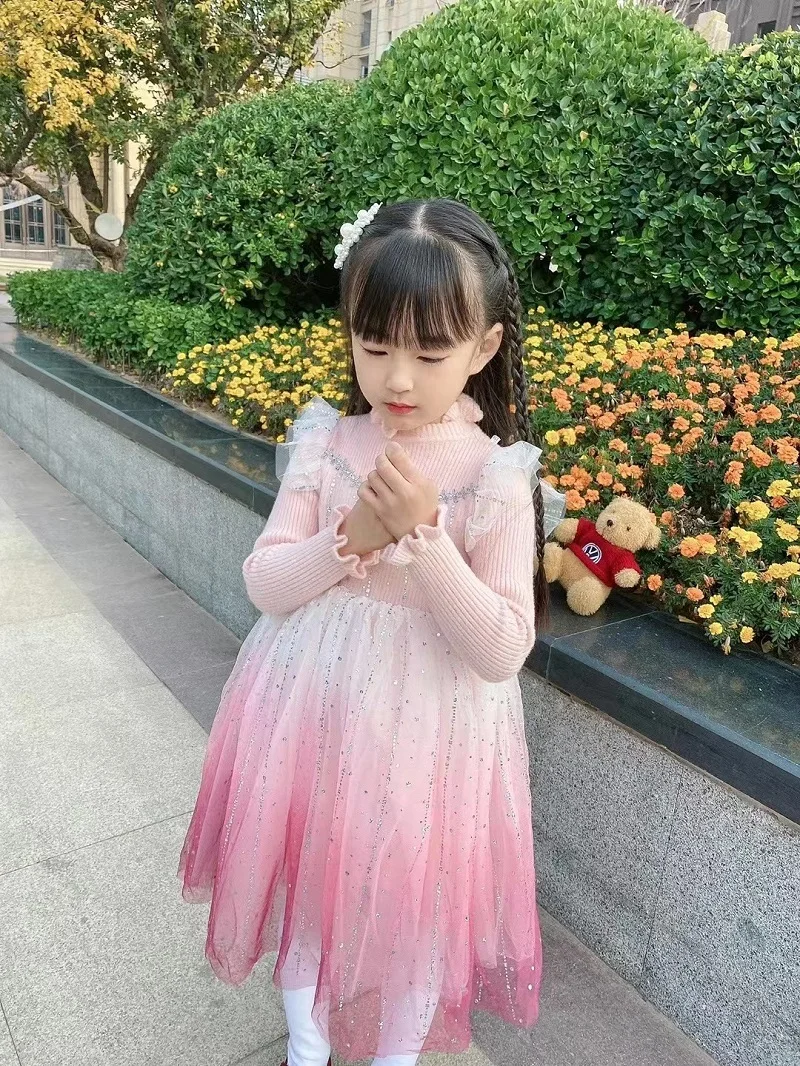 Vestido tejido para niñas con mangas de mariposa y cristales de diamante