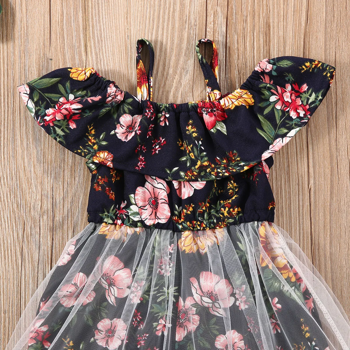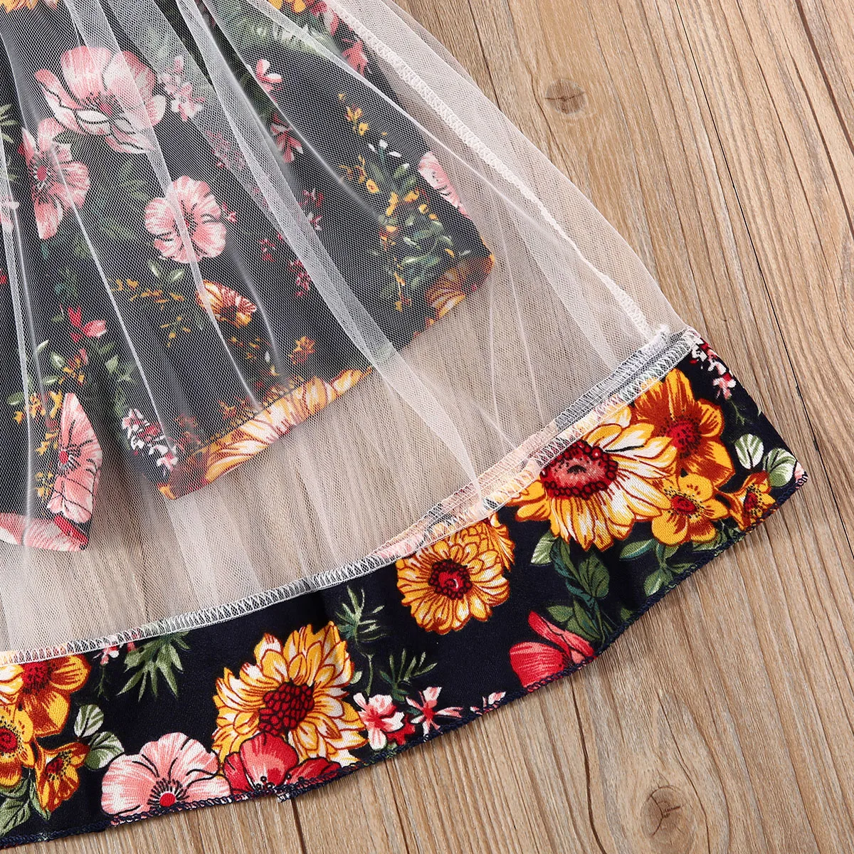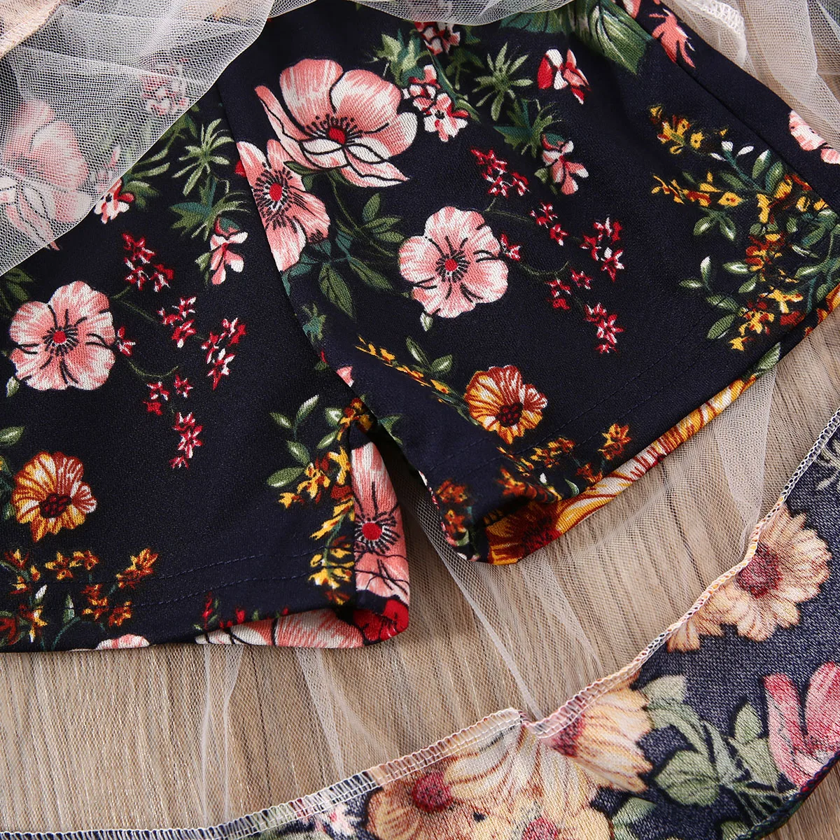 Vestido de verano para niñas con mono interior floral y falda transparente