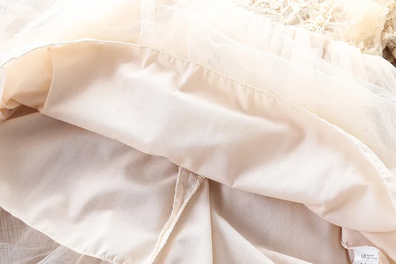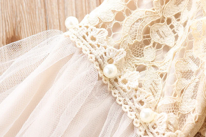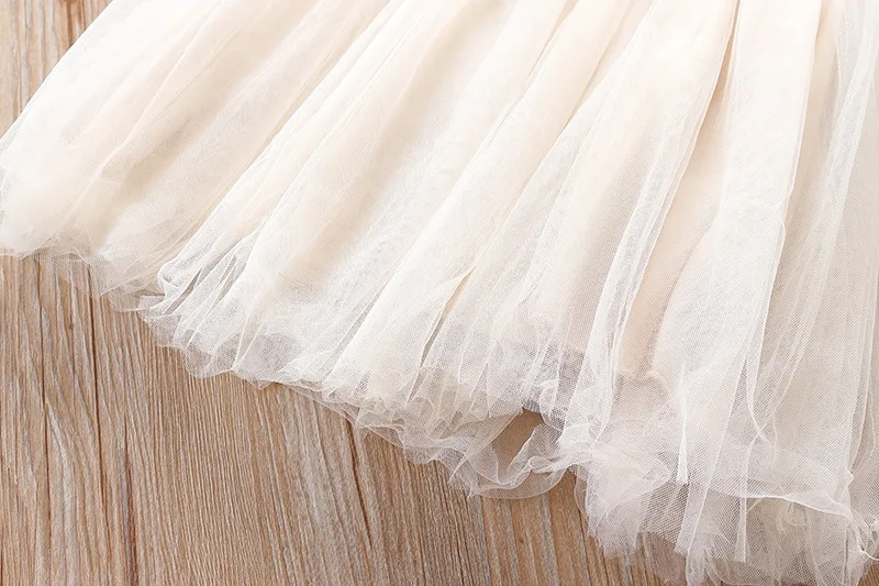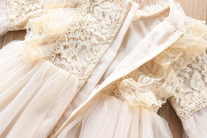 Floral Lace Top and Ruffles Long Sleeve Girl Mesh Dress