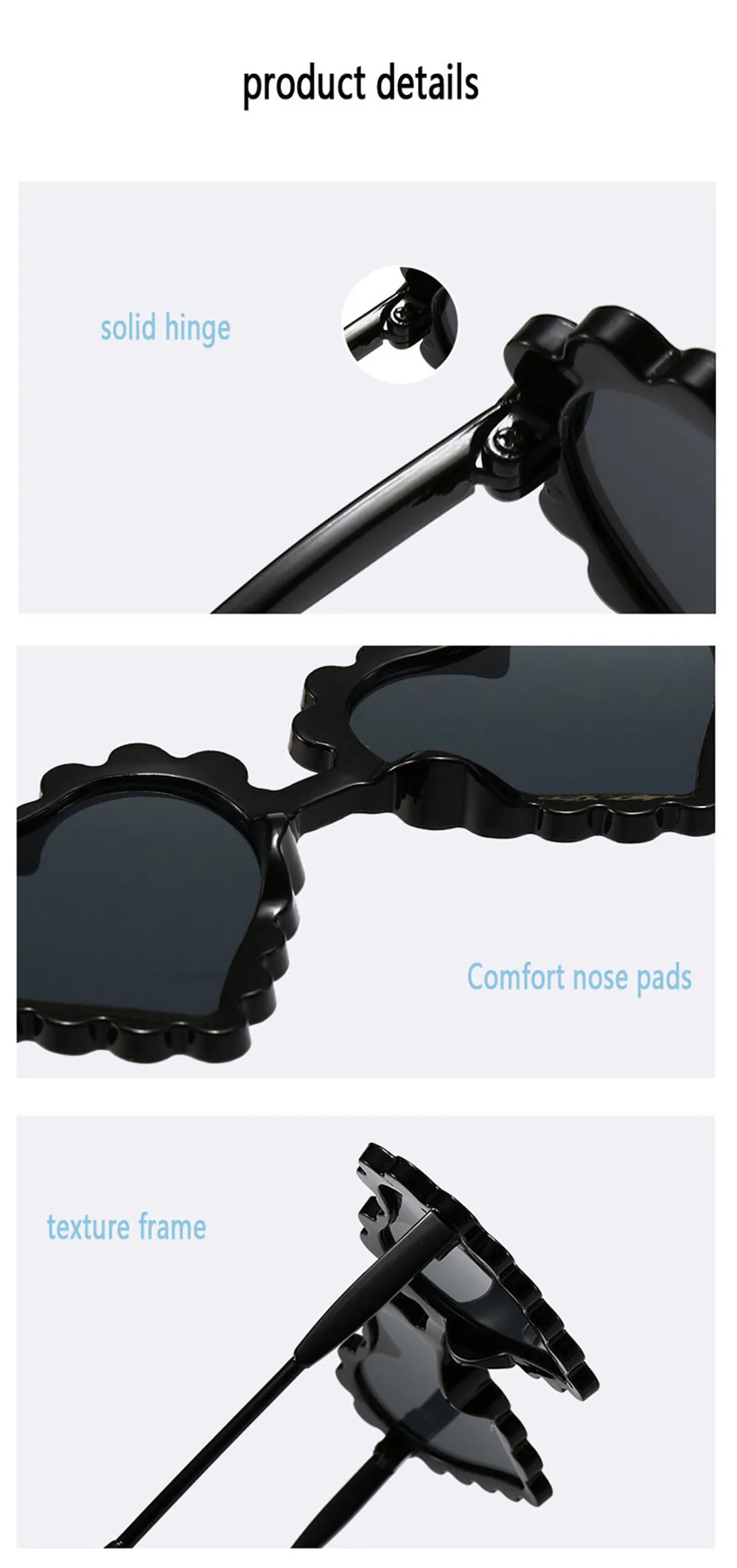 Nuestras gafas de sol en forma de corazón no sólo son un accesorio bonito y moderno, sino también un elemento esencial para proteger los ojos de su hijo. Fabricadas con monturas de aleación y plástico de alta calidad, estas gafas son livianas, firmes y duraderas, lo que garantiza un uso duradero.