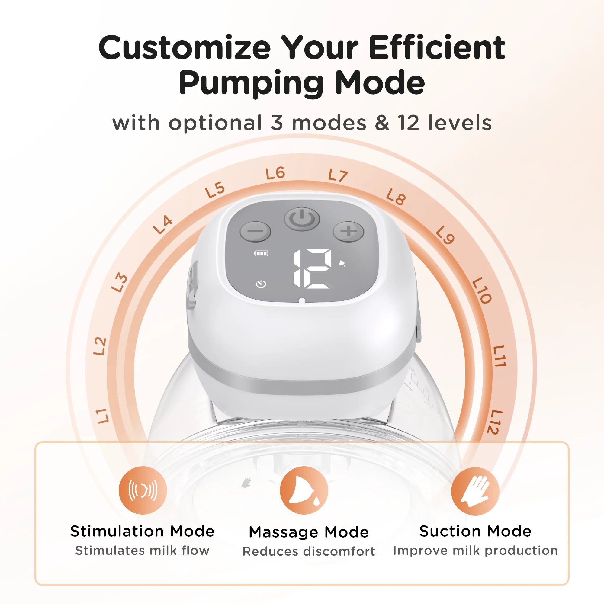 Less Time, More Milk: Upgraded from 9 to 12 suction levels, meeting greater suction demands. Go wireless, hands-free, and pump anytime, anywhere safely and painlessly.