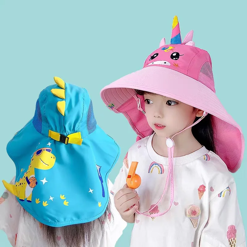 Gorro de ala ancha tipo bucket para bebés en verano - Protección solar UV de 360 grados para niños y niñas, gorro de pescador ajustable con diseño de dibujos animados para exteriores y playa