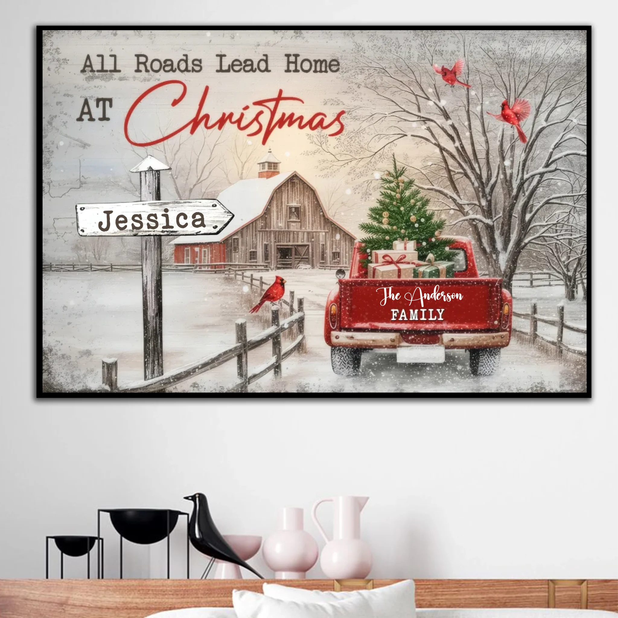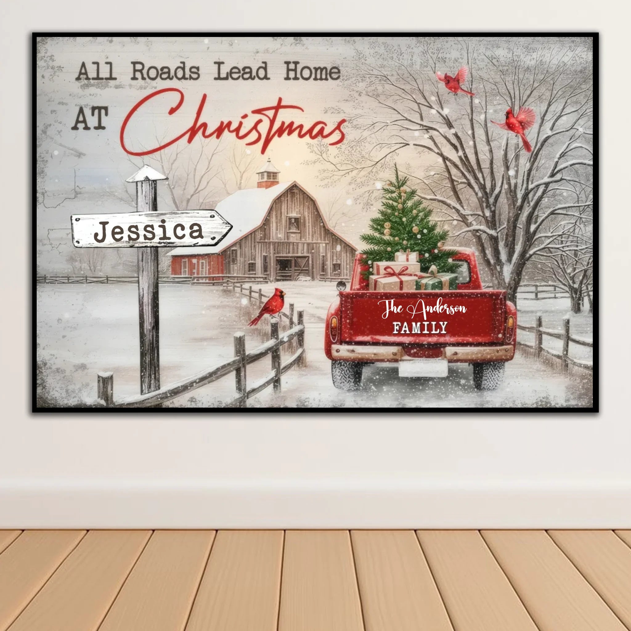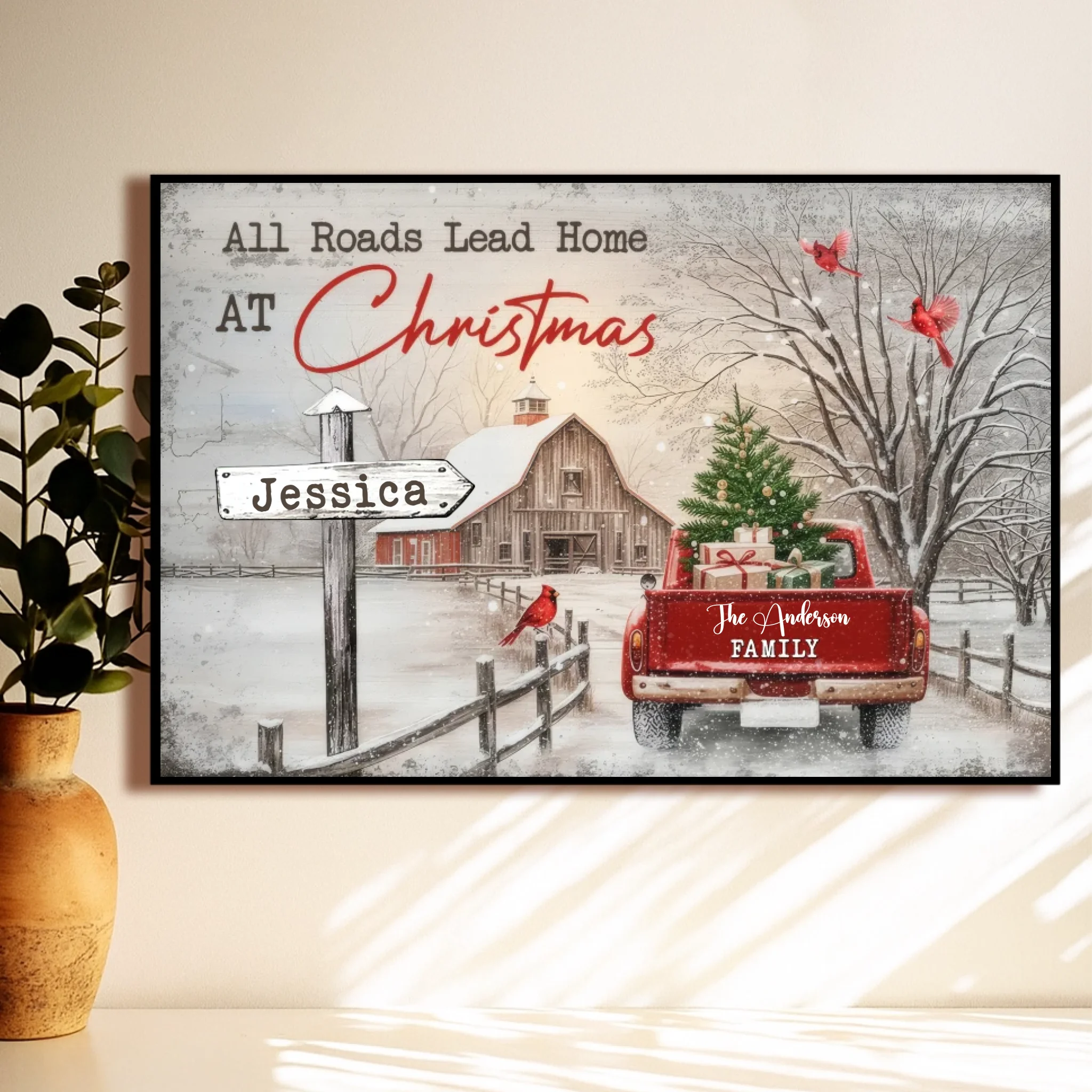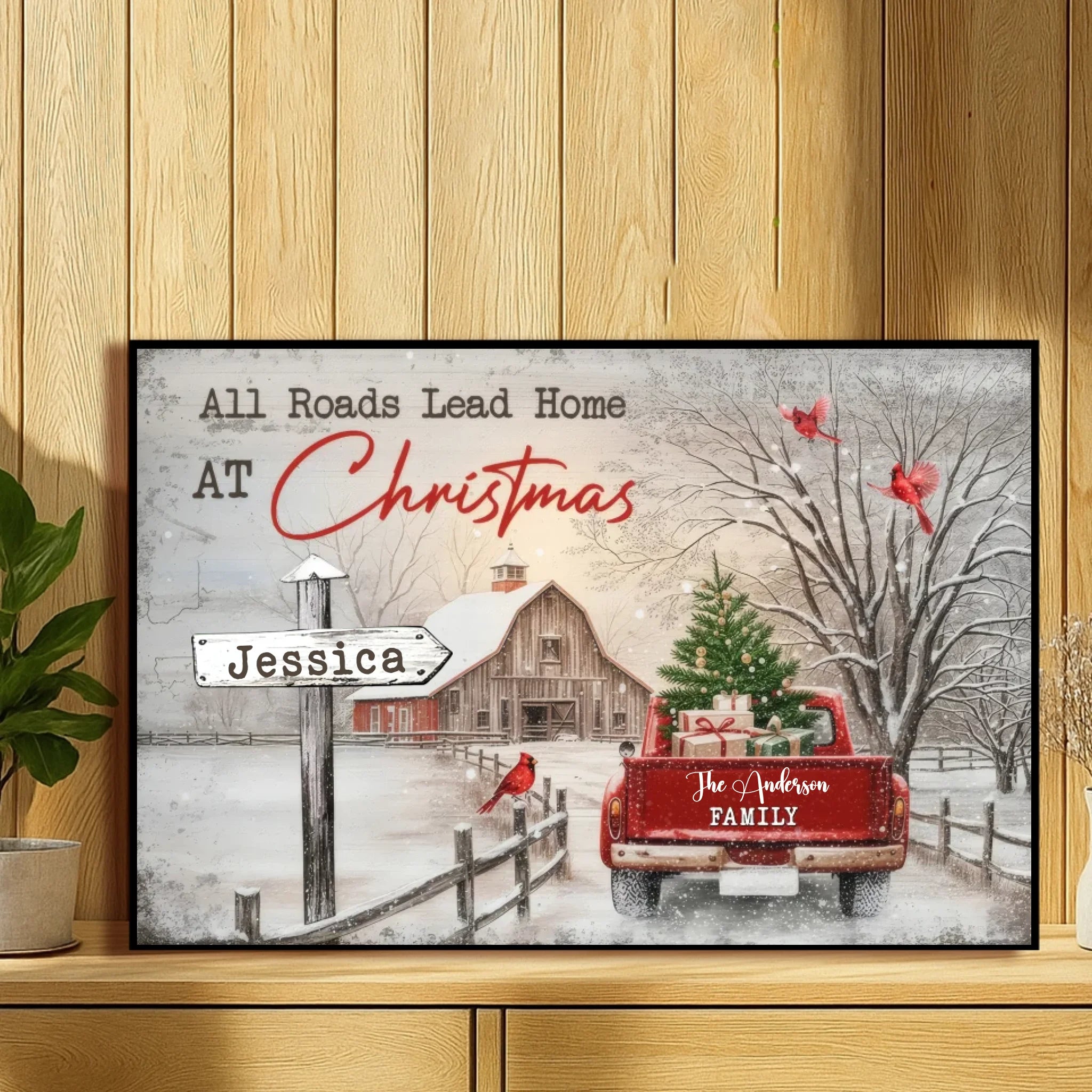 All Roads Lead Home at Christmas – Personalized Family Name Winter Poster