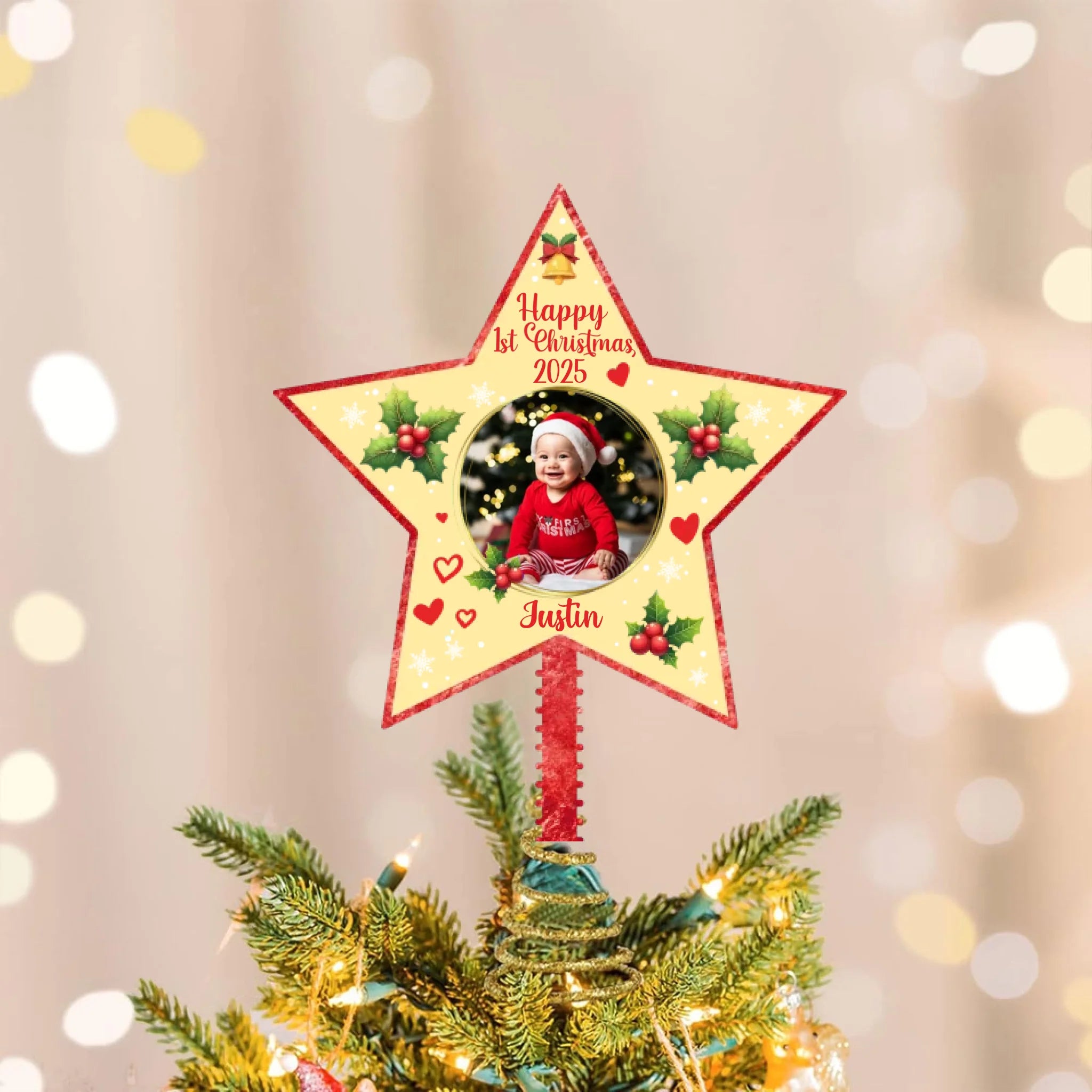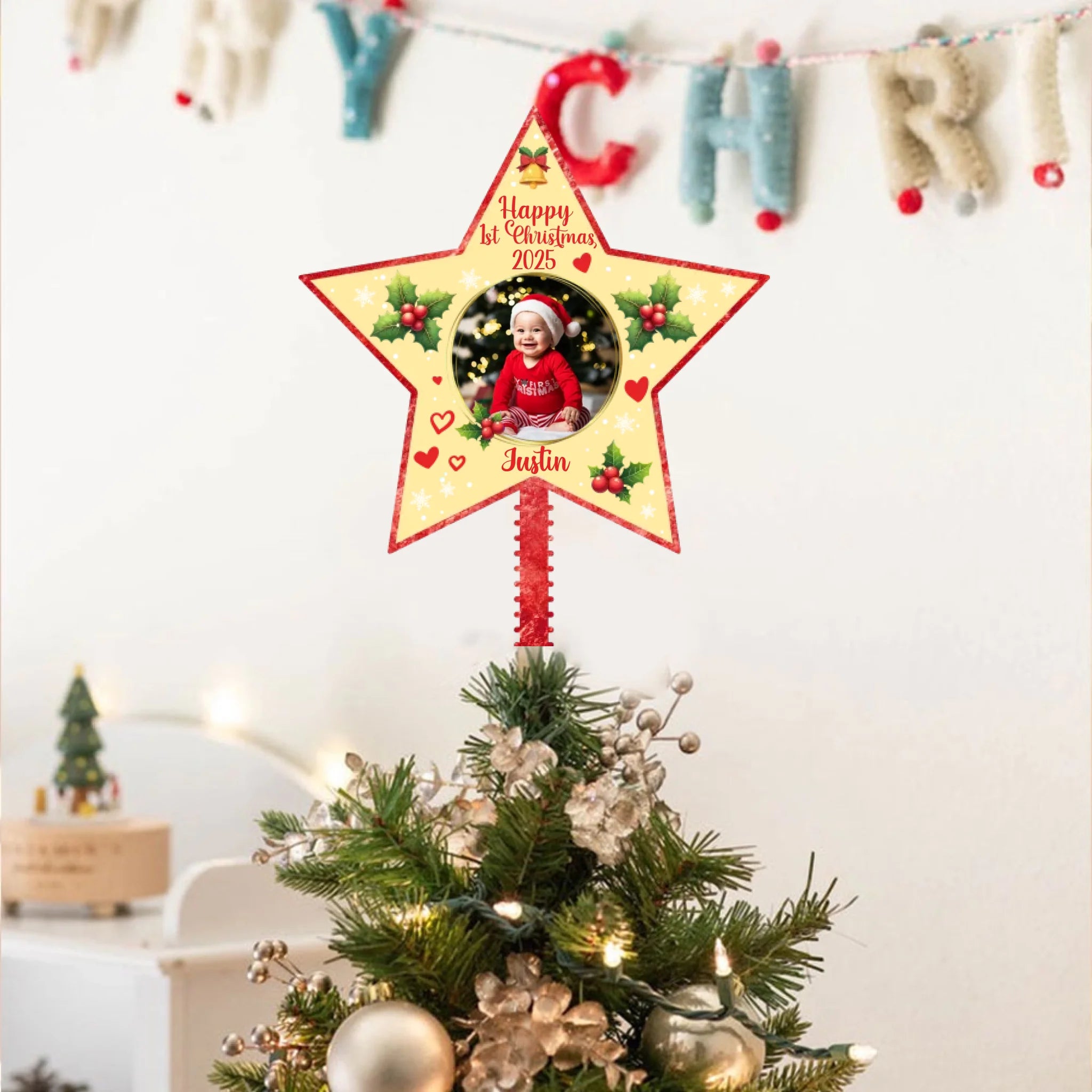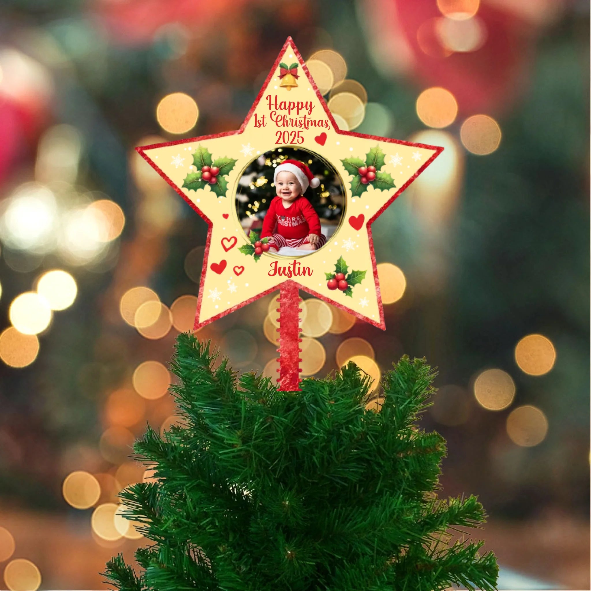 Personalized Baby’s 1st Christmas Photo Tree Topper