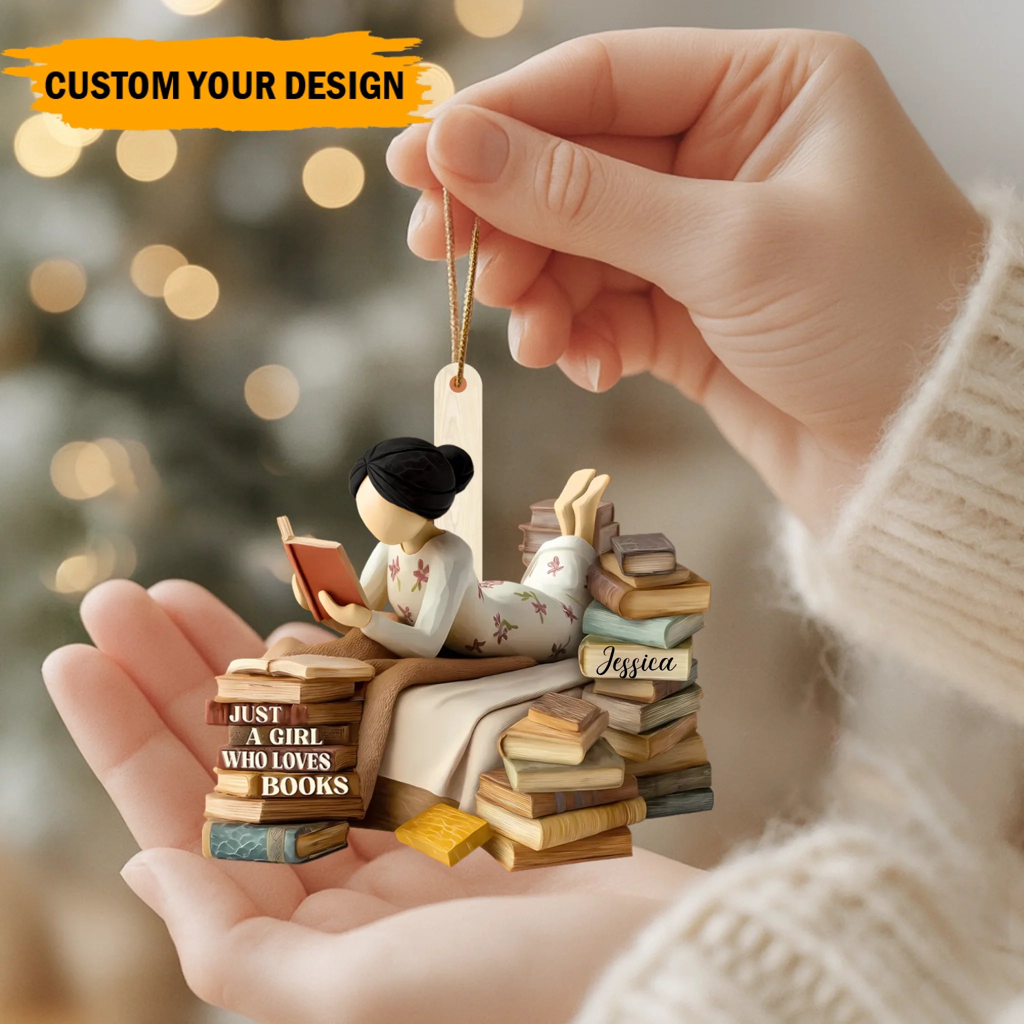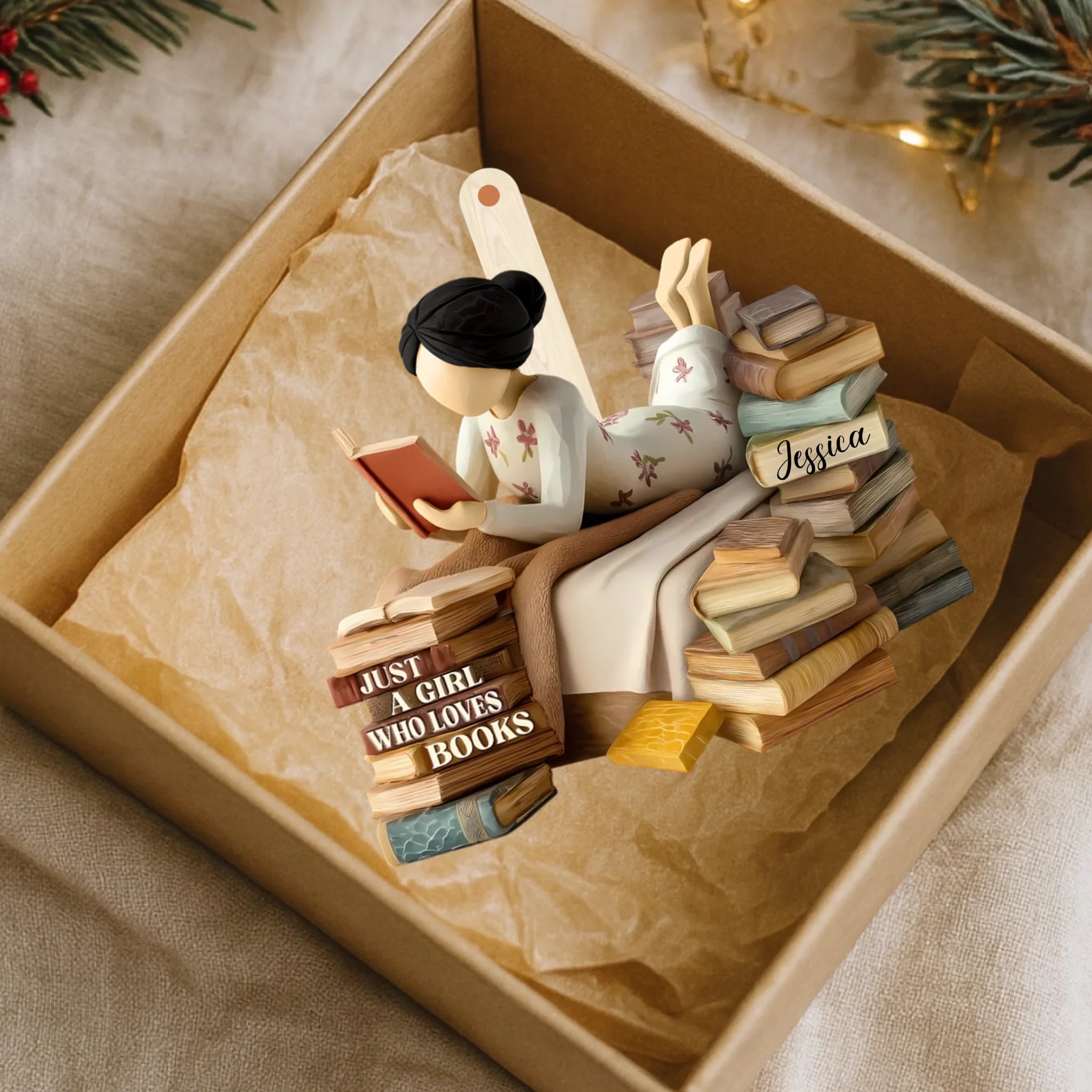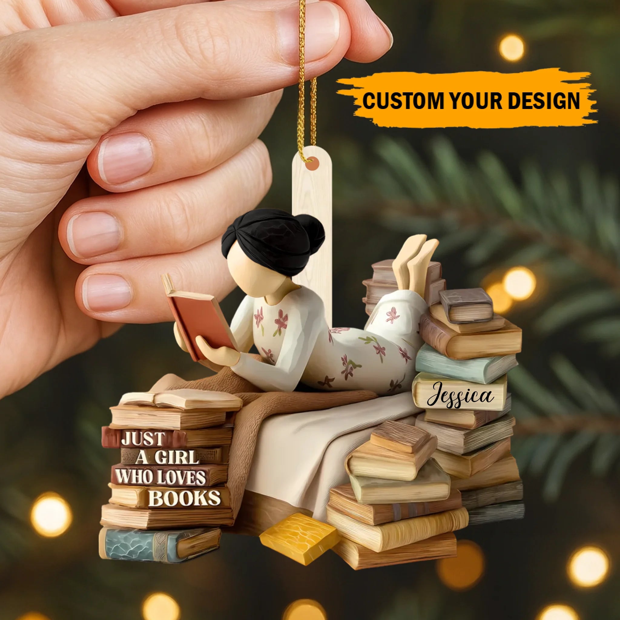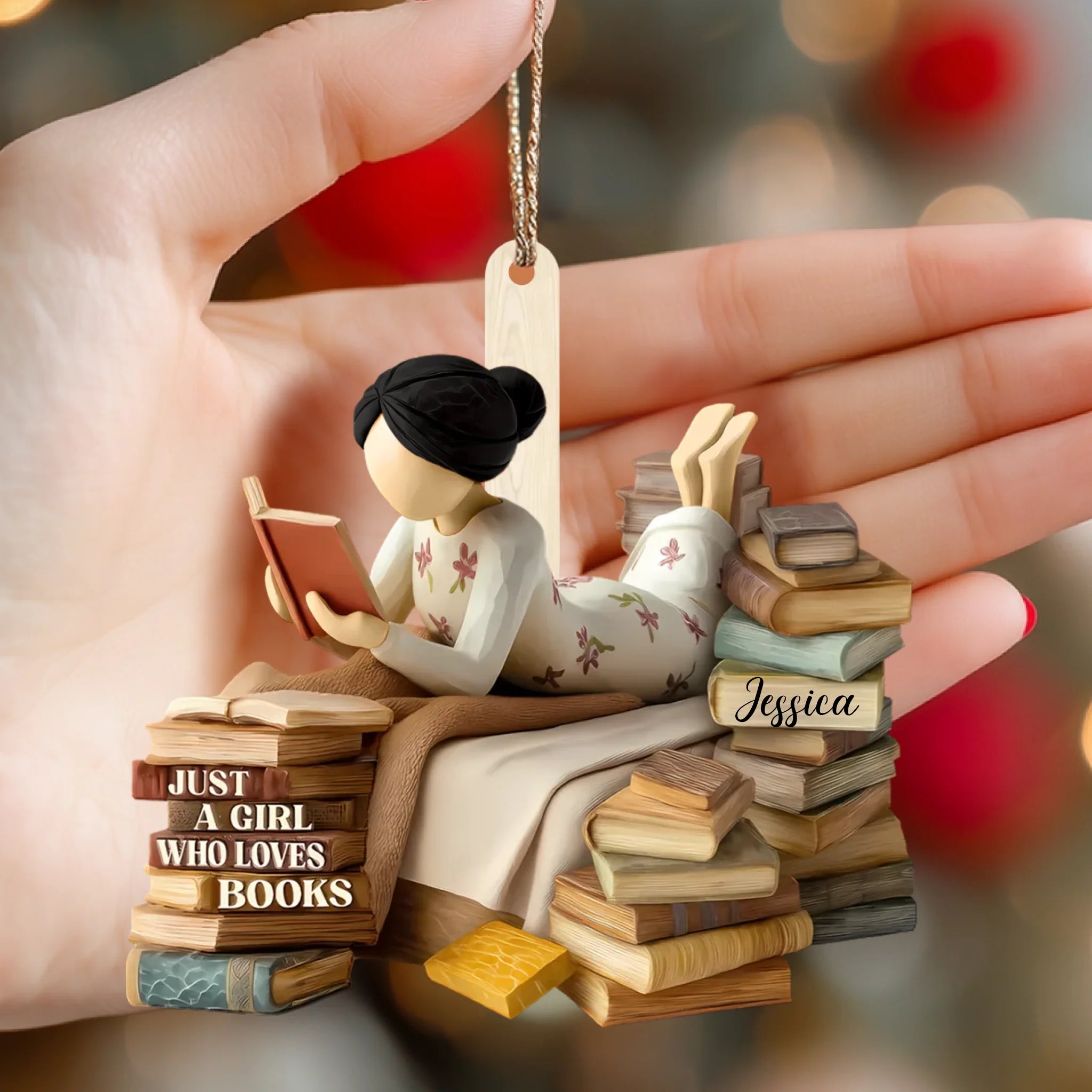 Personalized Book Lover Girl Wooden Ornament – Custom Name Reading Ornament | Just a Girl Who Loves Books Gift