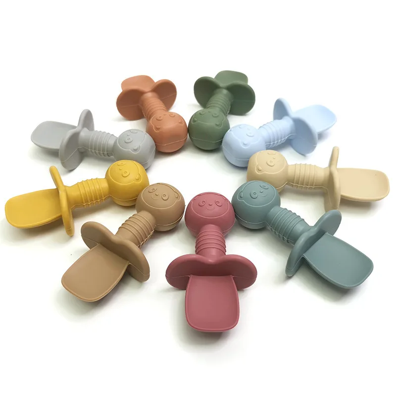 Juego de tenedor y cuchara de oso - Vajilla de entrenamiento para bebés de silicona