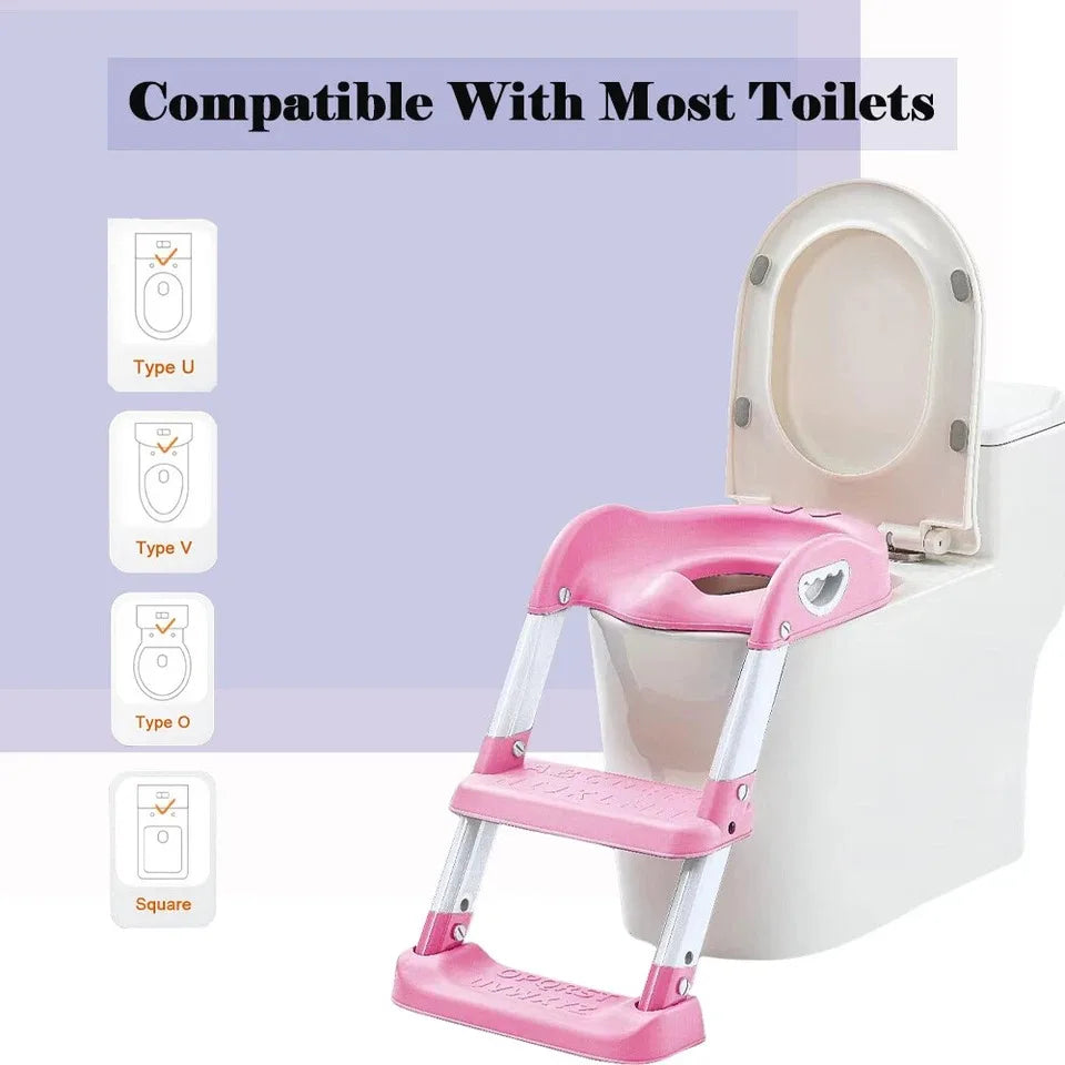 2-in-1 Kids Potty Training Seat with Steps - Foldable, Adjustable Ladder, Soft Cushion, Splash Guard