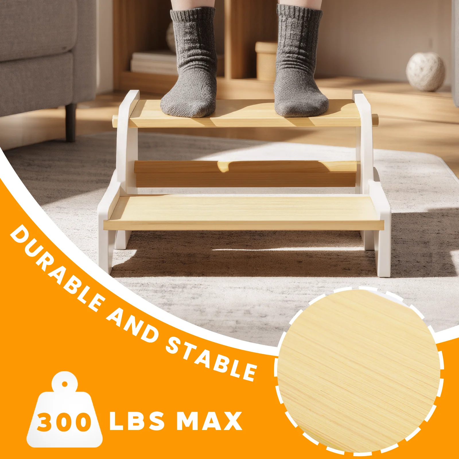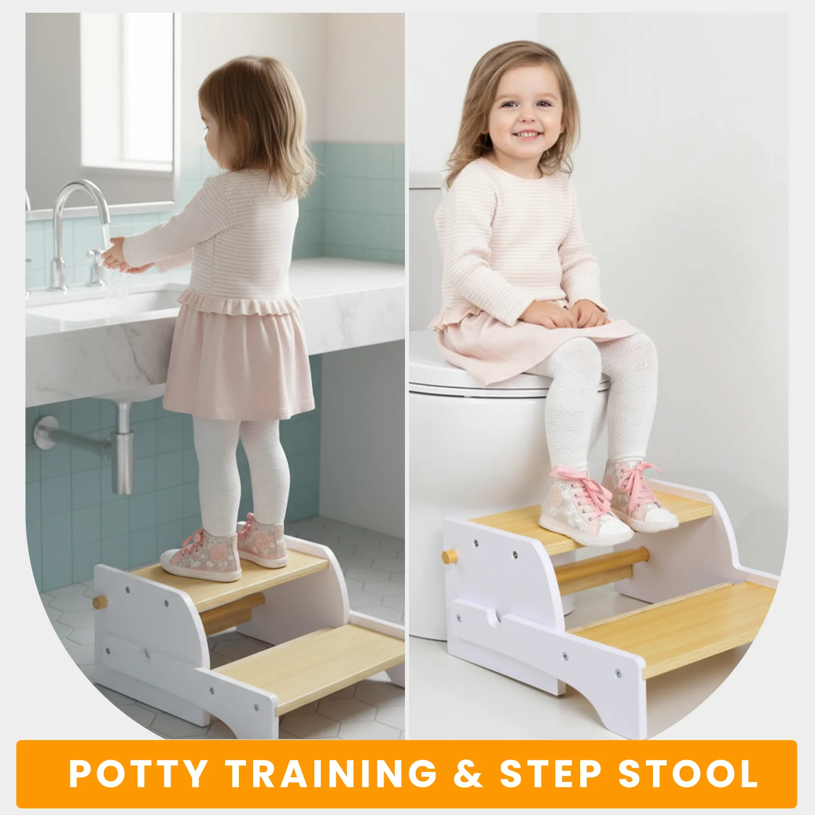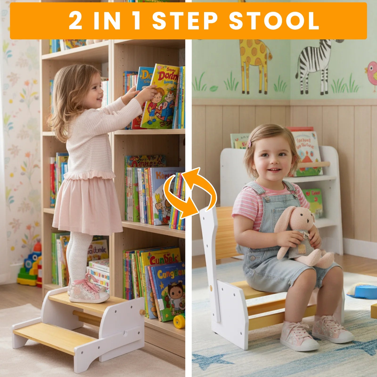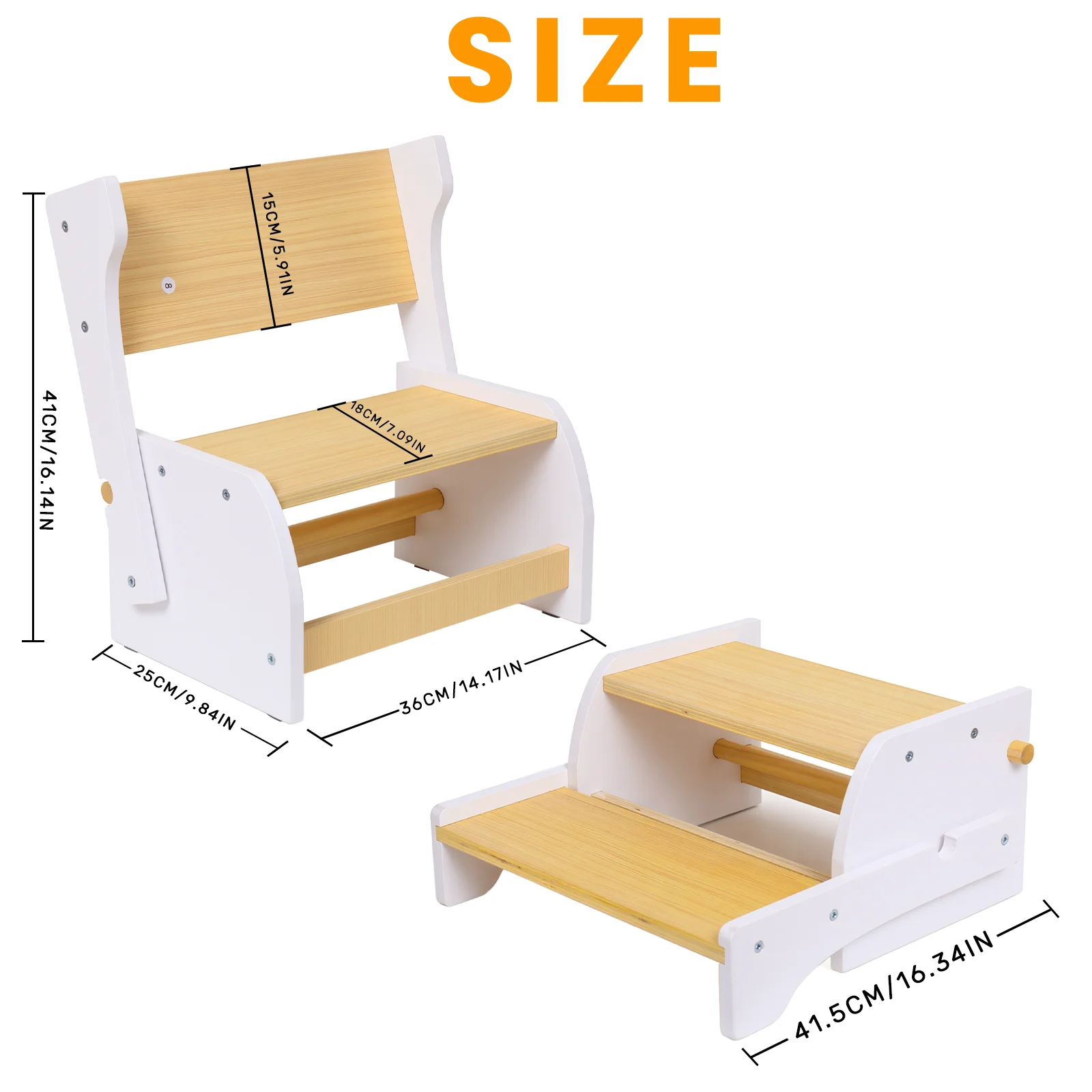 Wooden 2-in-1 Convertible Step Stool & Chair for Kids, Heavy-Duty Toddler Seat with Backrest, Non-Slip Base, and Multi-Purpose Design for Bathroom and Kitchen