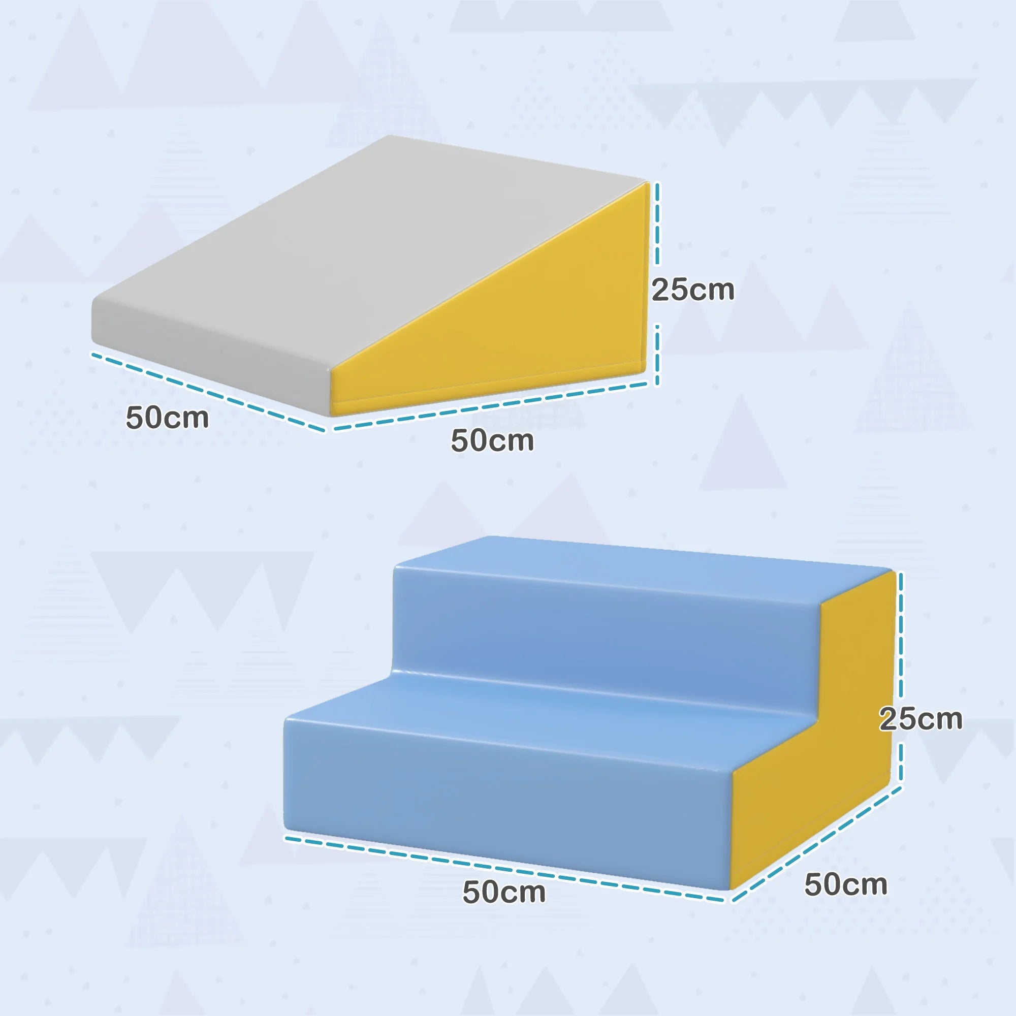 2 Piece Soft Play Set for Toddler Climb and Crawl – Foam Play Structures for Motor Skill Development, Indoor Use (Blue/Yellow)