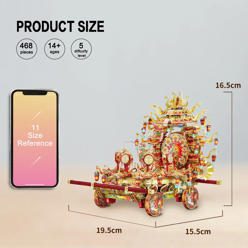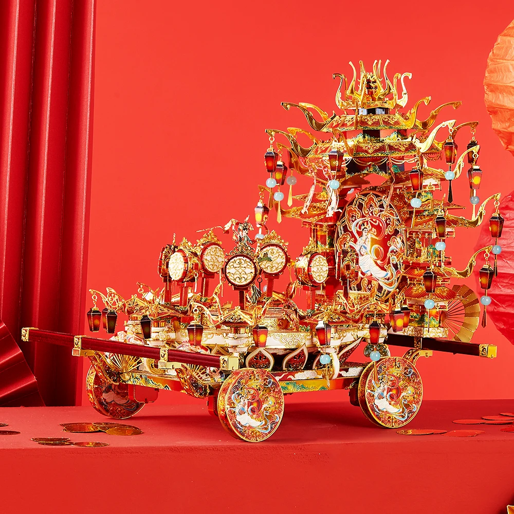 El modelo de ensamblaje de metal 3D del vehículo de danza del Fénix chino simula el tipo de vehículo utilizado en el antiguo festival de la China contemporánea. Un interesante modelo de montaje en tu colección.