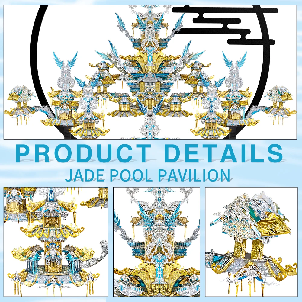 Modelo de pabellón de piscina de jade El modelo de ensamblaje de metal 3D simula el modelo de pabellón de piscina de jade, uno de los lugares famosos de China. Uno de los modelos que vale la pena coleccionar. Diviértete montando.