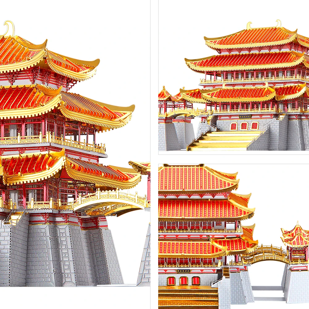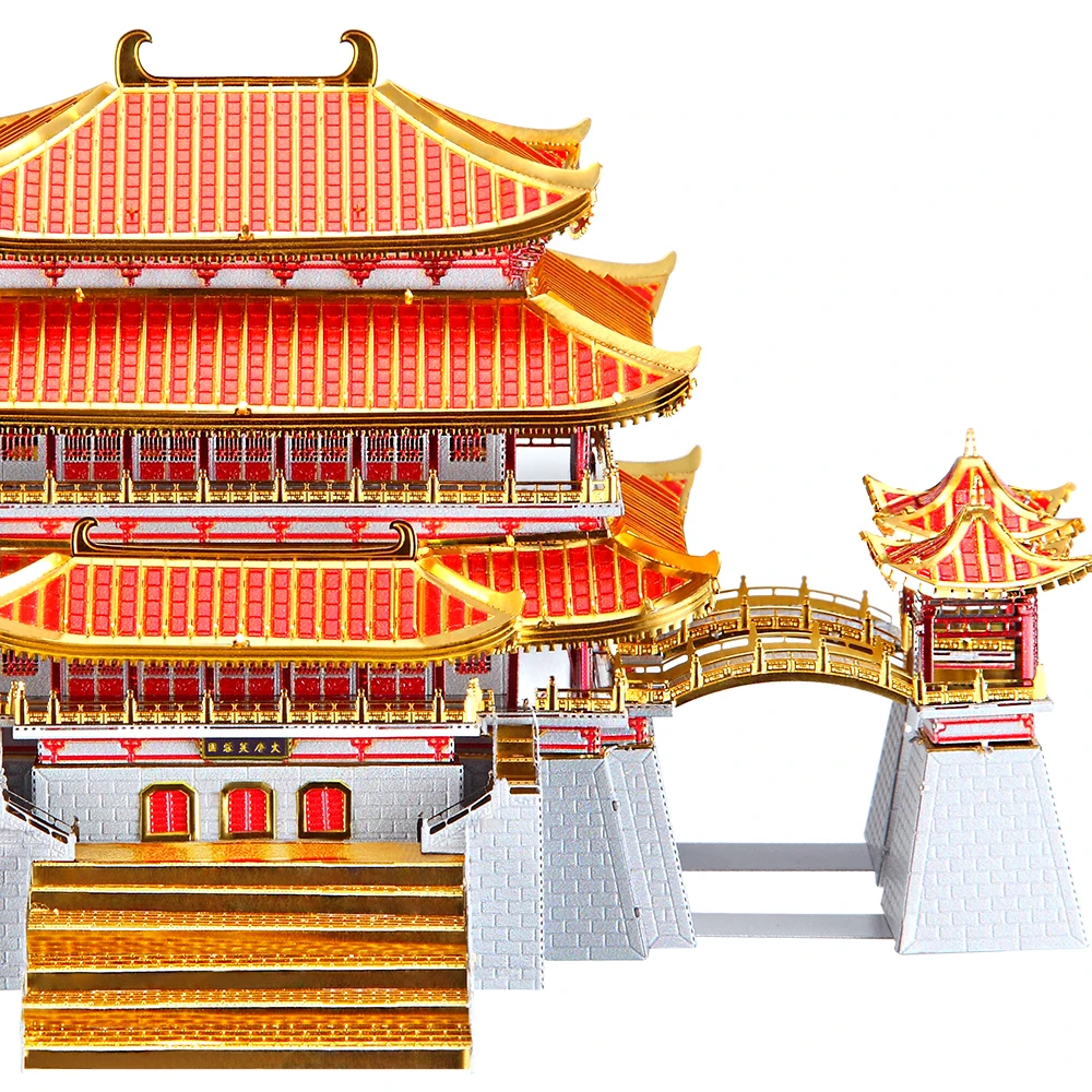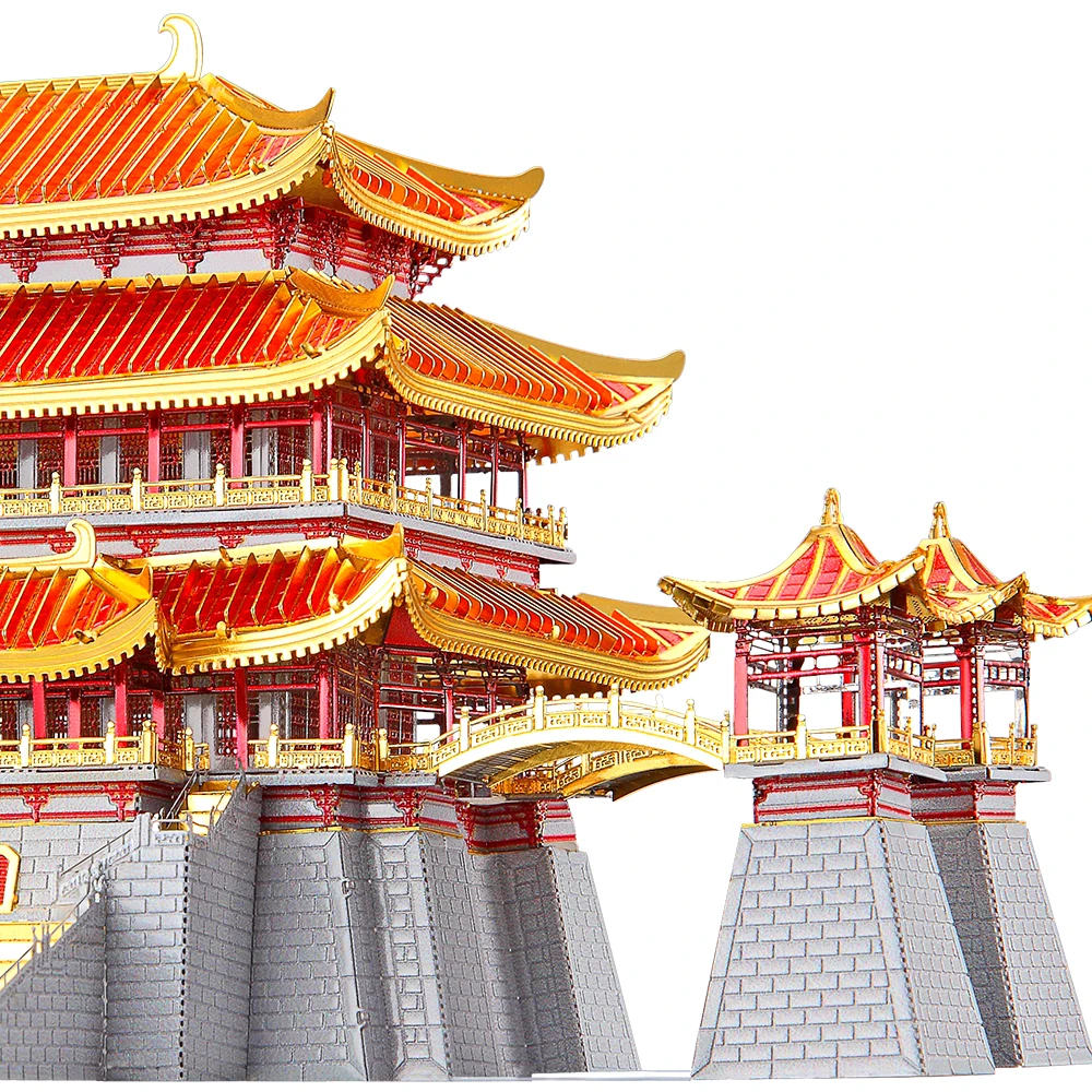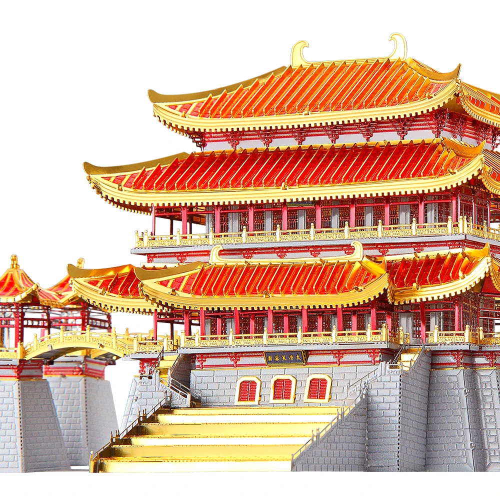 El modelo de ensamblaje de metal 3D Tang Paradise simula un jardín real durante la dinastía Tang, con palacios continuos, pabellones ondulados y edificios encantadores. Es un lugar escénico atractivo para los nobles reales.