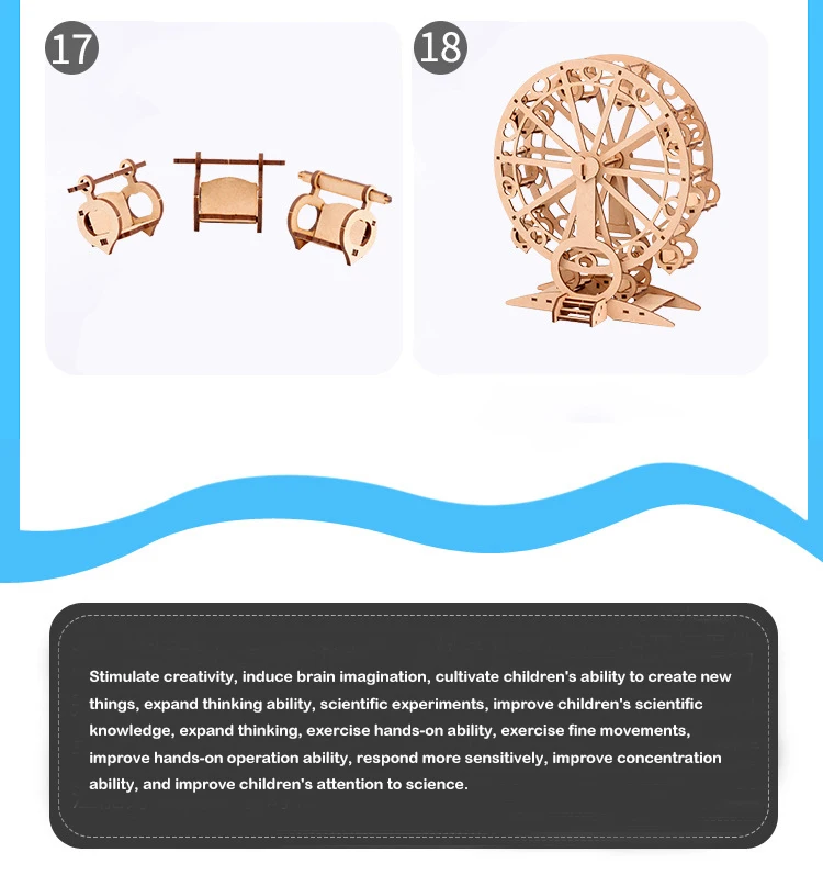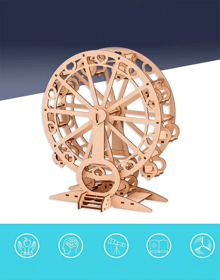 Esta es una noria de barco DIY que podría relajar tu mente y tu alma. Tiene una perspectiva bellamente diseñada. Este rompecabezas de madera 3D bellamente diseñado te ofrece una experiencia de montaje fluida que recompensará todo tu fin de semana.