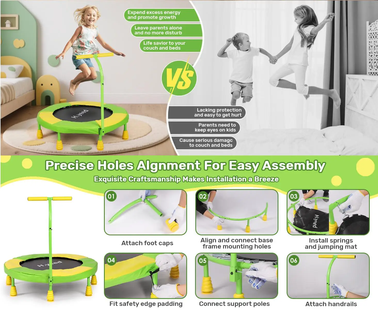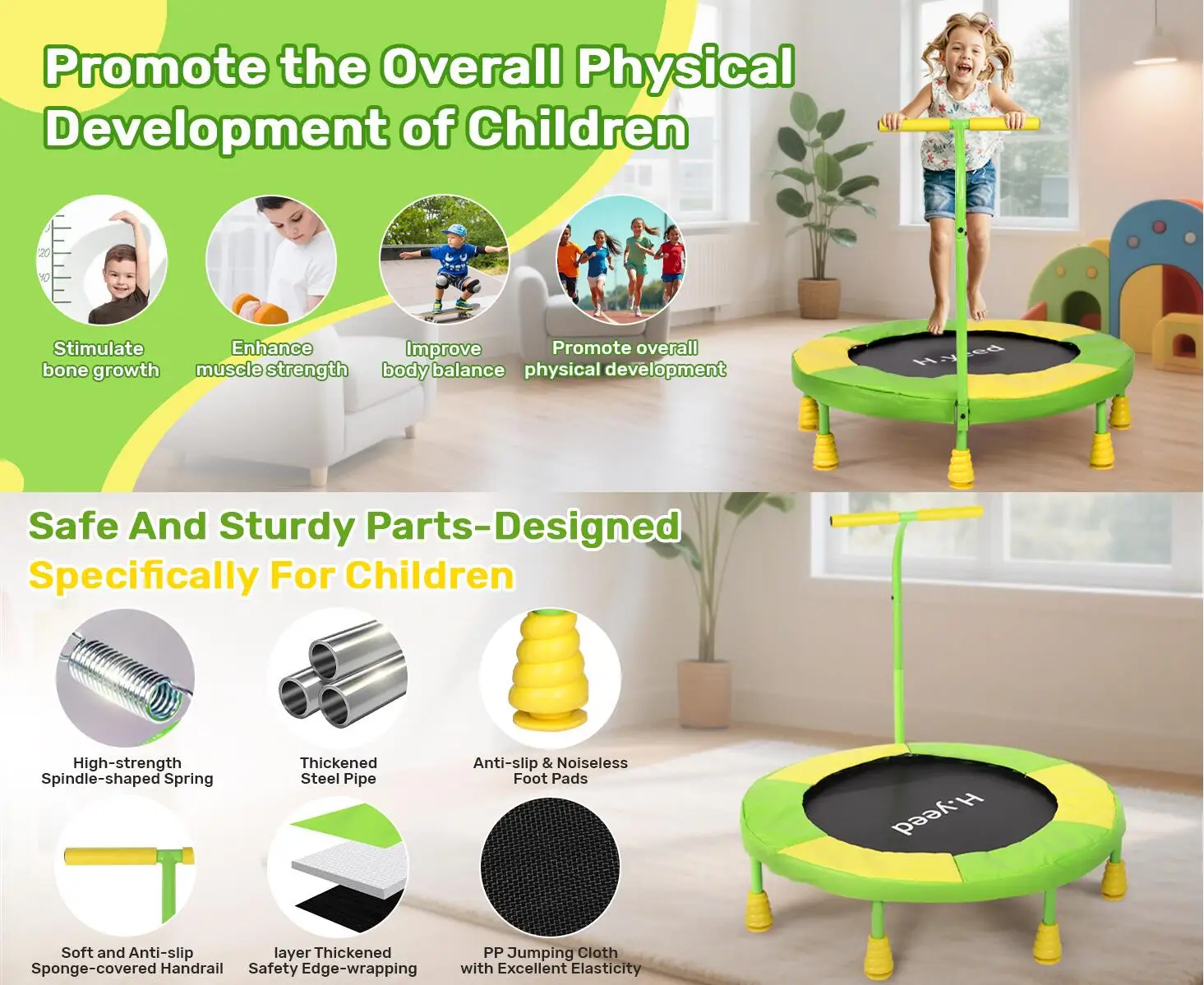 Mini Trampoline for Kids, 36'' Rebounder with Foam Handle, Safety Padded and Durable Steel Frame, Indoor Exercise Trampoline for Toddlers