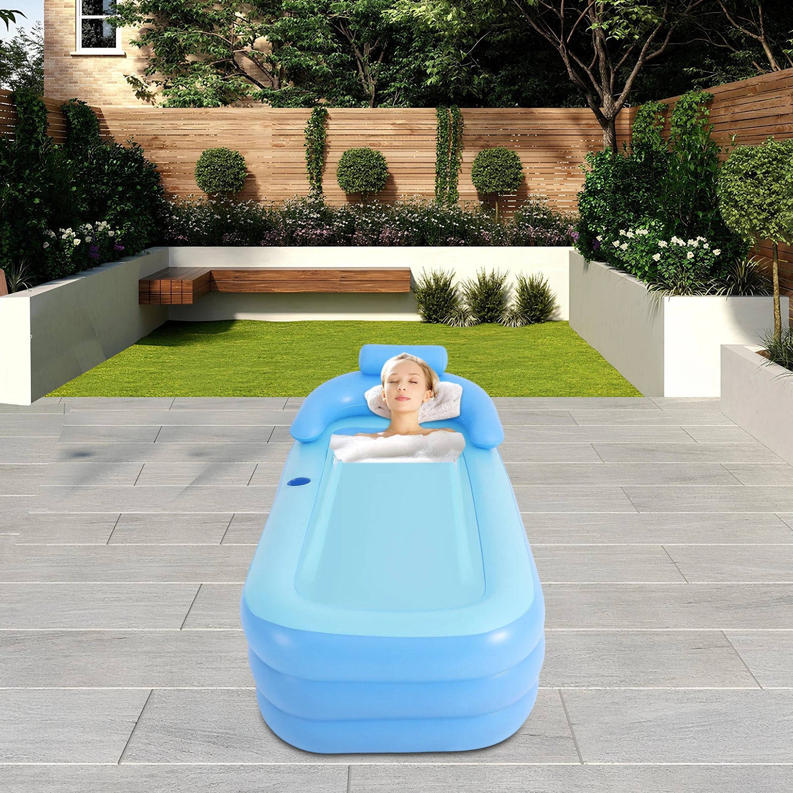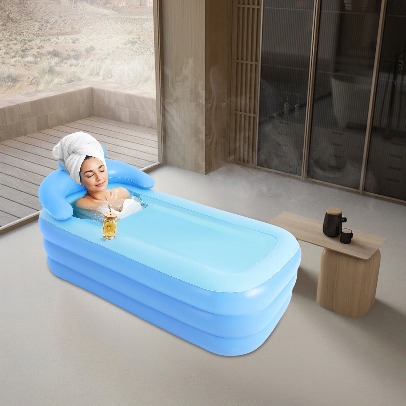 Portable Inflatable Spa Bathtub for Adults and Children, Foldable PVC Pool with Ergonomic Backrest, Insulating Zipper Cover, and Bubble Bottom (63x33x25 in)