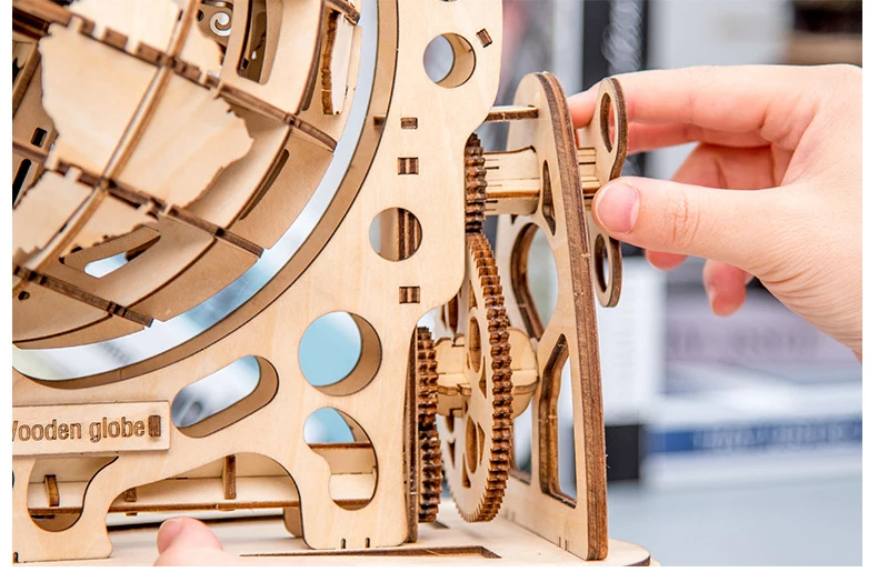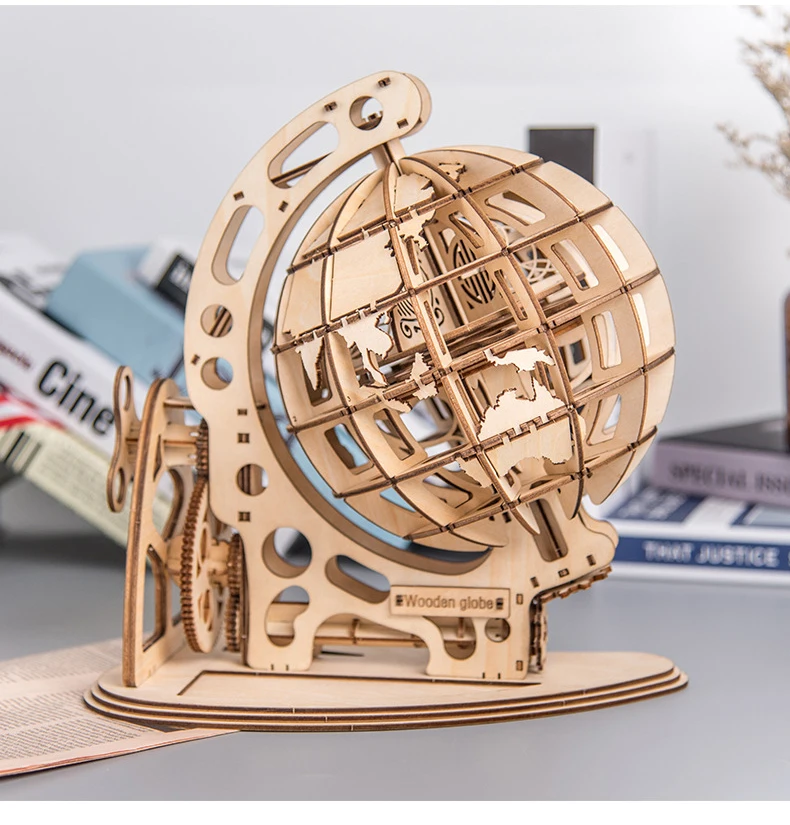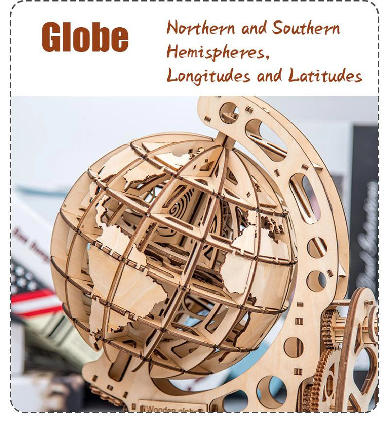 El Globo es un enorme modelo de globo terráqueo de madera de estilo clásico de la serie Curious Discovery. Su estructura bellamente diseñada es lo suficientemente resistente y giratoria. ¡Definitivamente será un gran desafío para tus manos y mente! ¡Disfruta de una maravillosa experiencia de autoensamblaje con este rompecabezas de madera 3D!