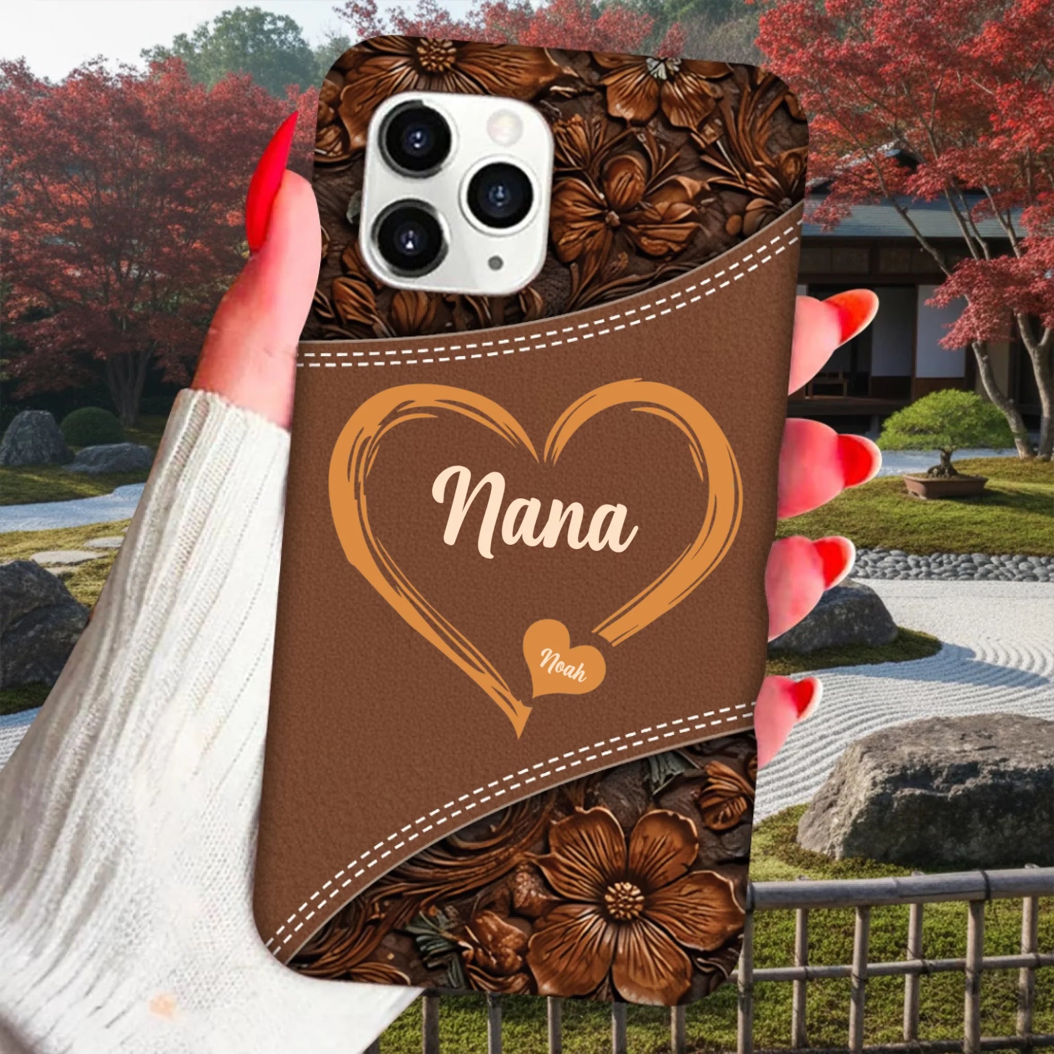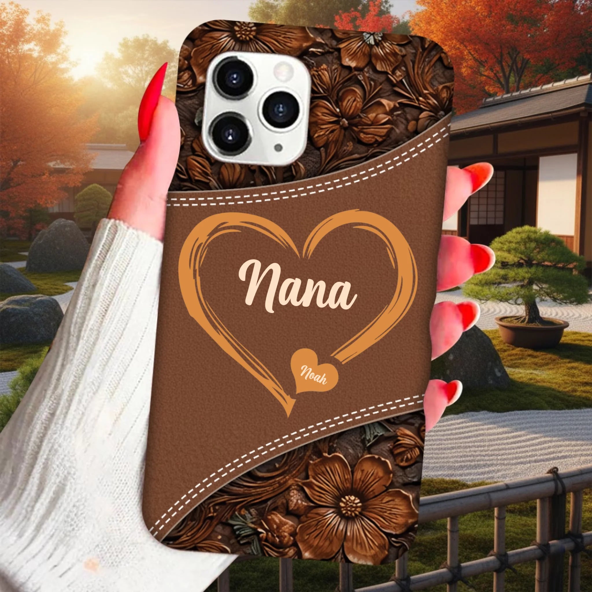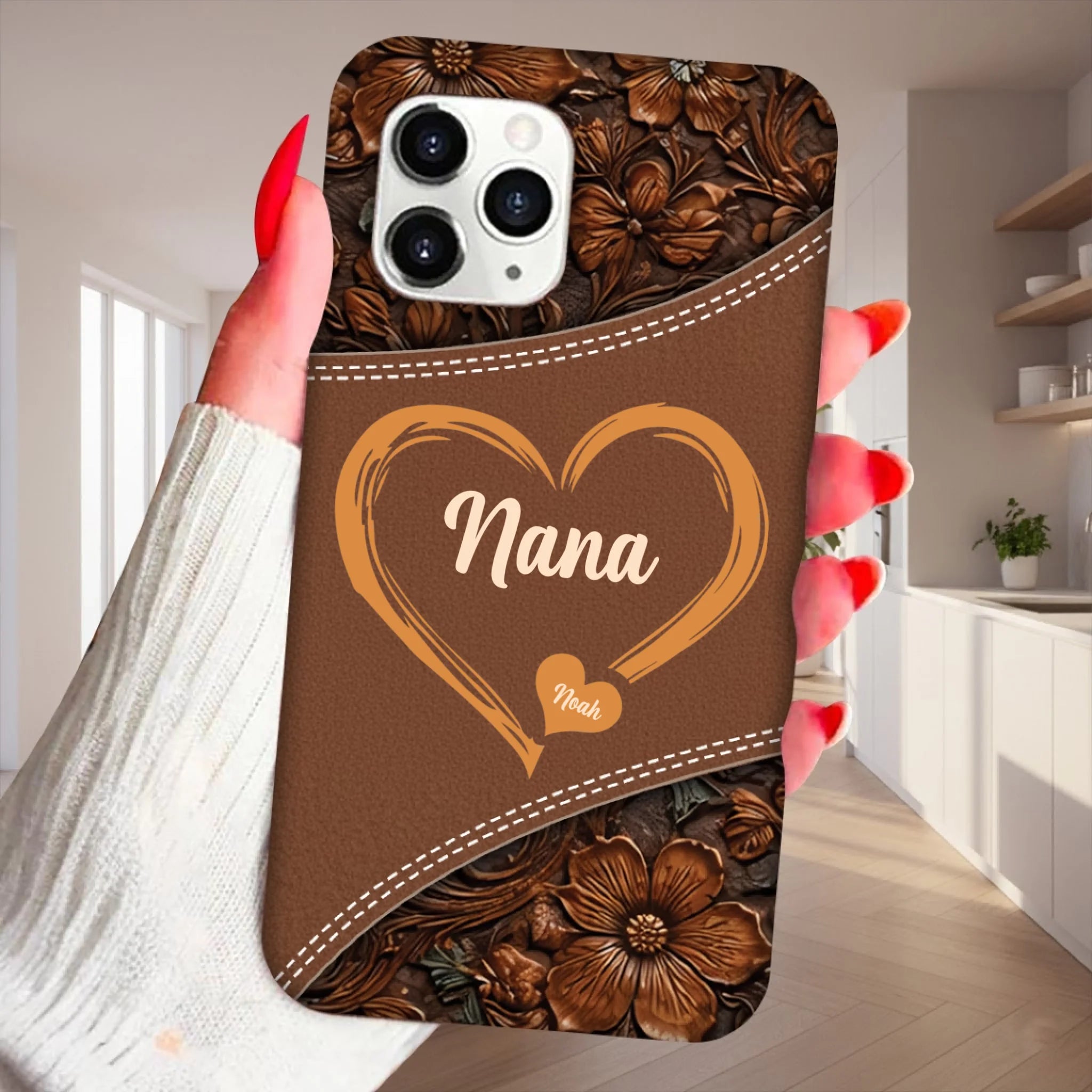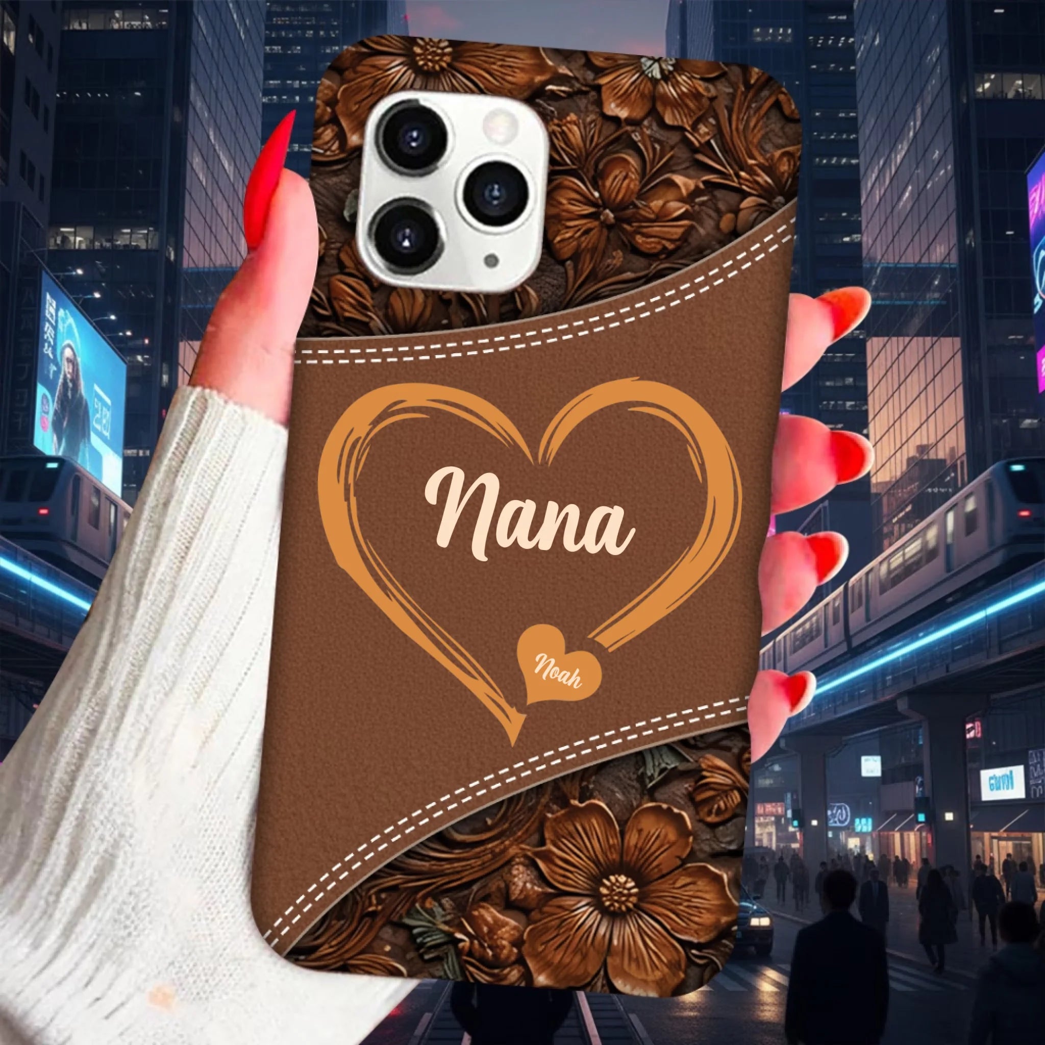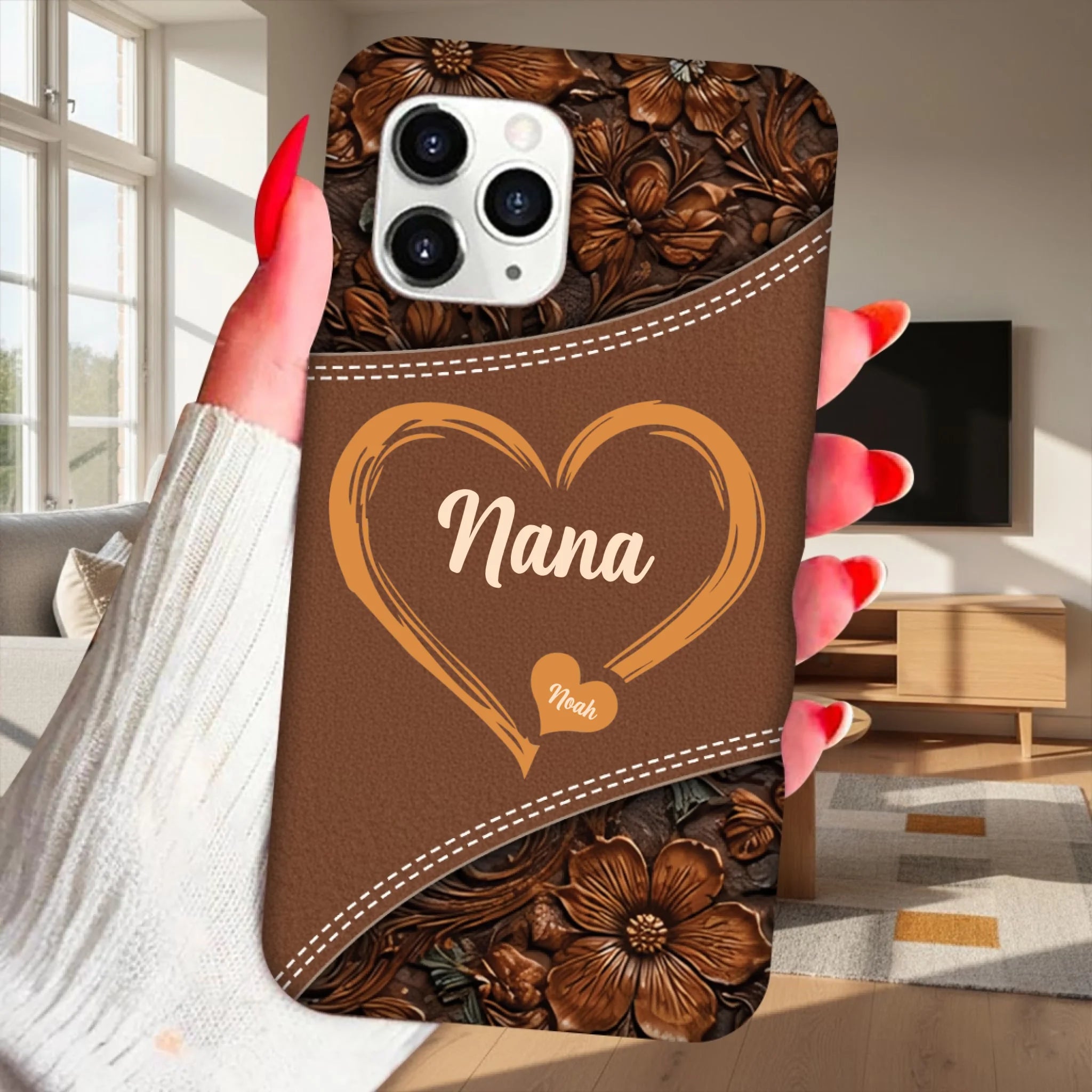 Personalized Grandma Hearts Phone Case – Custom Grandma Name & Grandkids | Faux Leather Style Clear Silicone Case | Meaningful Family Keepsake Gift