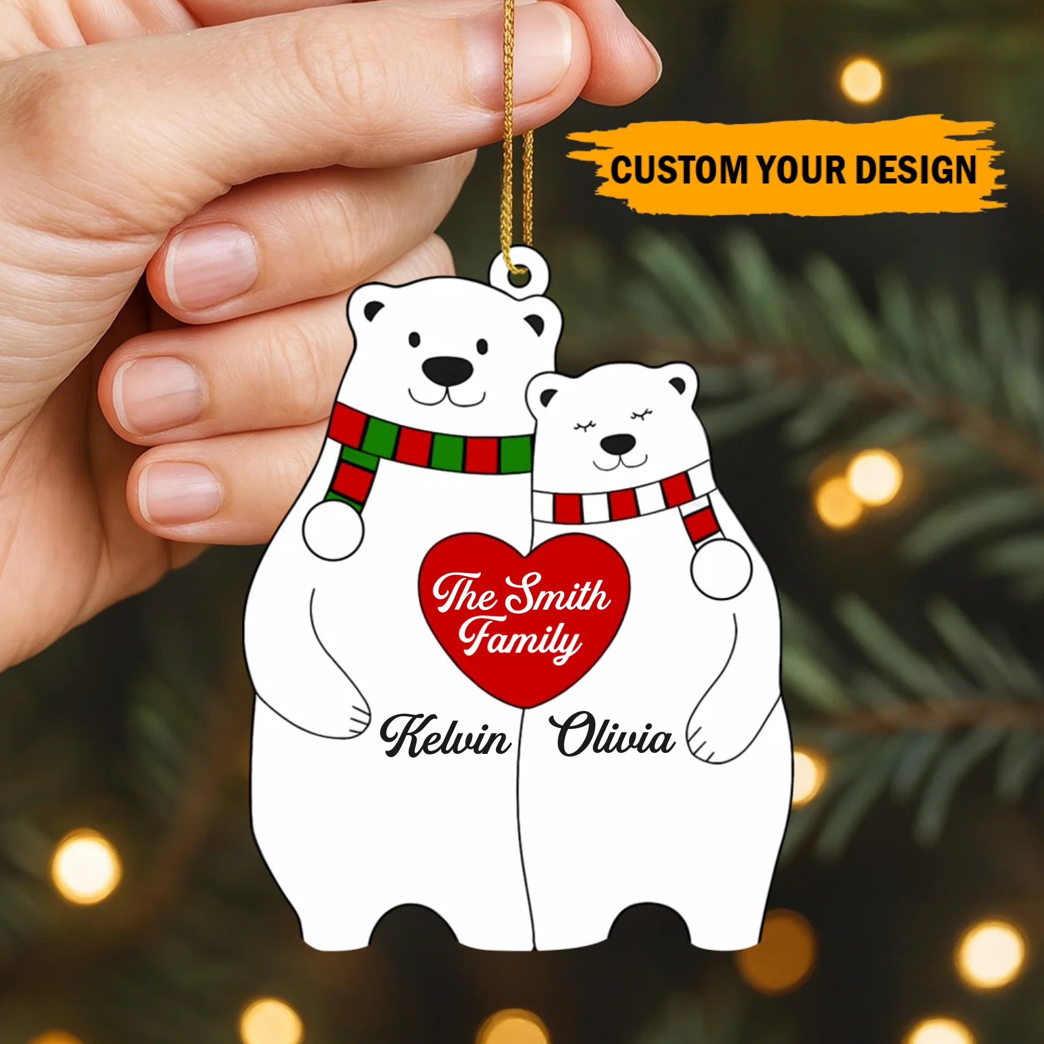 Personalized Bear Family Heart Christmas Acrylic Ornament
