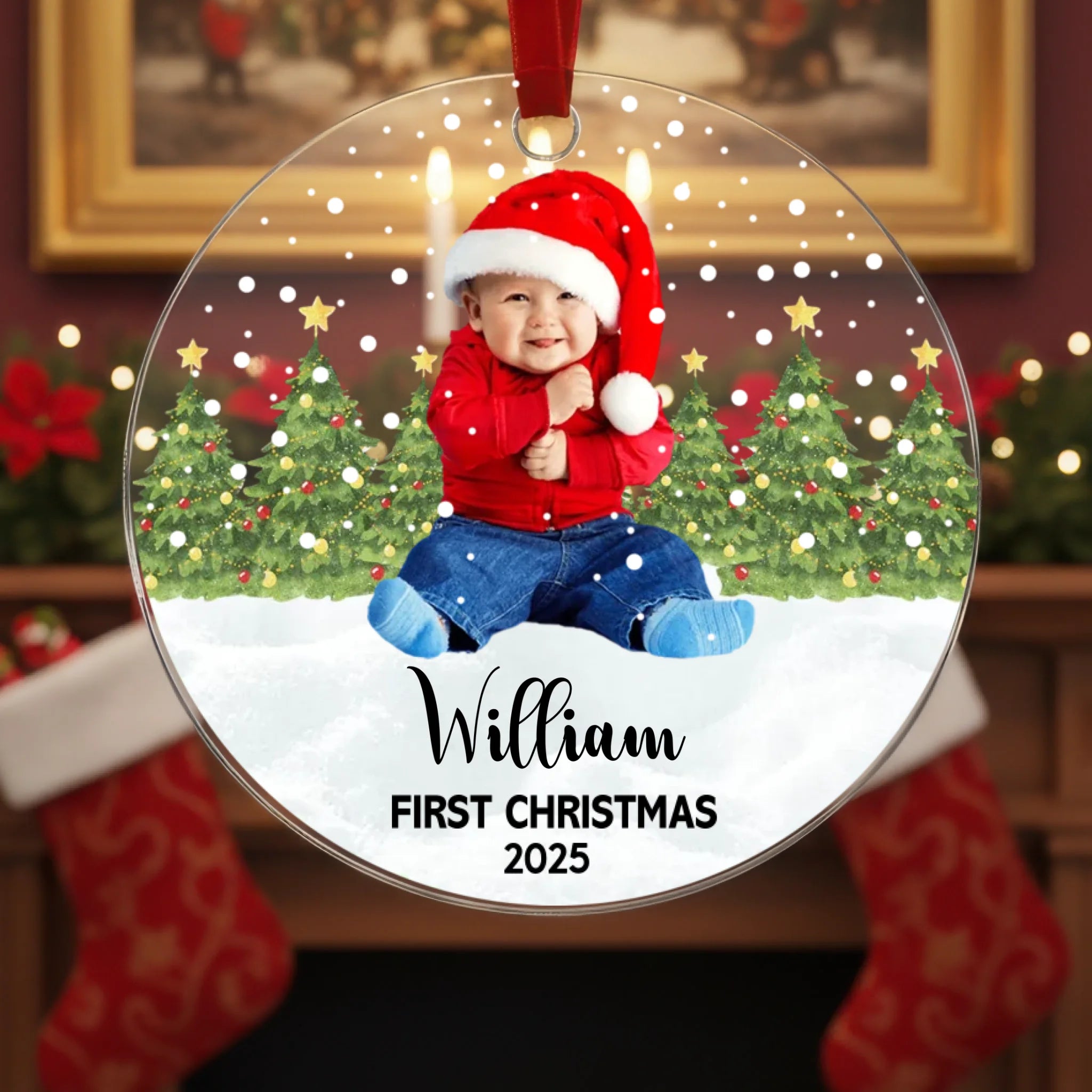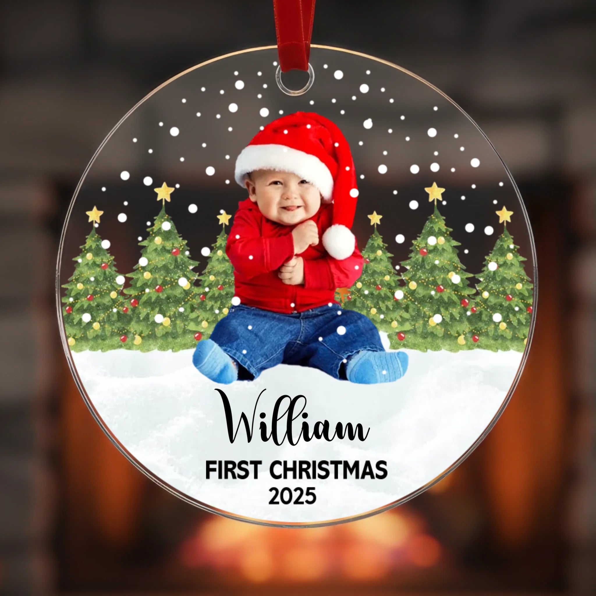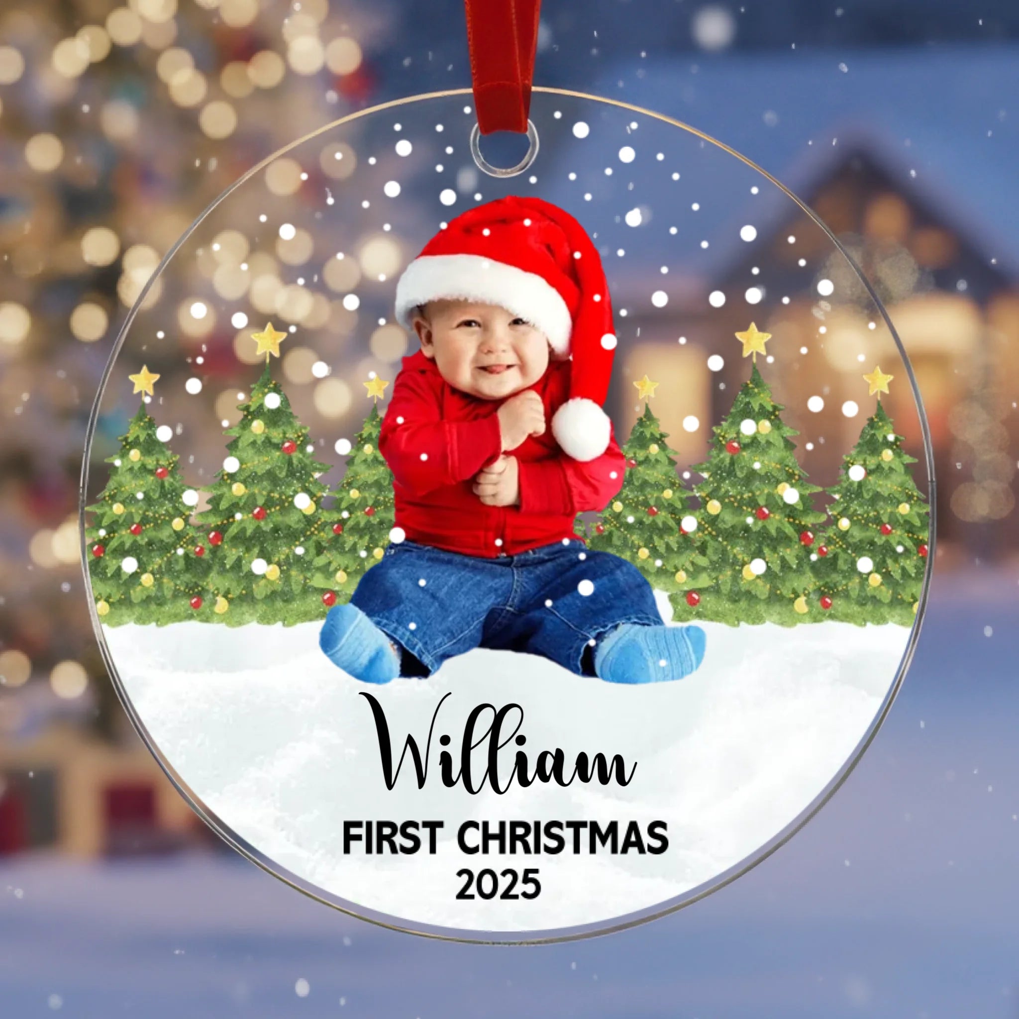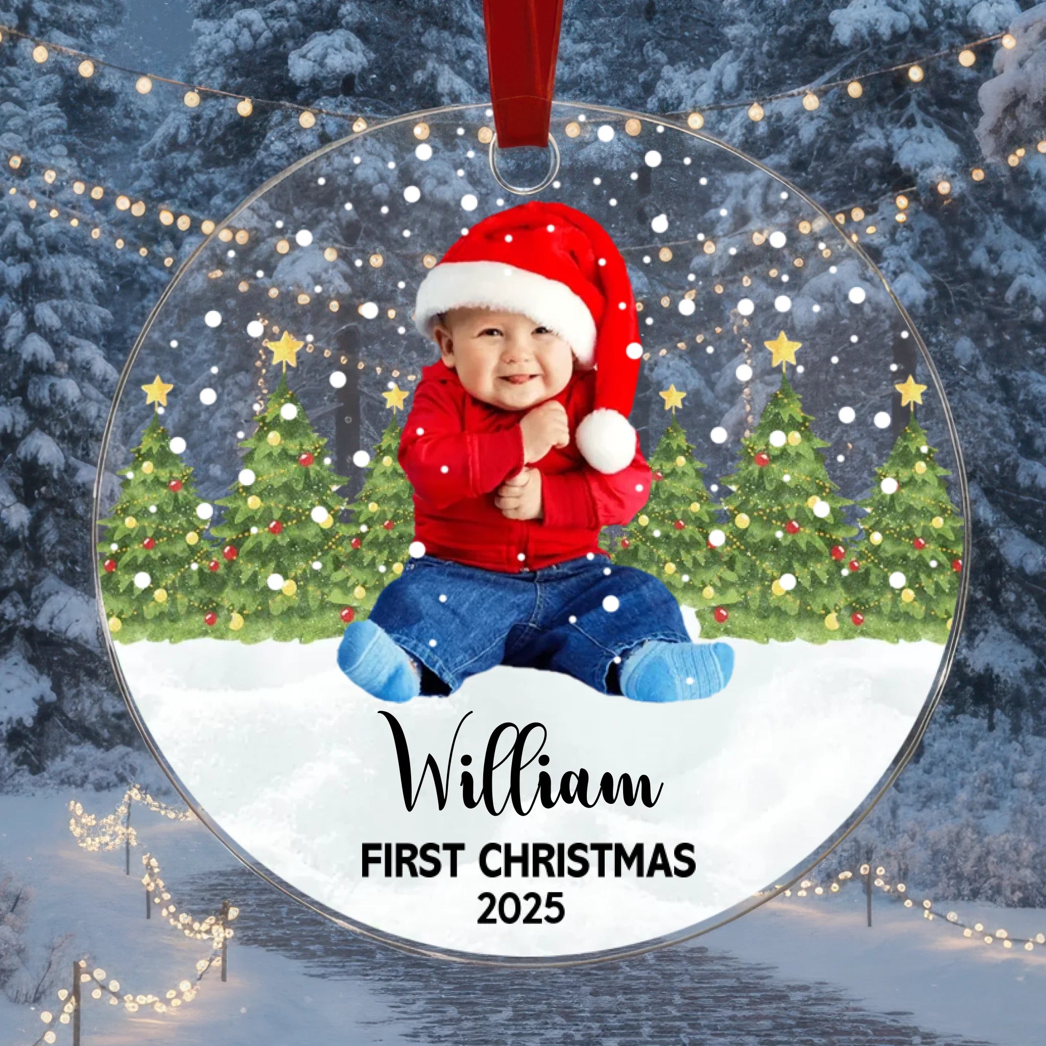 Adorno circular acrílico personalizado “La Primera Navidad del Bebé” – Foto, nombre y color de texto a elegir | Recuerdo para recién nacidos ideal para el árbol y la decoración navideña