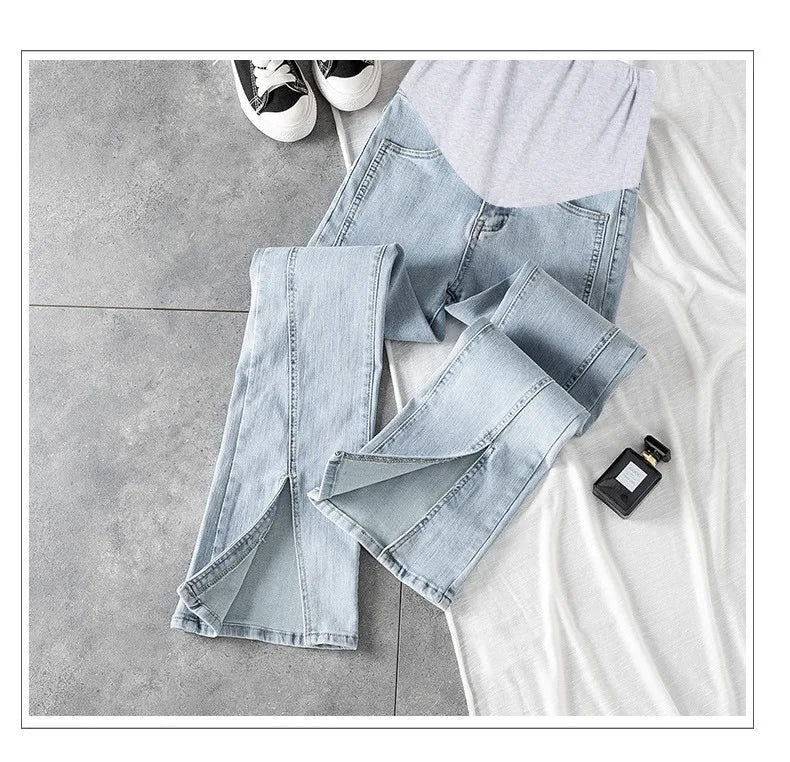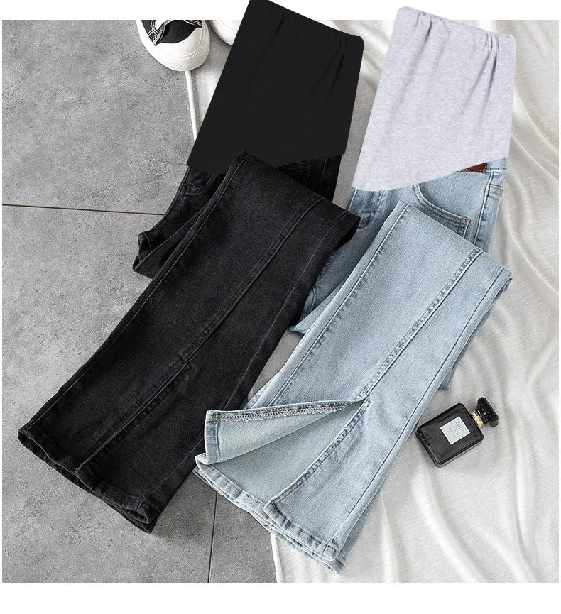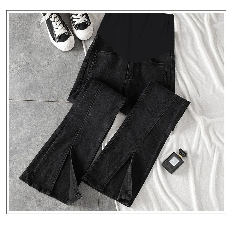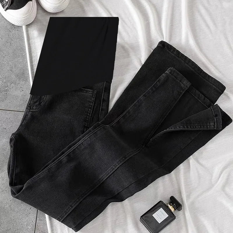 Pantalones Premamá de Mezclilla Negros/Azules de Corte Recto - Vaqueros Premamá Elásticos para Uso Diario Confortable