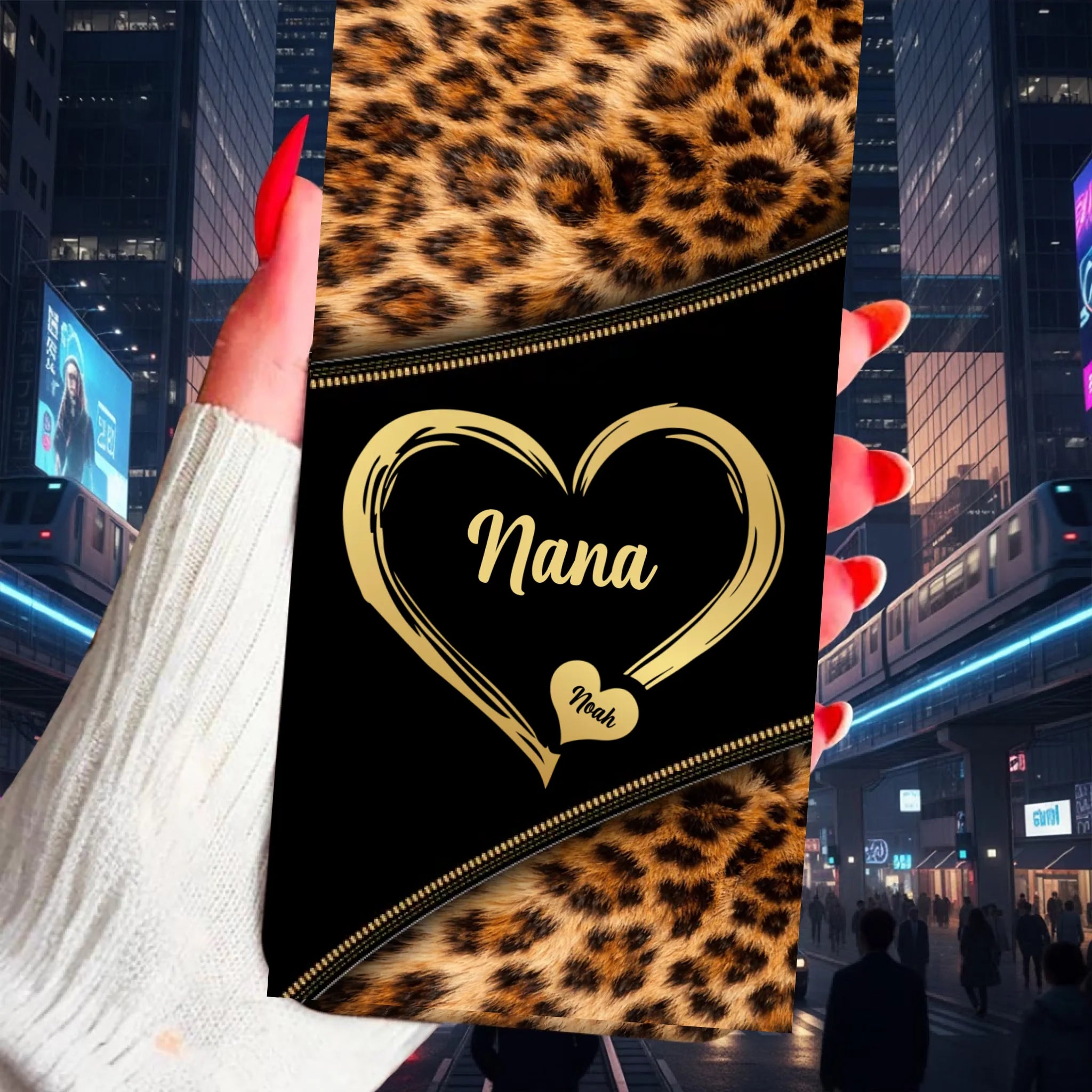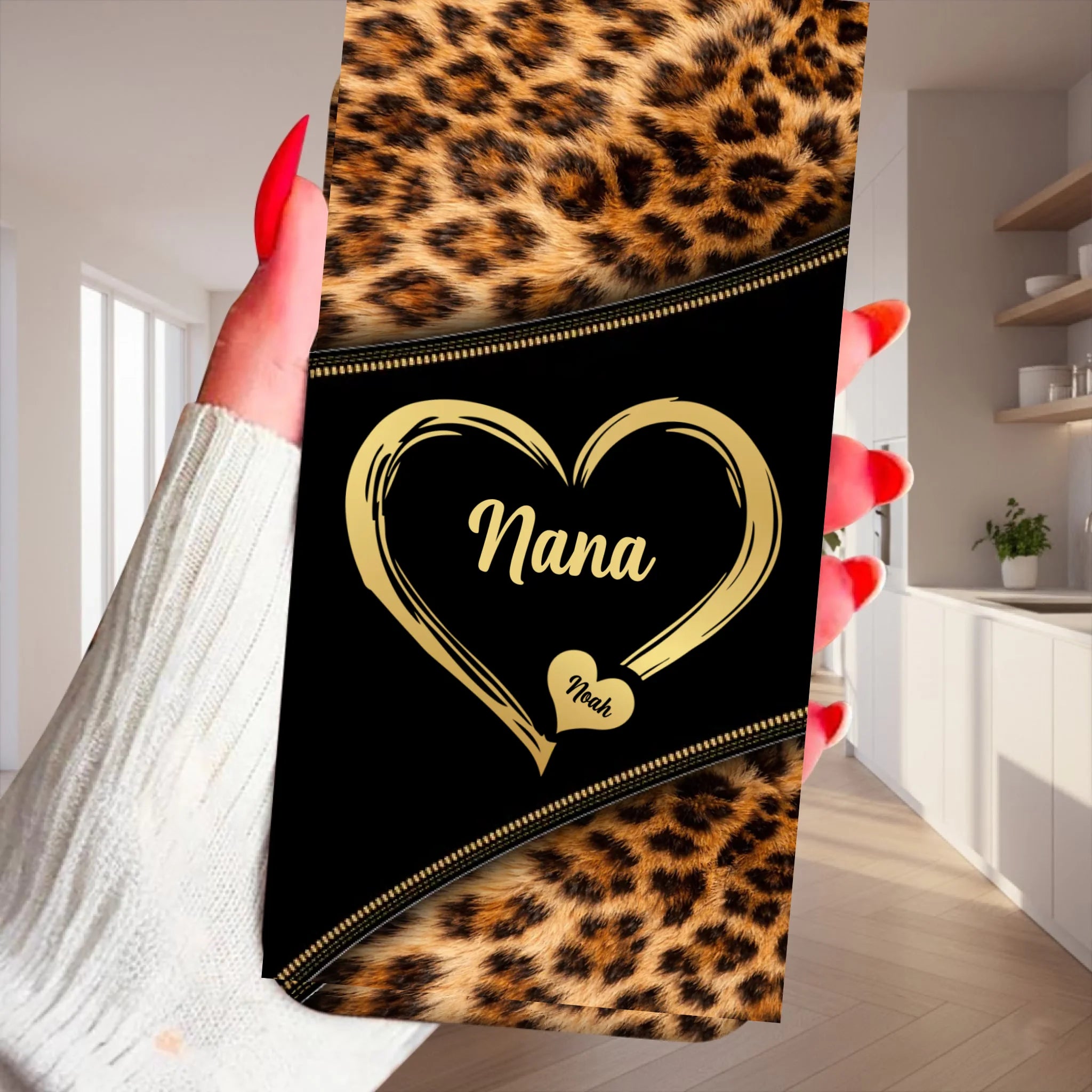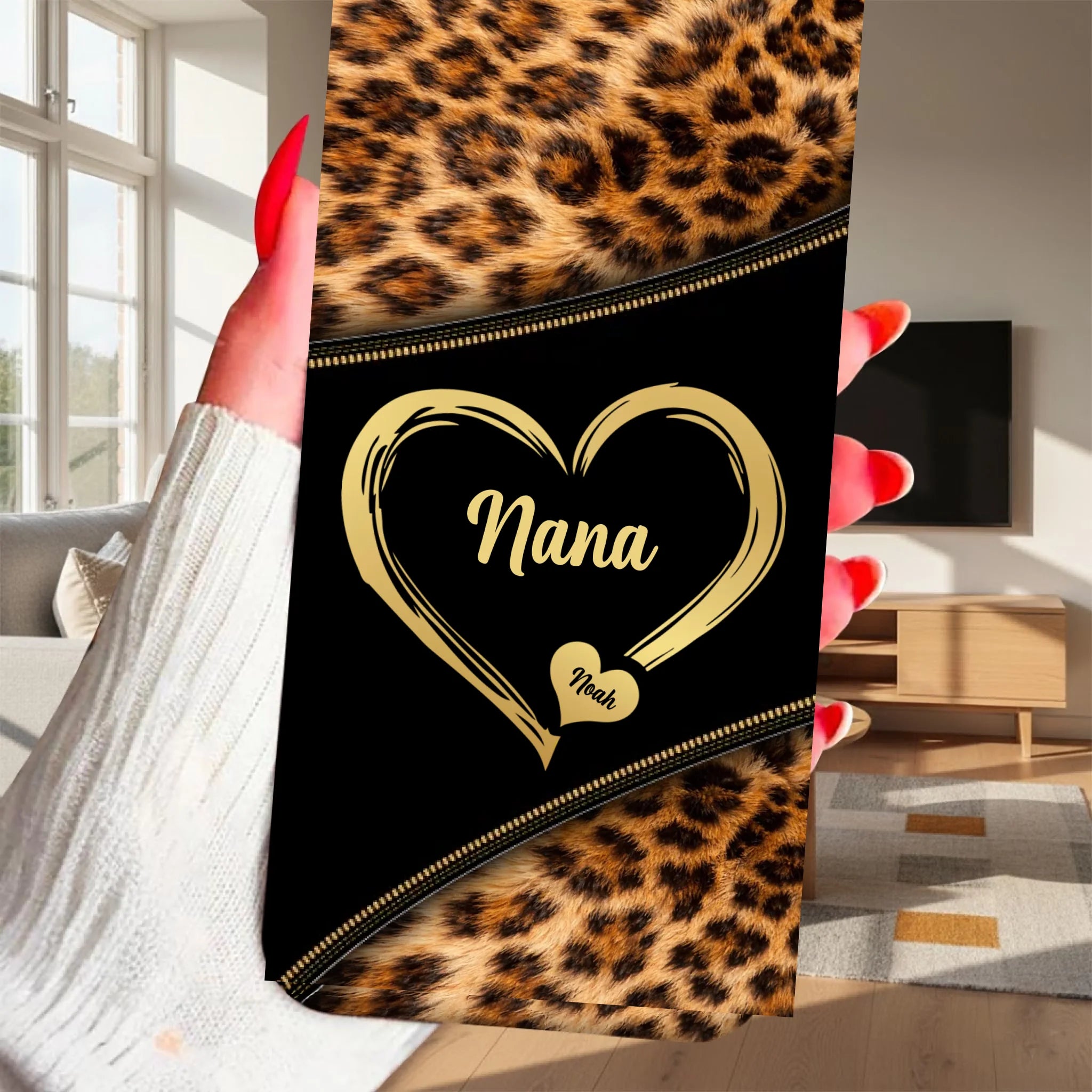 Clear Silicone Phone Case – Grandma & Grandkids Leopard Heart Design | Personalized Grandma Name & Children Names | Custom Family Keepsake Gift | One-Side Printed Clear Case | Meaningful Gift for Grandma
