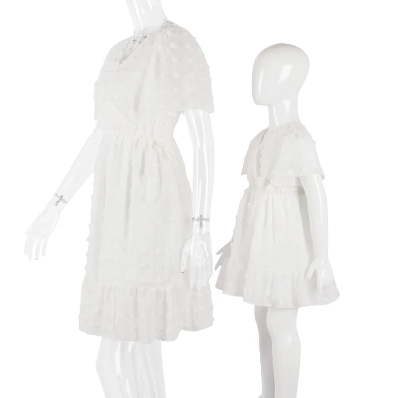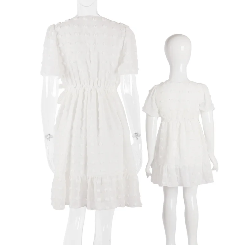 Transfórmate en un ángel para la princesa de tu madre con este bonito vestido. Diseño minimalista con escote en pico y brazos monísimos para mamá y bebé. Me encanta la barriga desde el diseño hasta el material. Tanto las pestañas gruesas como las finas son adecuadas.