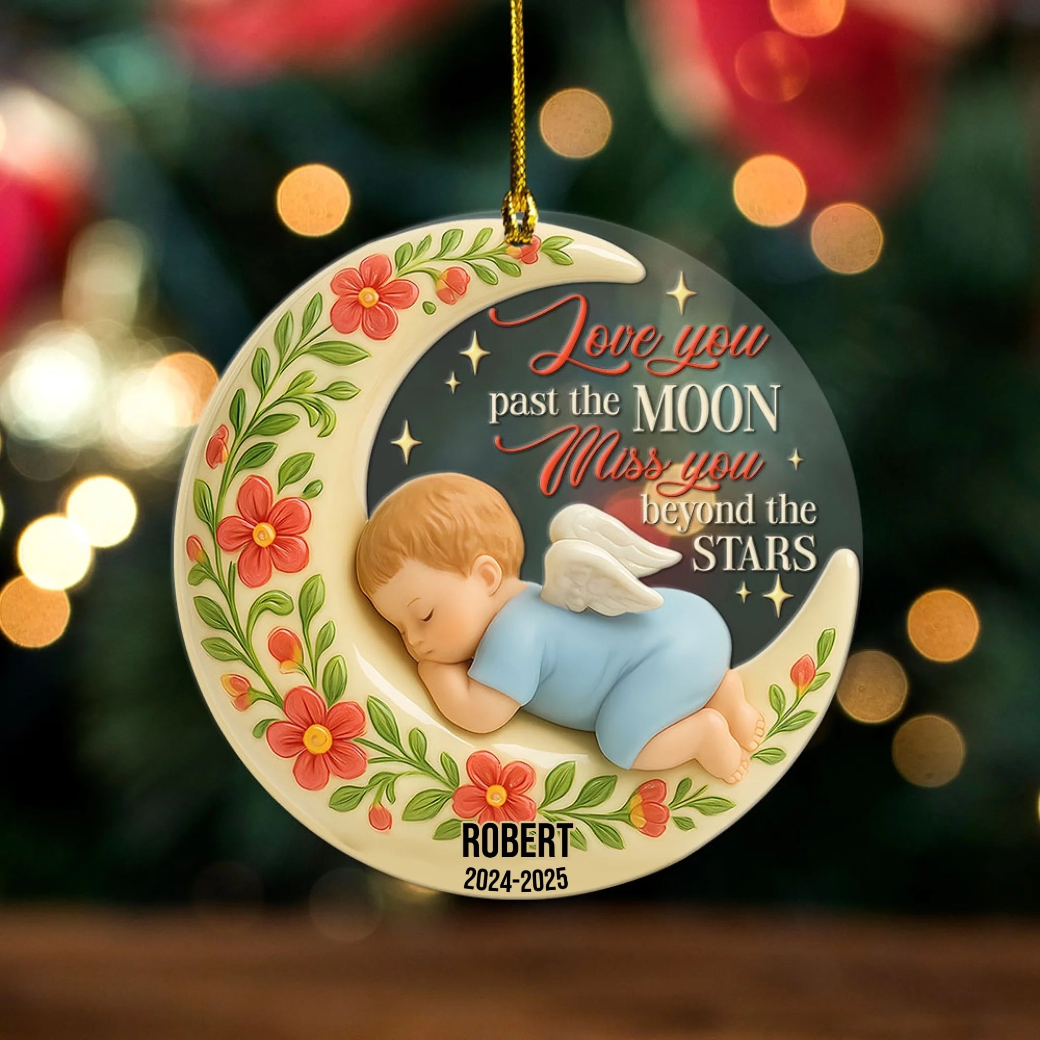 Adorno Circular de Acrílico Personalizado en Memoria de Bebé – Te Quise Más Allá de la Luna y Te Extraño Más Allá de las Estrellas – Regalo Personalizado como Recuerdo