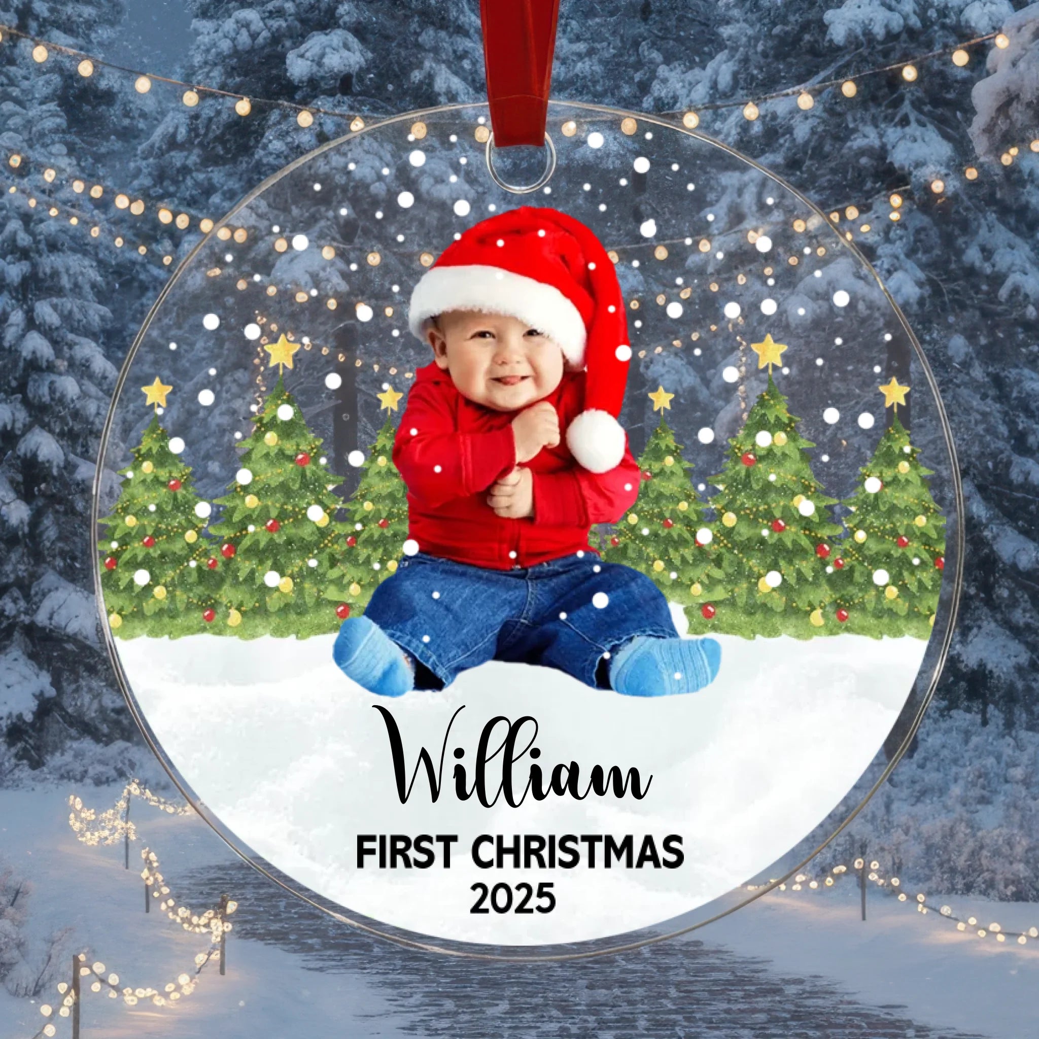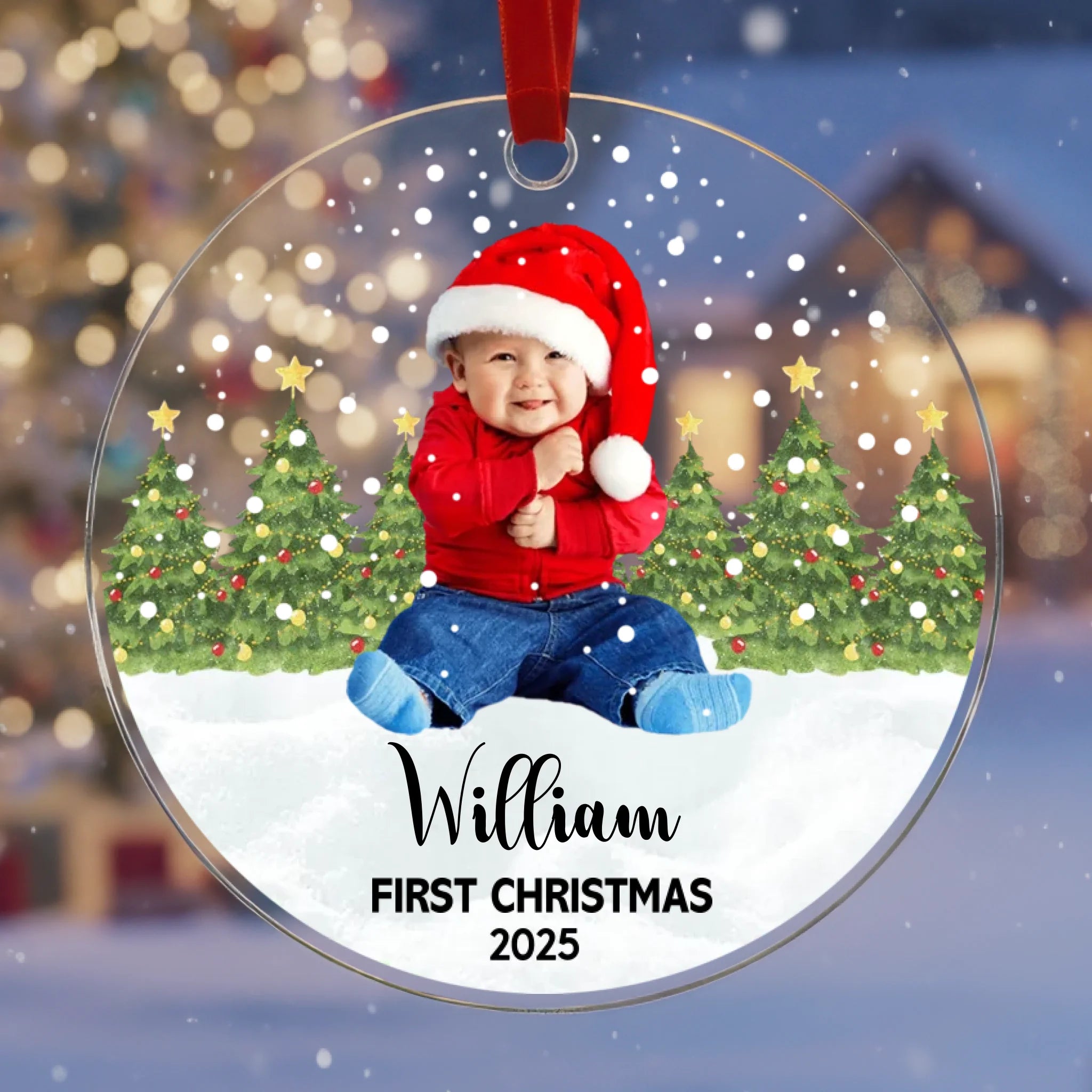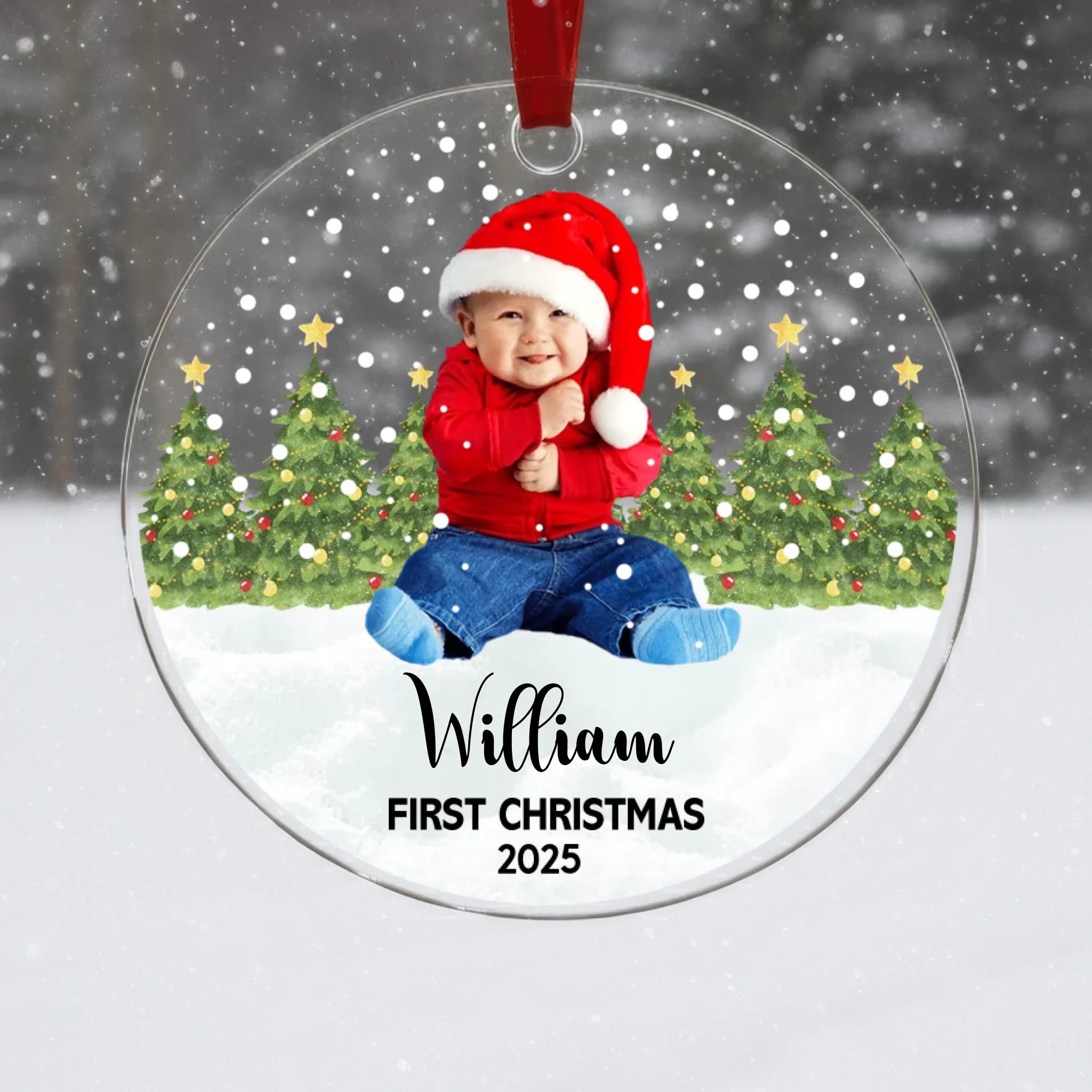 Adorno de cristal personalizado para el primer Navidad del bebé – Recuerdo con foto y nombre personalizado 2025