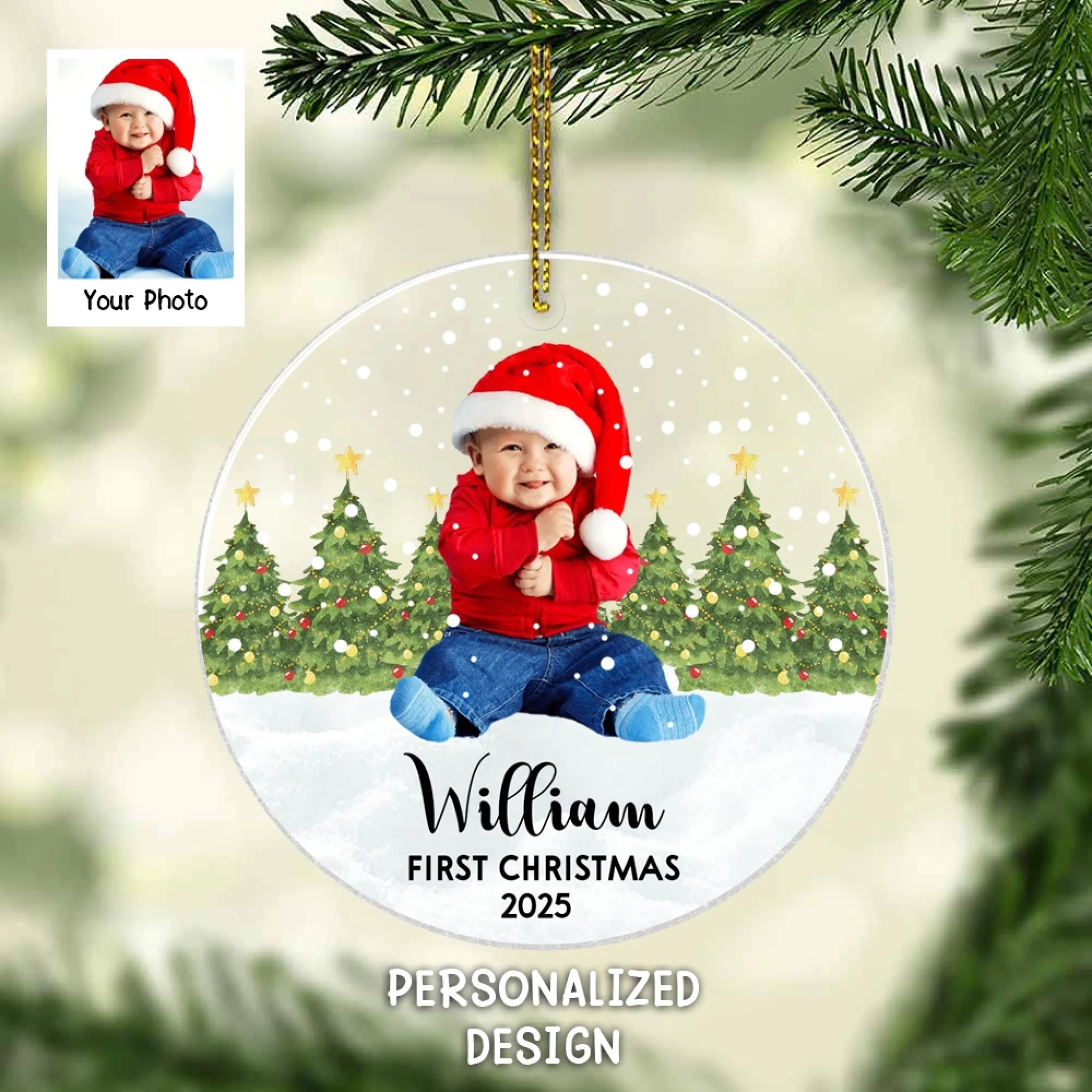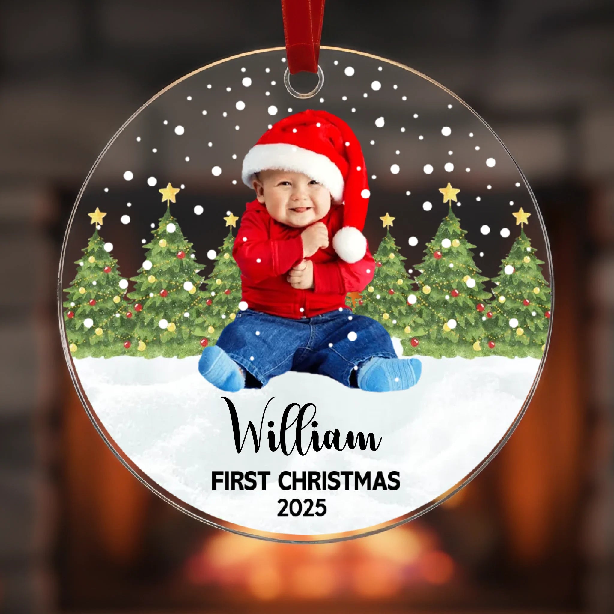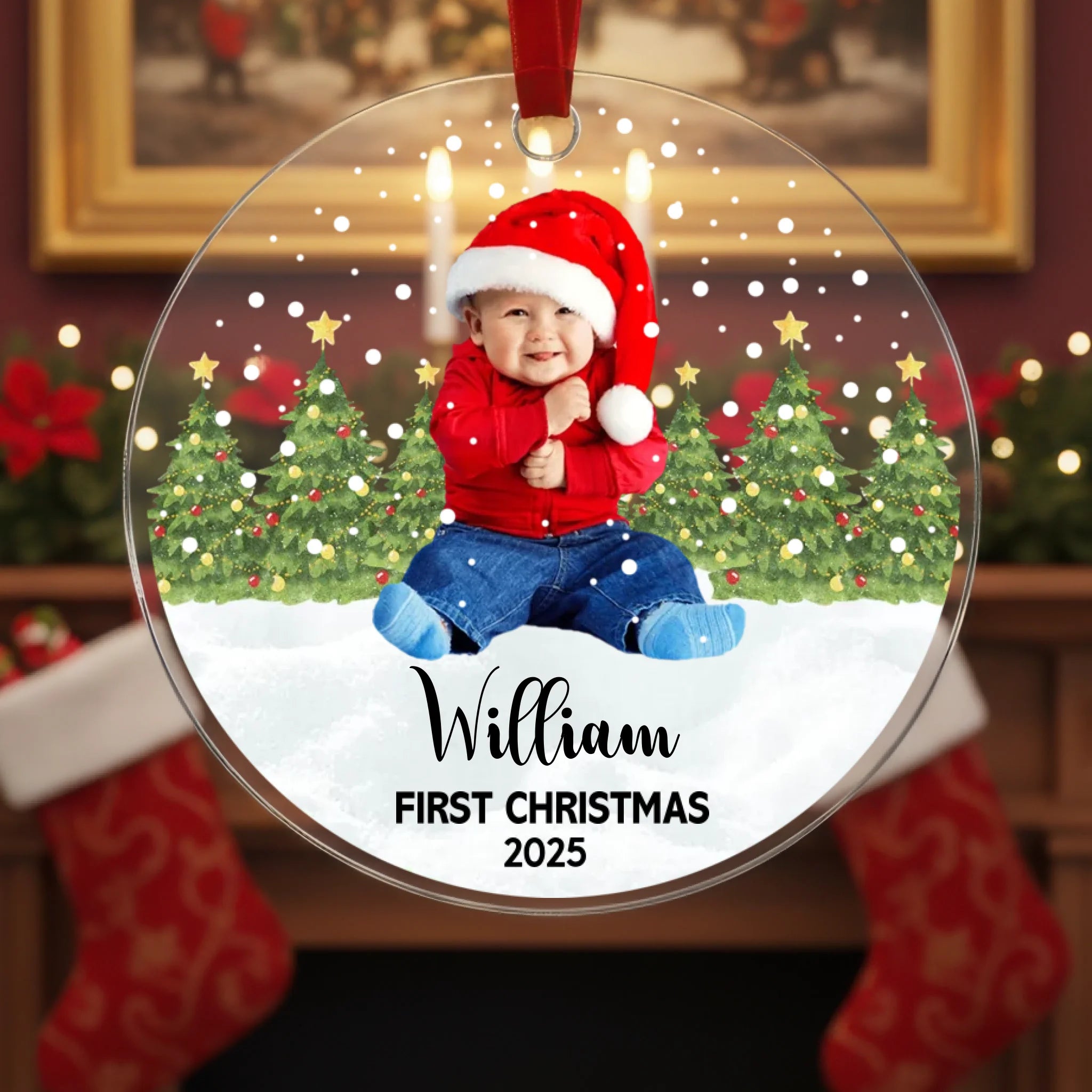 Adorno de cristal personalizado para el primer Navidad del bebé – Recuerdo con foto y nombre personalizado 2025