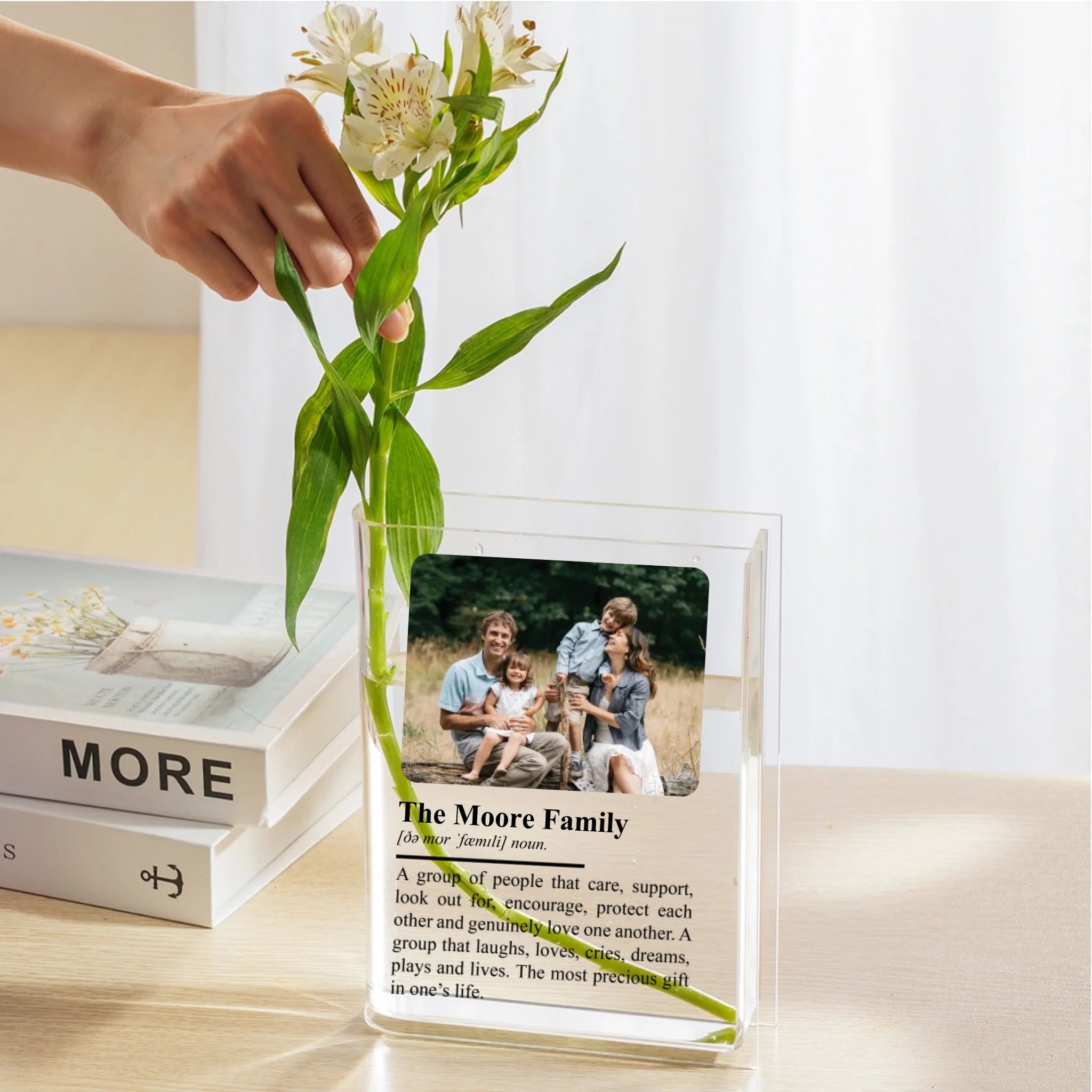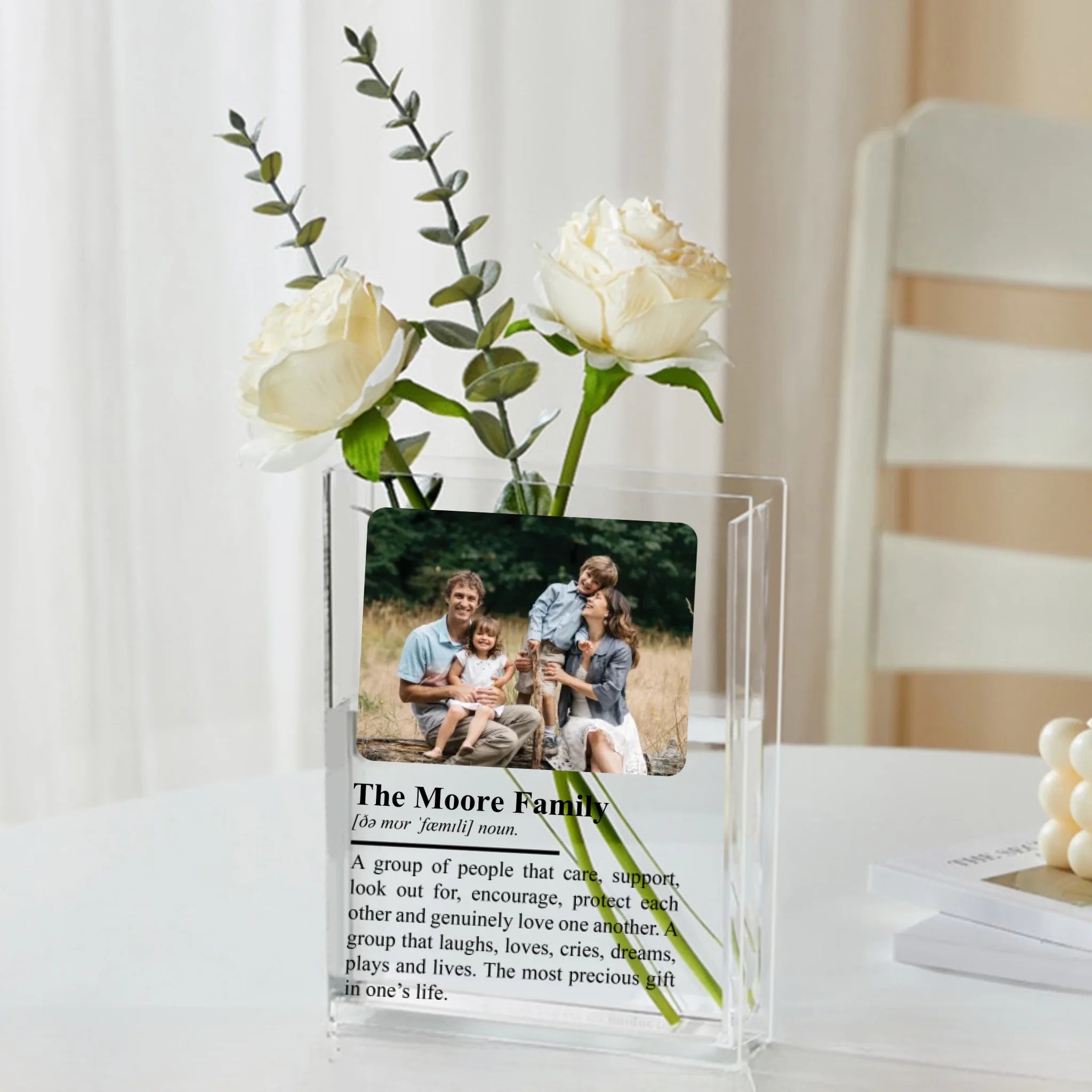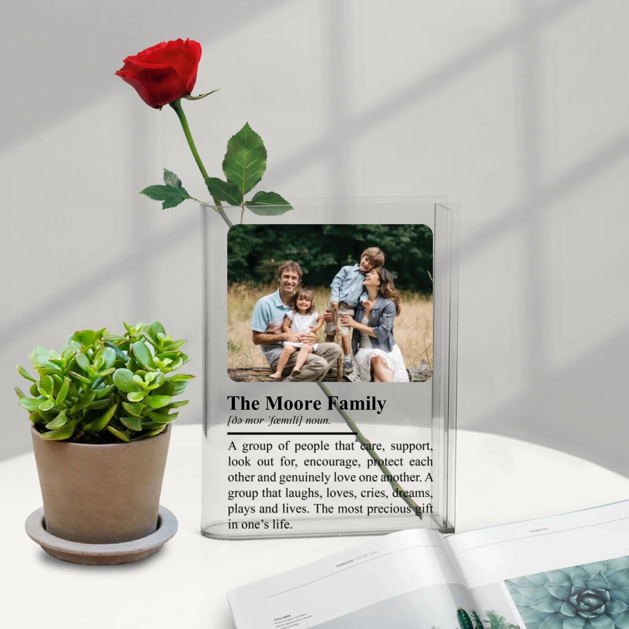 Personalized Family Definition Acrylic Book Vase - Custom Photo & Family Name Keepsake - Unique Housewarming or Christmas Gift